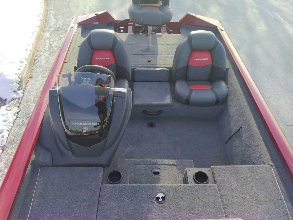 • NEW 1-piece rotomolded TRACKER® console w/built-in controls, storage pocket & windscreen