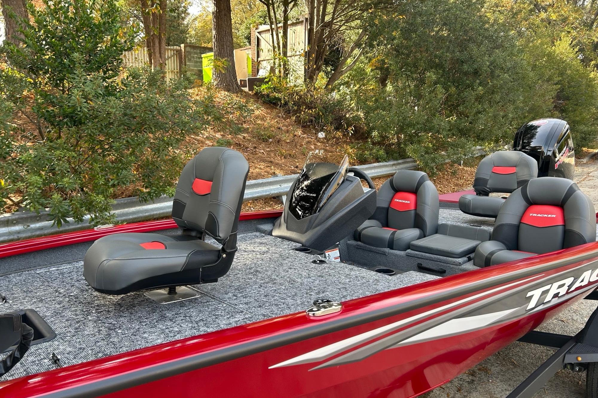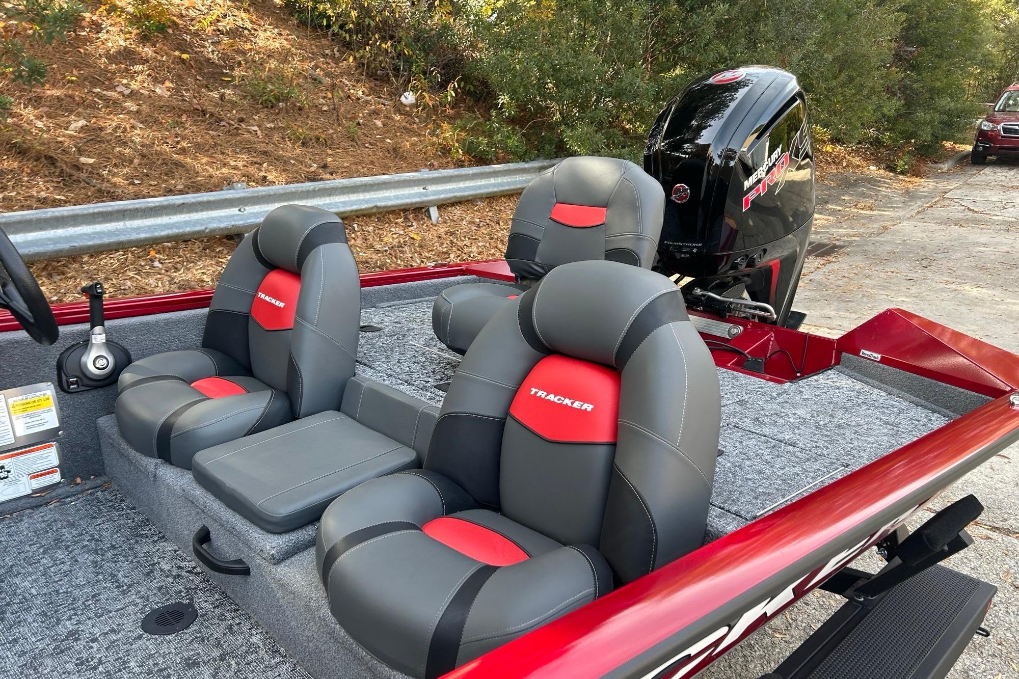 • NEW 1-piece rotomolded TRACKER® console w/built-in controls, storage pocket & windscreen
