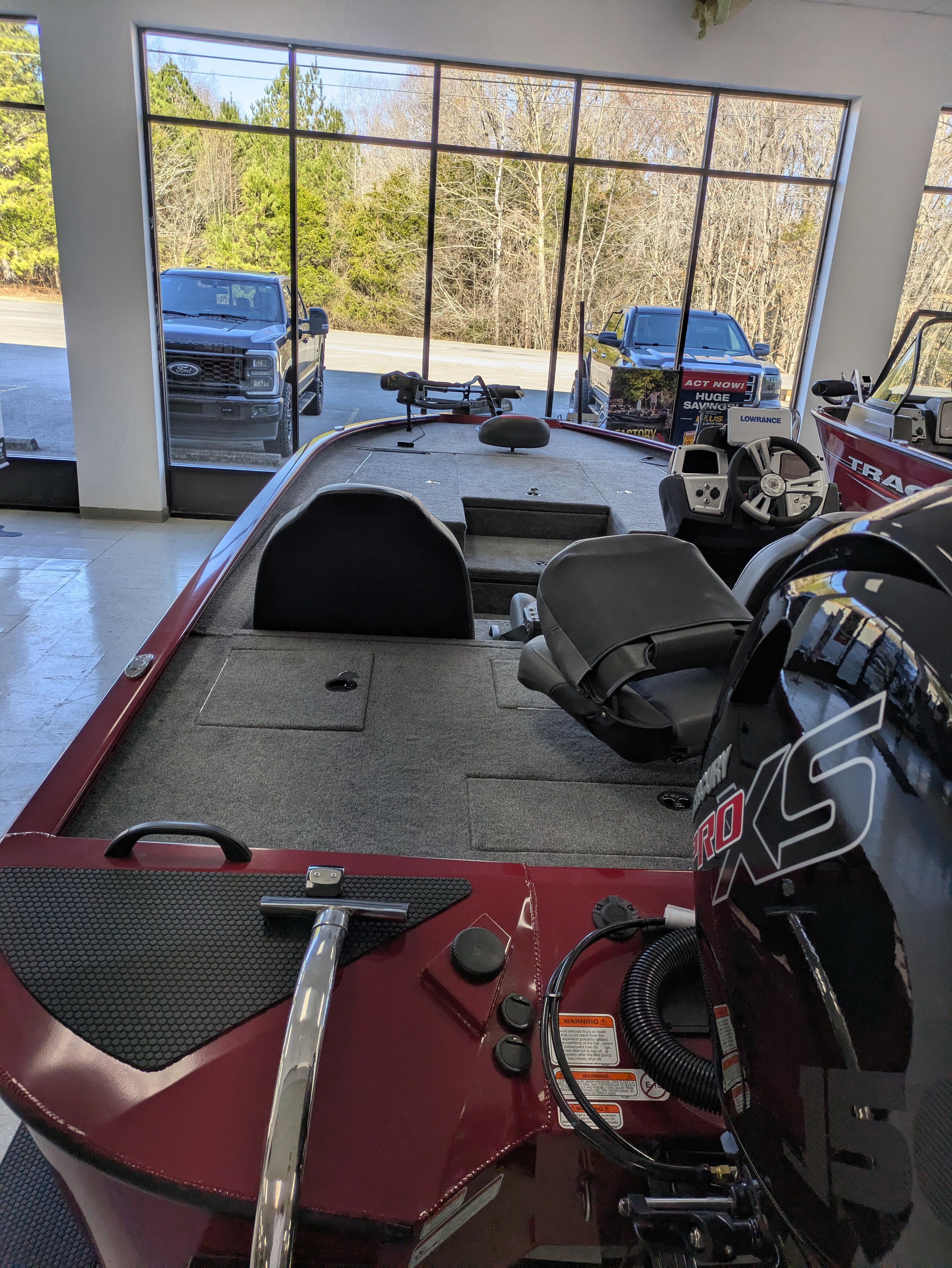 The Savage 215 carries up to 250 horses and boasts a finely-tuned hull that takes advantage of every last one of ‘em. The patent-pending POWER CURVE™ hull delivers an instant hole shot, and as RPMs ramp up, the tough-as-nails .125”-thick aluminum hull gives precise feedback to the wheel. At the 70-plus MPH top end, this new TRACKER® leads the pack. On the trolling motor, you’ll find a gargantuan front deck covered in optional DURATRACK marine flooring, replete with expansive storage boxes and a pro-designed layout that keeps gear handy, safe, and organized. The cockpit is decked-out with big-screen electronics, a TRACKER digital touchscreen display (instead of old-school gauges) and handmade seating designed to tackle the elements in comfort.