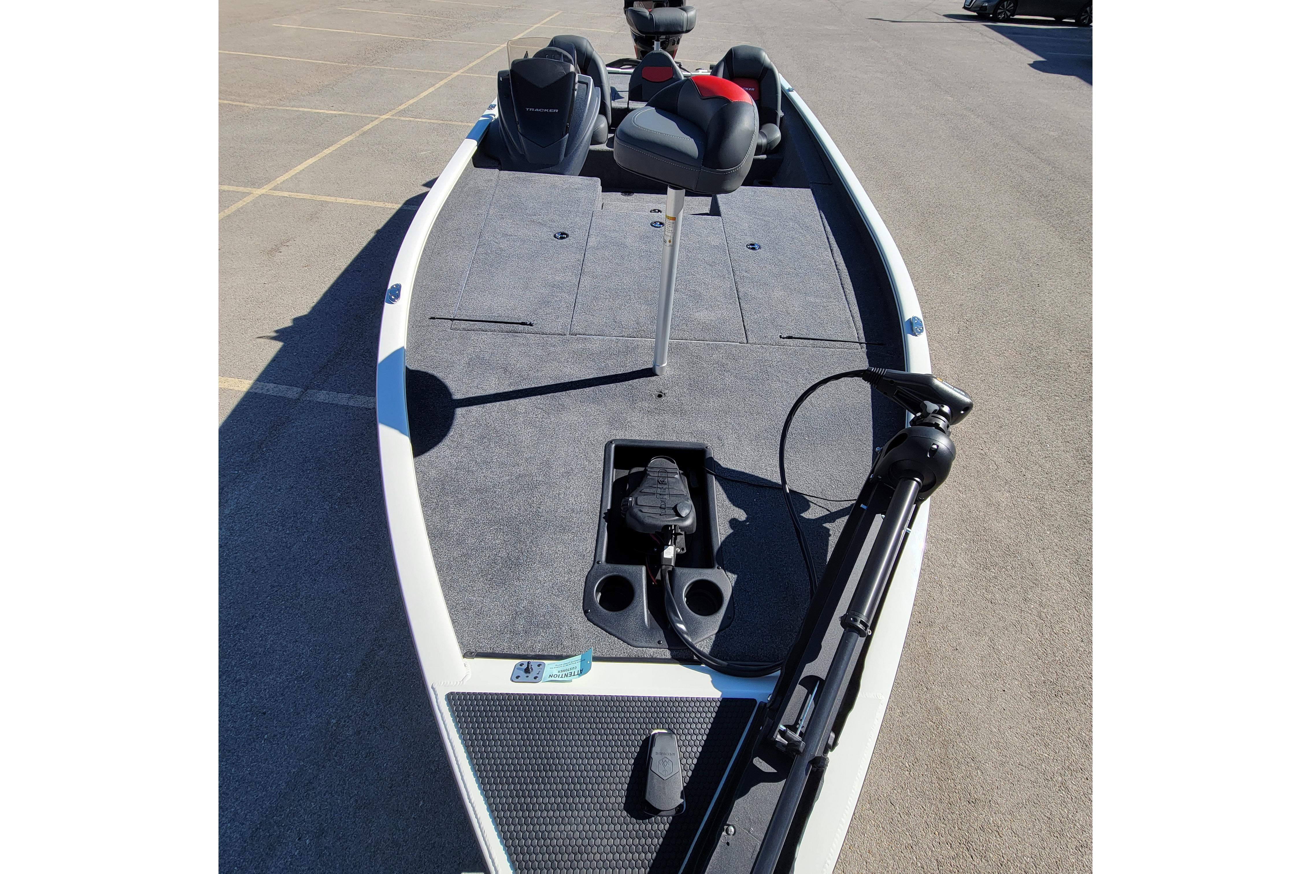 • 1-piece rotomolded TRACKER® console w/built-in controls, storage pocket & windscreen