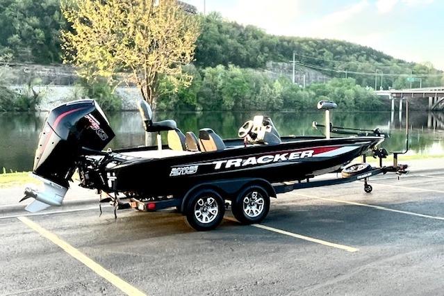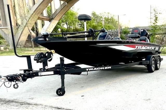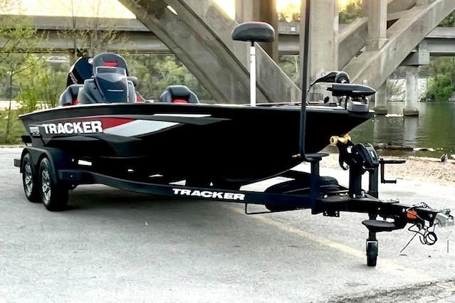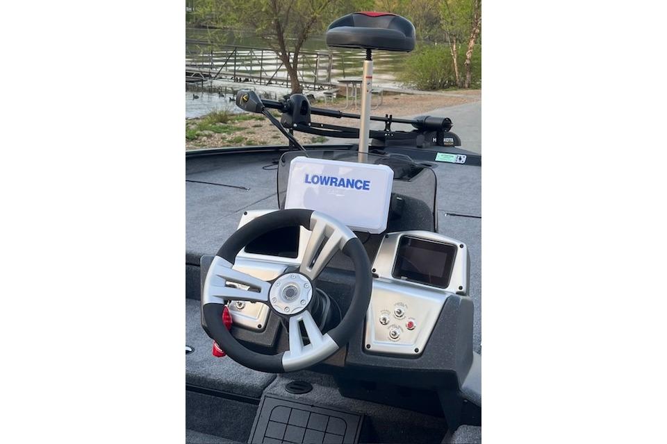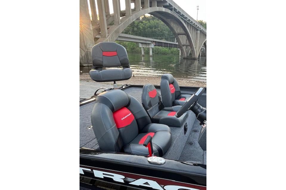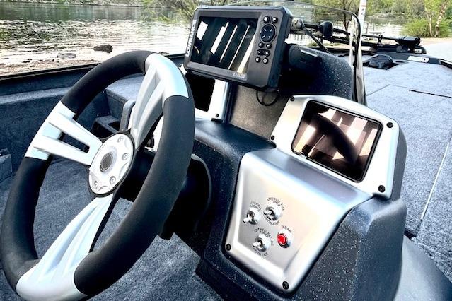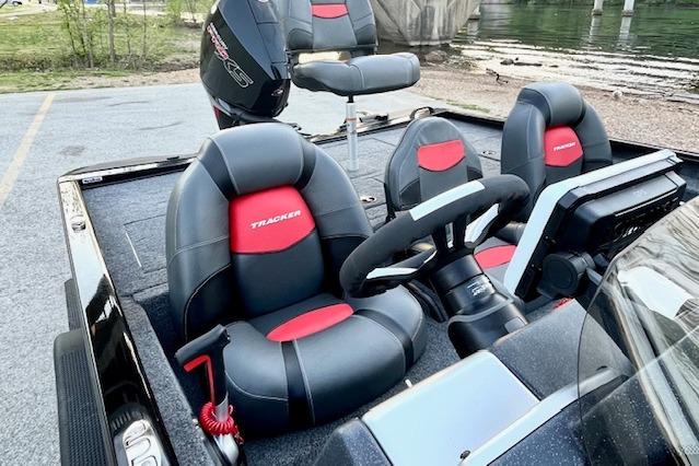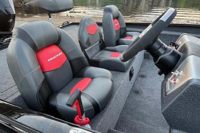 • 1-piece rotomolded TRACKER® console w/built-in controls, storage pocket & windscreen