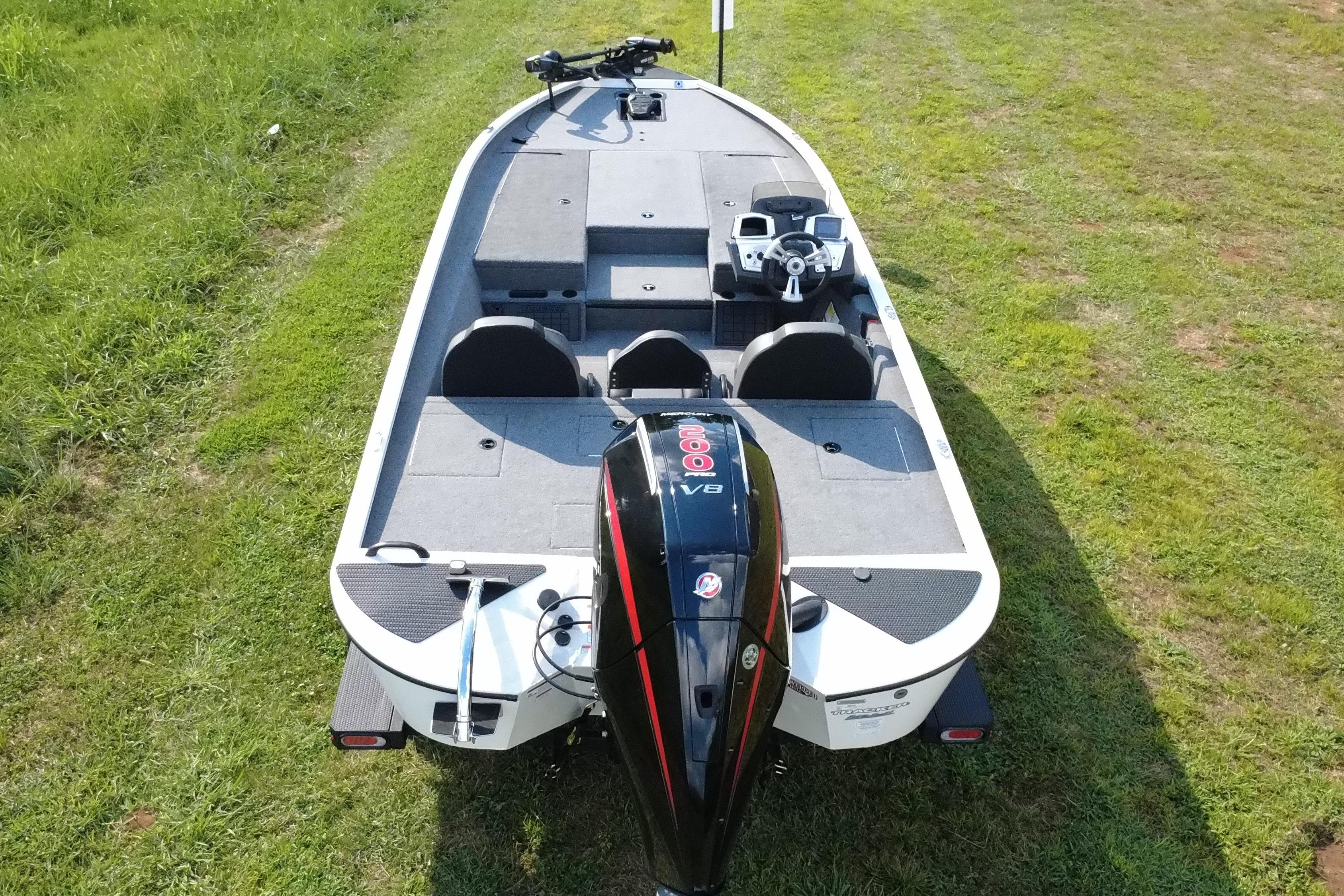 • 1-piece rotomolded TRACKER® console w/built-in controls, storage pocket & windscreen