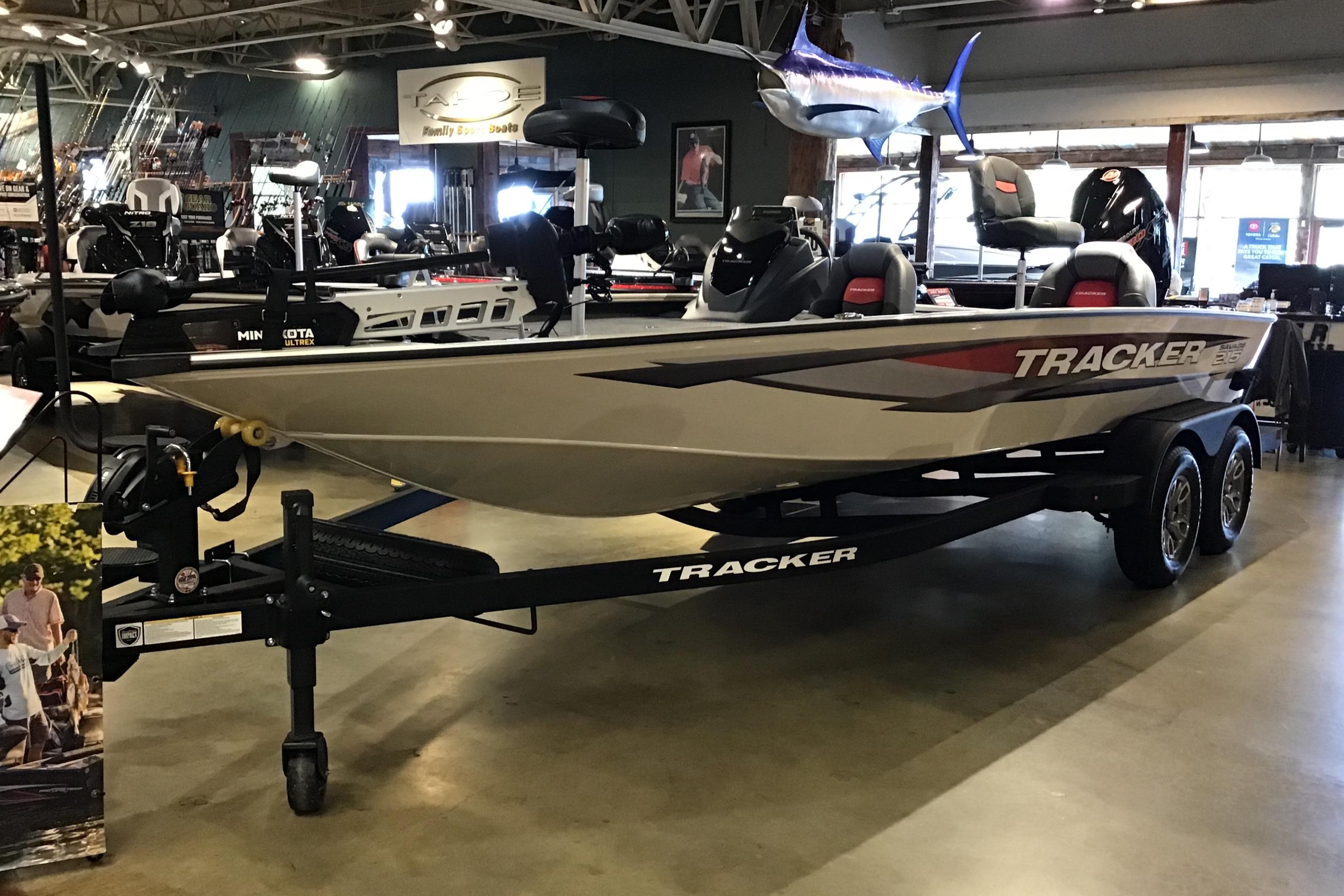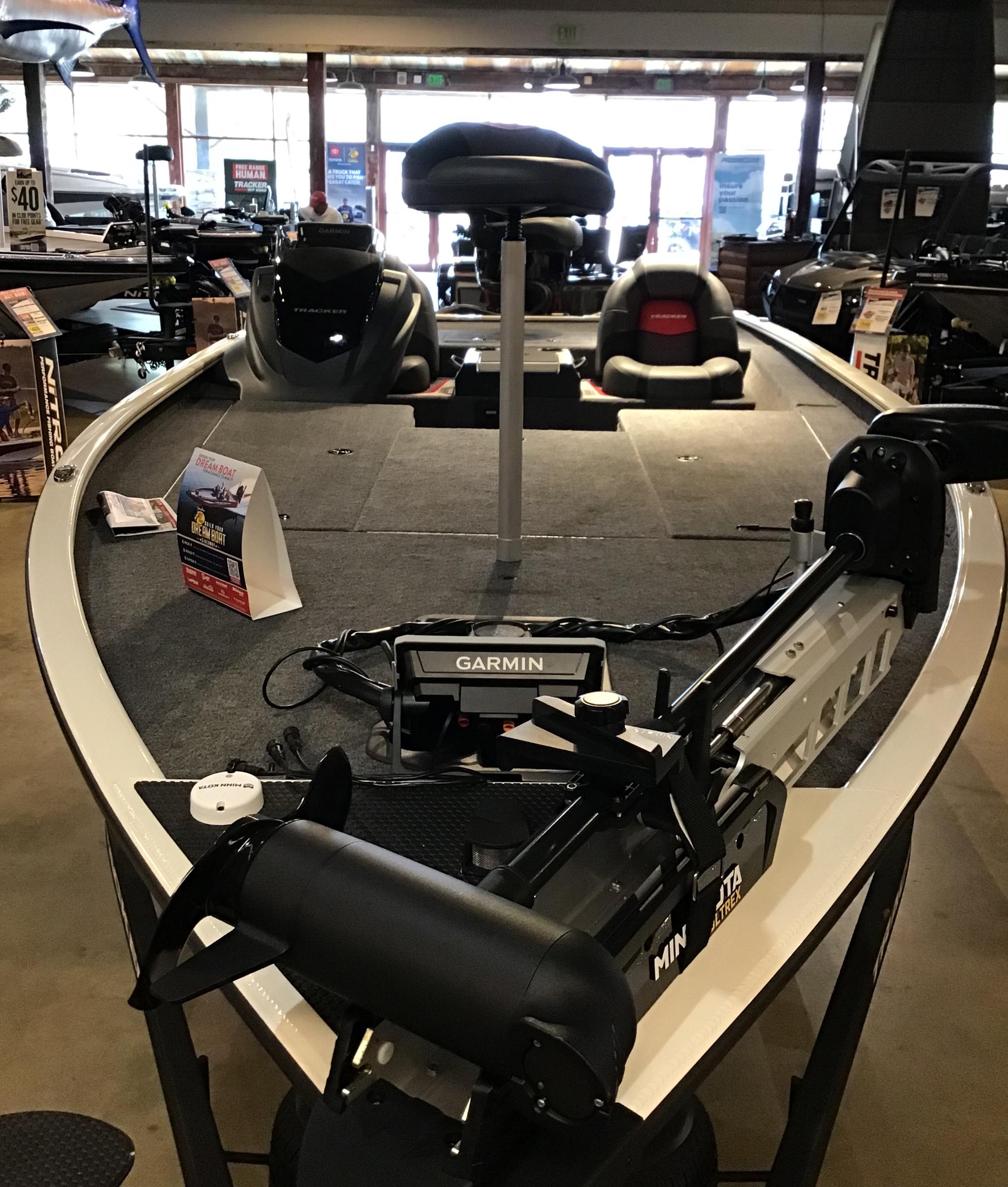 • 1-piece rotomolded TRACKER® console w/built-in controls, storage pocket & windscreen