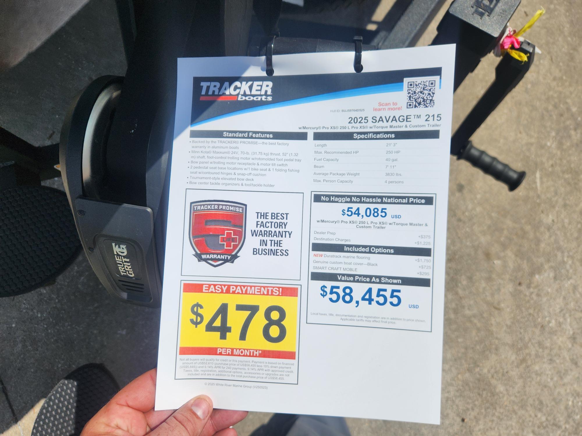 Built to last, Savage 215 is an all-welded derby-dominating machine that’s backed by the TRACKER PROMISE - the best factory warranty in aluminum boats.  Top to bottom, front to back, the Savage 215 offers advantage after advantage that until today, would’ve cost a whole lot more.