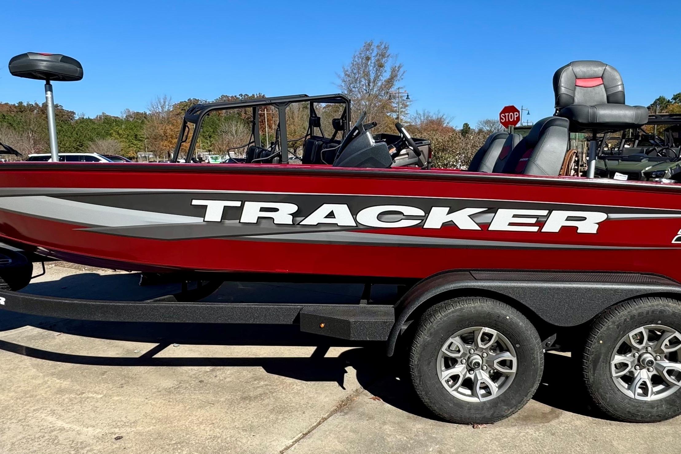 • 1-piece rotomolded TRACKER® console w/built-in controls, storage pocket & windscreen
