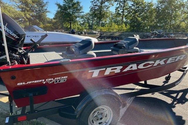 The TRACKER SUPER GUIDE V-16 SC is brimming with features, value, and space. The side console design optimizes space and storage to give a bigger presence. The all-welded hull is robotically welded for maximum strength and precision, giving you peace of mind when the swells kick up. Multiple seating locations let you tailor the interior for the day at hand, and comfort comes by way of our legendary handmade folding fishing seats. This V-16 SC comes standard with a powerful and efficient Mercury FourStroke outboard engine and a custom-matched GALVASHIELD Impact trailer for smooth, safe transportation. And with the TRACKER PROMISE backing it up, you can enjoy peace of mind knowing you have the best factory warranty in aluminum boats.