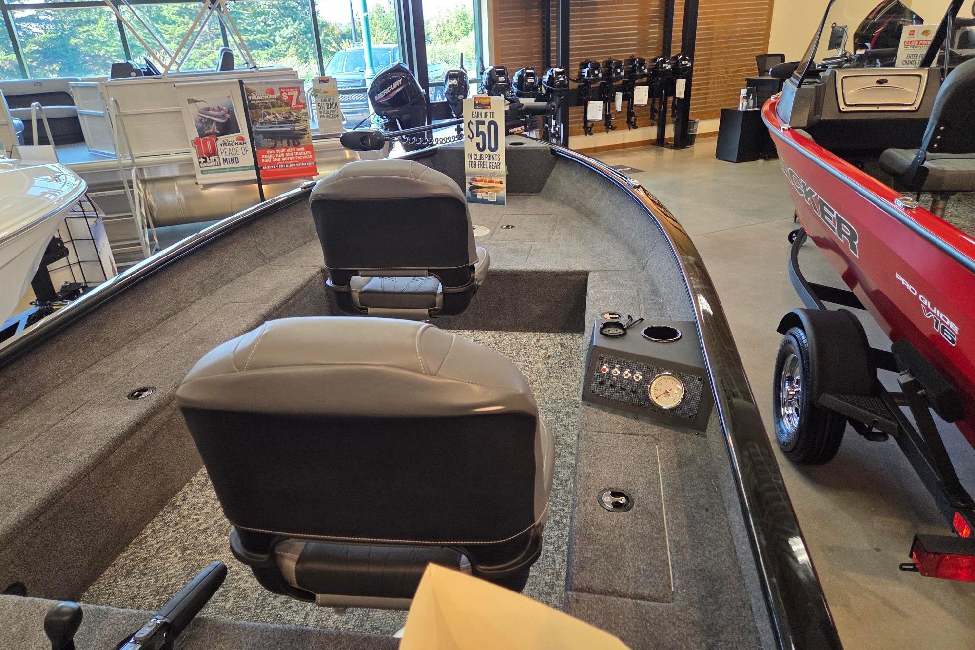 The newest TRACKER begins with a proven and highly acclaimed hull and adds tiller steering for more space, versatility, and simplicity. The Super Guide V-16 Tiller features the same sturdy, proven, and guaranteed build quality as our entire all-welded, rivet-free lineup. With increased cockpit space and a non-skid flooring, the new Super Guide V-16 Tiller is as wide open for possibilities as your day. It's equipped with spacious storages, multiple seating locations, an intuitive and well-equipped gauge pod, and of course, the same peace of mind that runs throughout our lineup. With the tiller in hand, you command smooth, reliable Mercury® power and a boat that's the result of decades of passionately pursuing excellence.