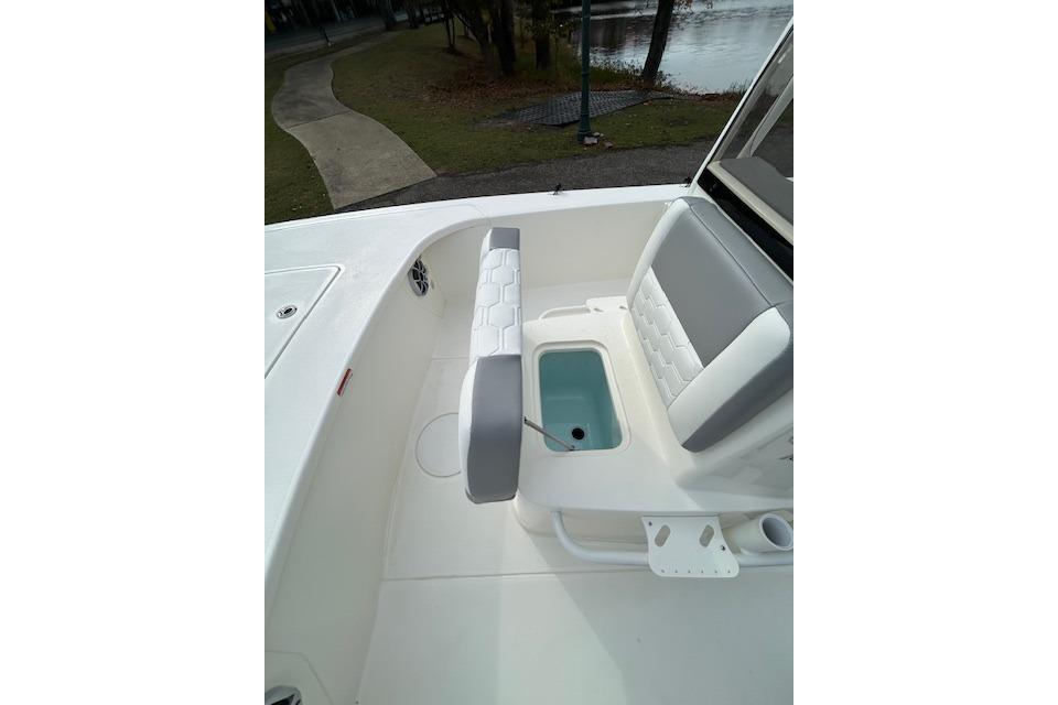 • Raised aft fishing platform w/yacht style non-skid surface & insulated storage/fishboxes