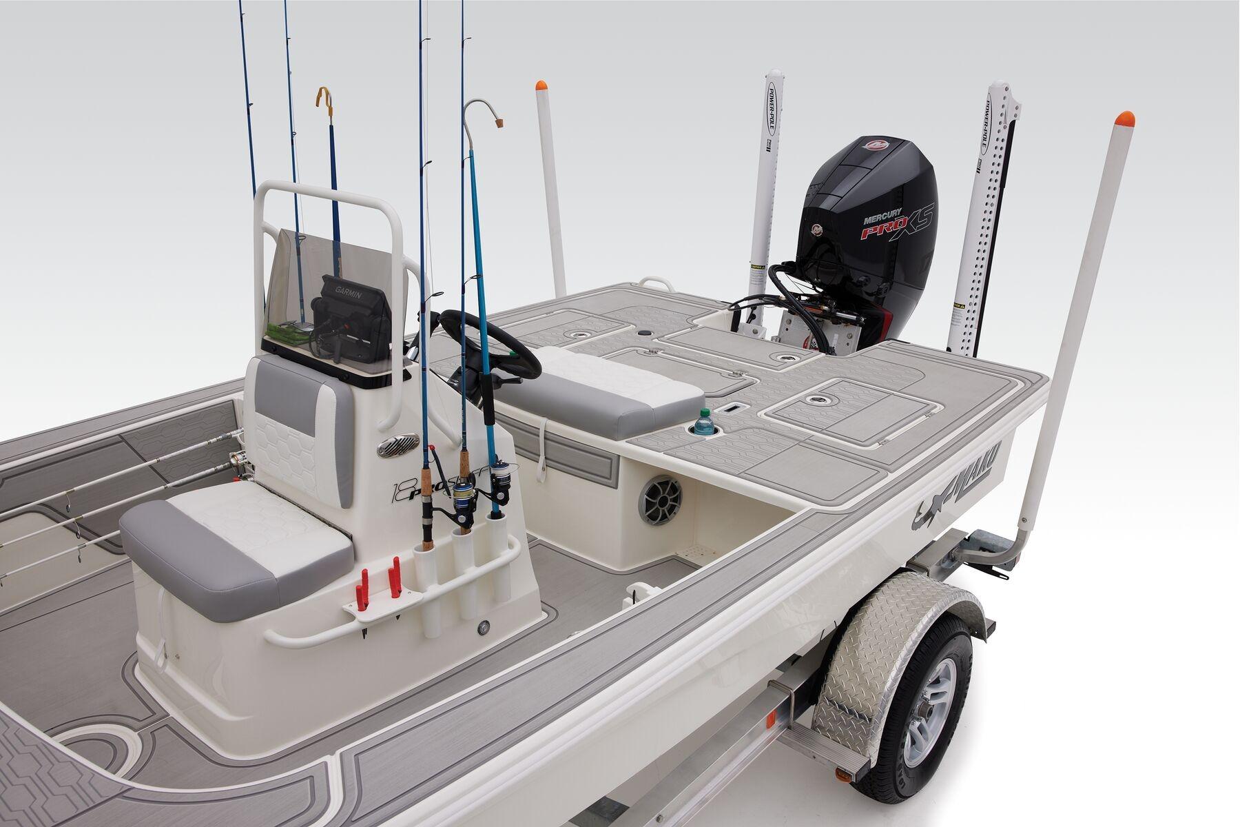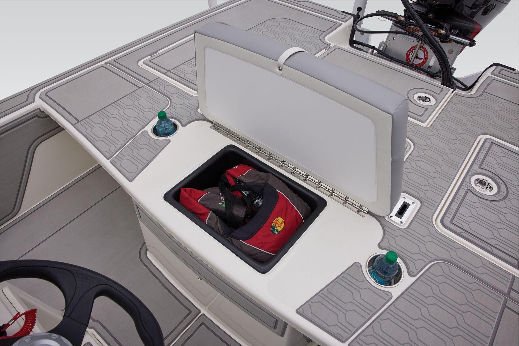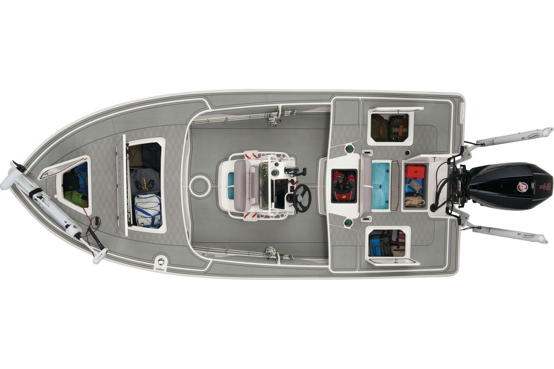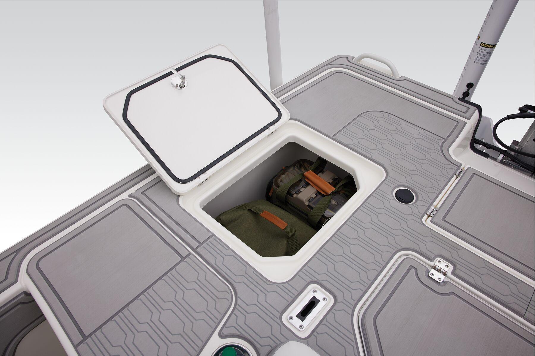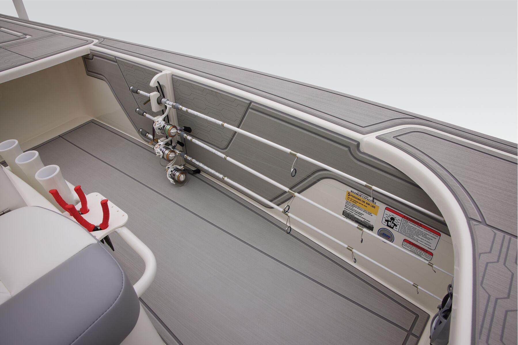 Thanks to the Rapid Planing System™ transom, the skiff delivers enhanced rear lift for quicker, smoother takeoffs in shallow conditions. From bow to stern, the boat is rock-solid, providing edge-to-edge stability that makes fishing more comfortable and efficient. Six vertical rod holders keep your gear within reach, while additional storage under the front deck ensures everything stays organized. Trim tab provisions and an optional poling platform add versatility, making this skiff a serious inshore threat.