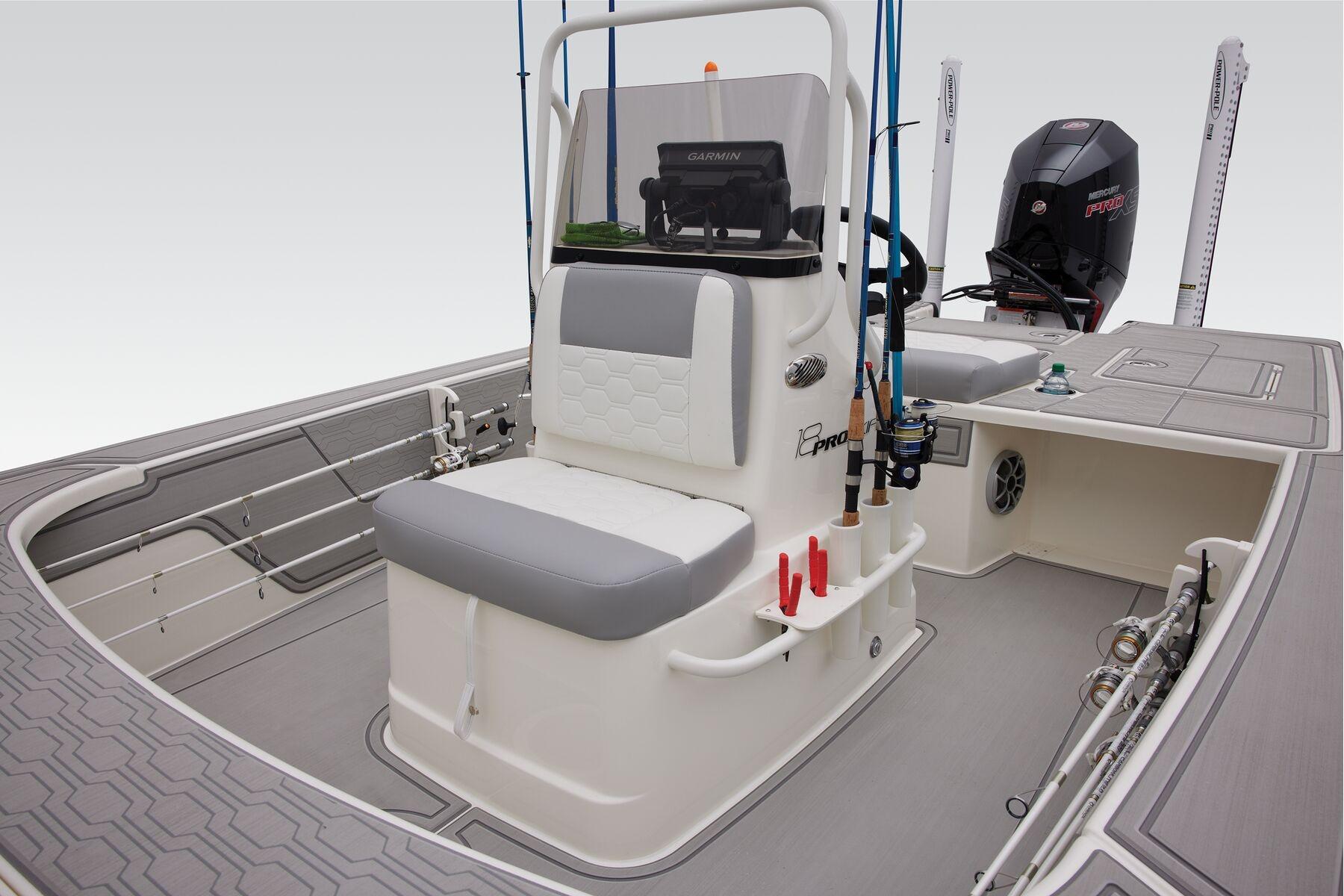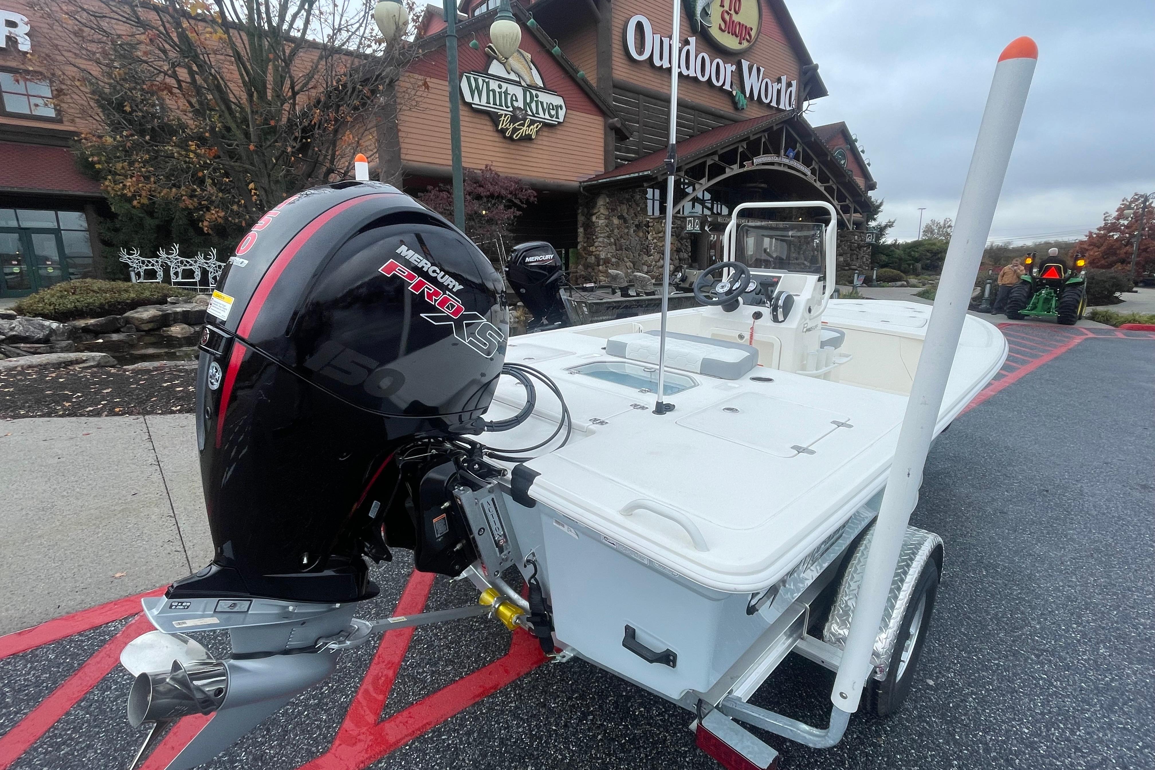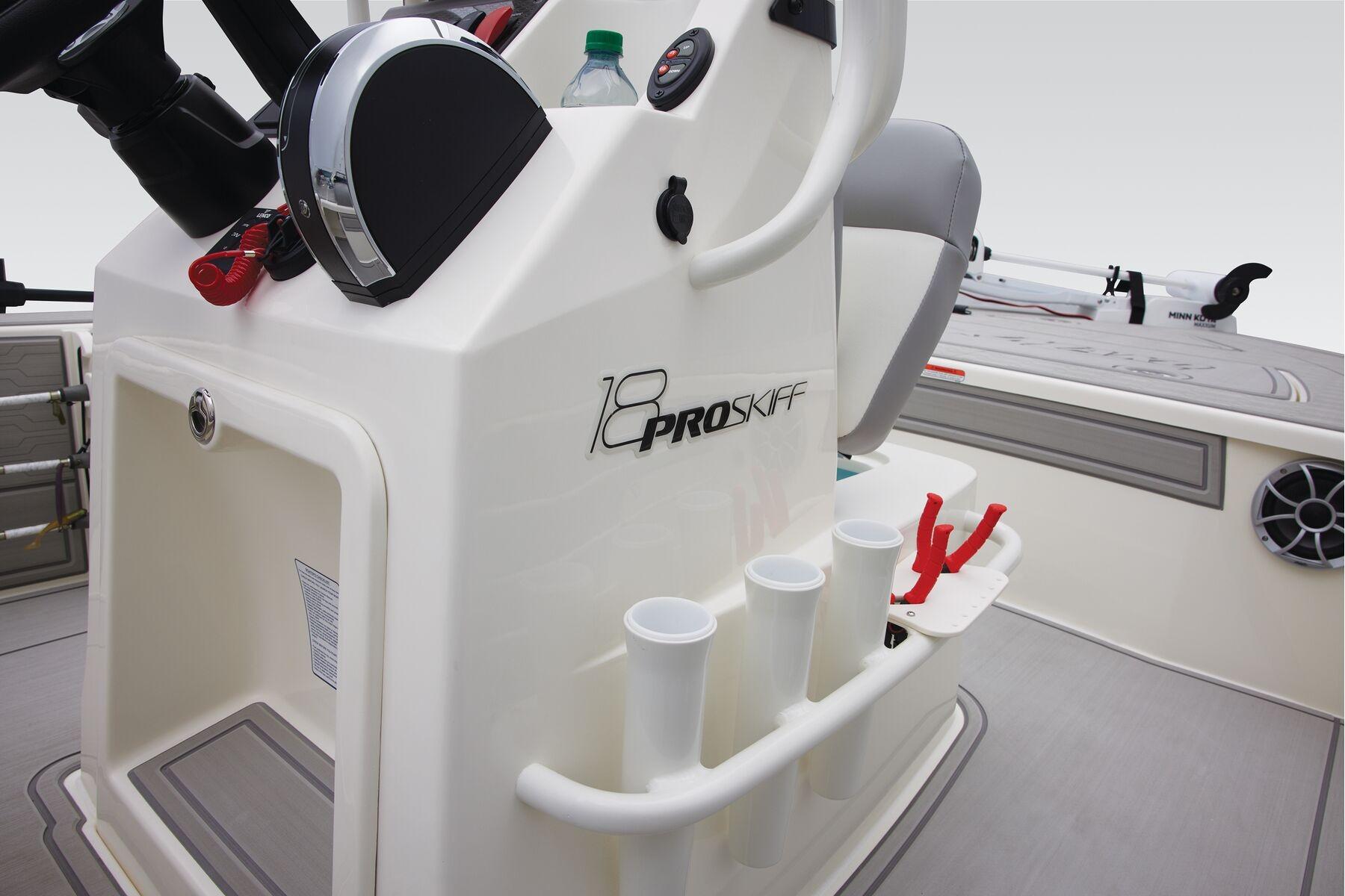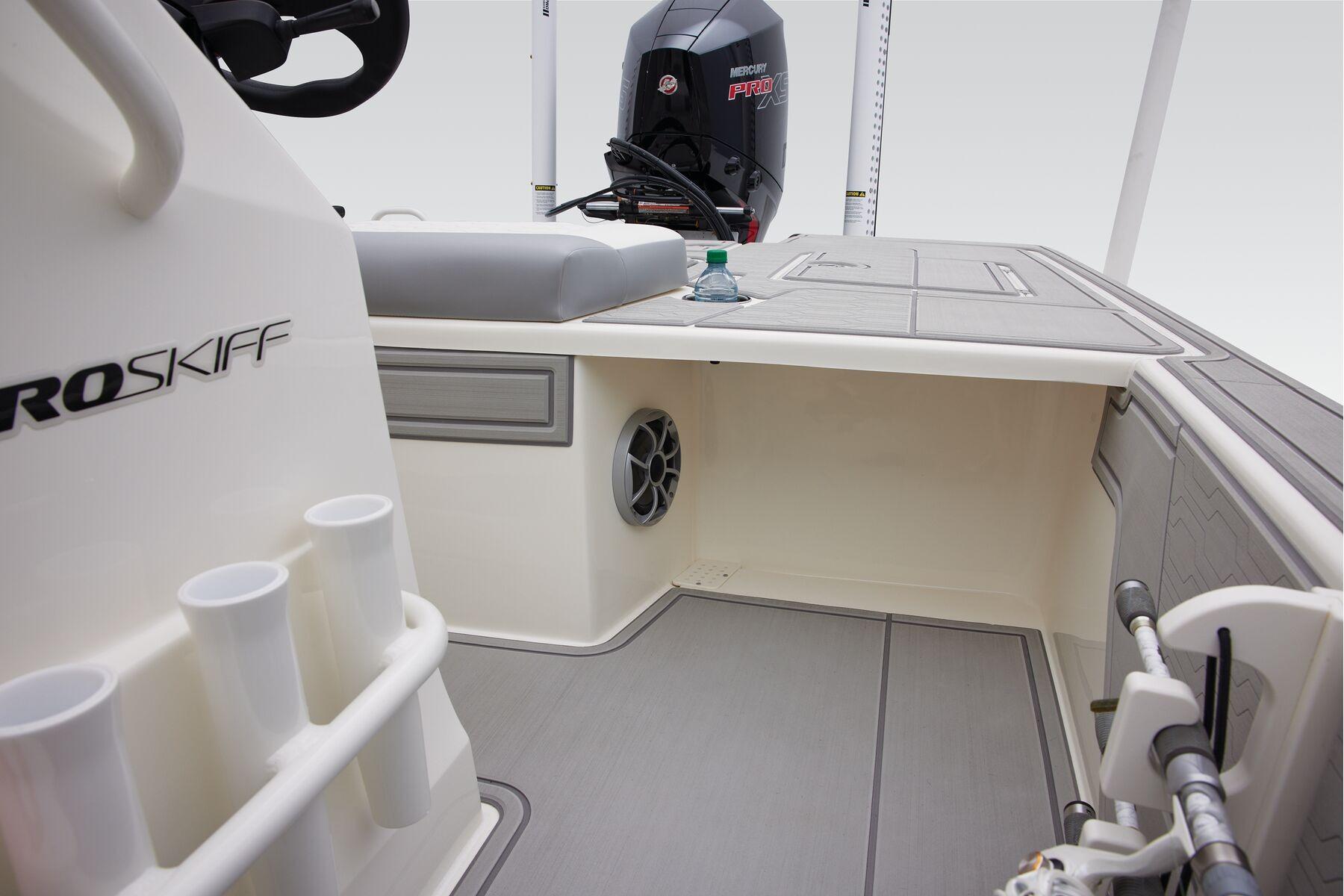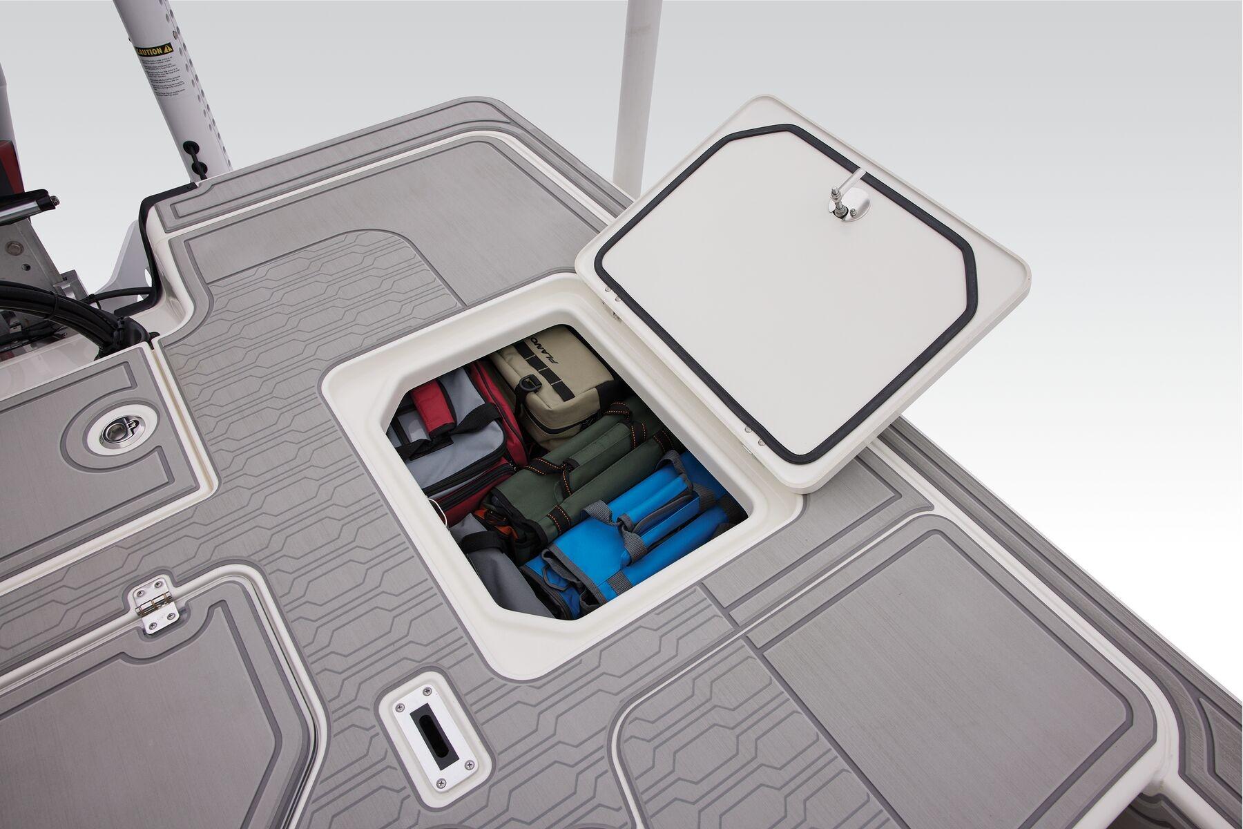 Thanks to the Rapid Planing System™ transom, the skiff delivers enhanced rear lift for quicker, smoother takeoffs in shallow conditions. From bow to stern, the boat is rock-solid, providing edge-to-edge stability that makes fishing more comfortable and efficient. Six vertical rod holders keep your gear within reach, while additional storage under the front deck ensures everything stays organized. Trim tab provisions and an optional poling platform add versatility, making this skiff a serious inshore threat.