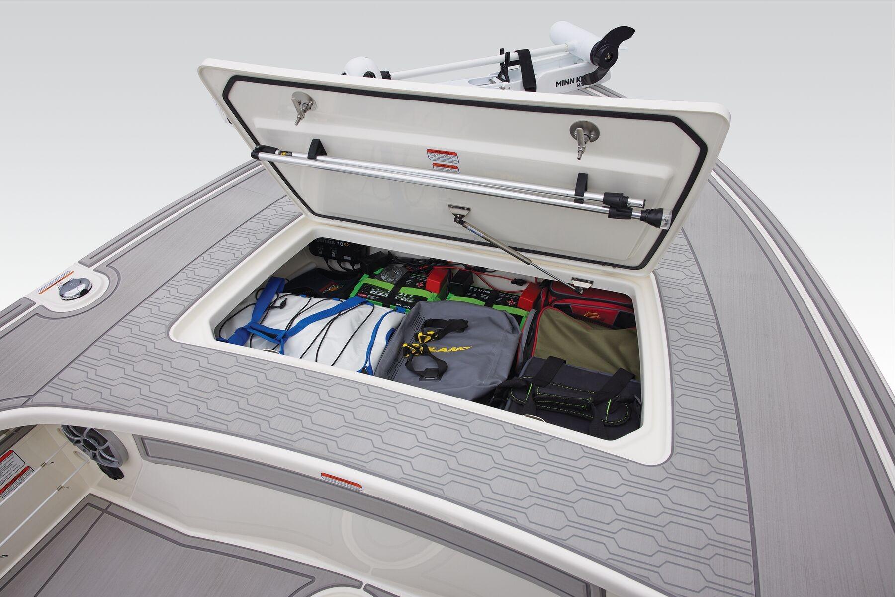 • Raised bow fishing platform w/yacht style non-skid surface & closed storage compartments