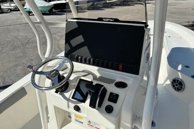 - Bone White Hull - Wet Sounds Stereo - Raw Water Wash - Trim Tabs - 7" Sharktooth Digital display - Bow Seating - Pre-wired for trolling motor - Hard Top T-Top