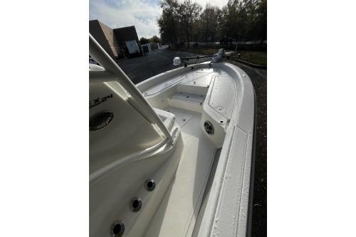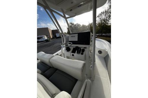 The MAKO 24 Apex is here, slicing through waterways with a brand-new, performance-focused Next Generation Hull. Load up everything you need in its streamlined deck’s gear-organization solutions, including lockable gull-wing 8’ rod boxes, plenty of head storage, and more. Once you’ve found somewhere to cast a line, post up at the available fiberglass leaning-post bait station complete with a 30-gal. baitwell. The aft release well and bow in-step livewell round out this boat’s fishing-trip readiness. When it’s time to head back to shore to celebrate, hop in the central jump seat, engage the digital throttle, and get there faster with up to 400hp of get-up-and-go power. After?experiencing the Apex, it's difficult to bring yourself back down.