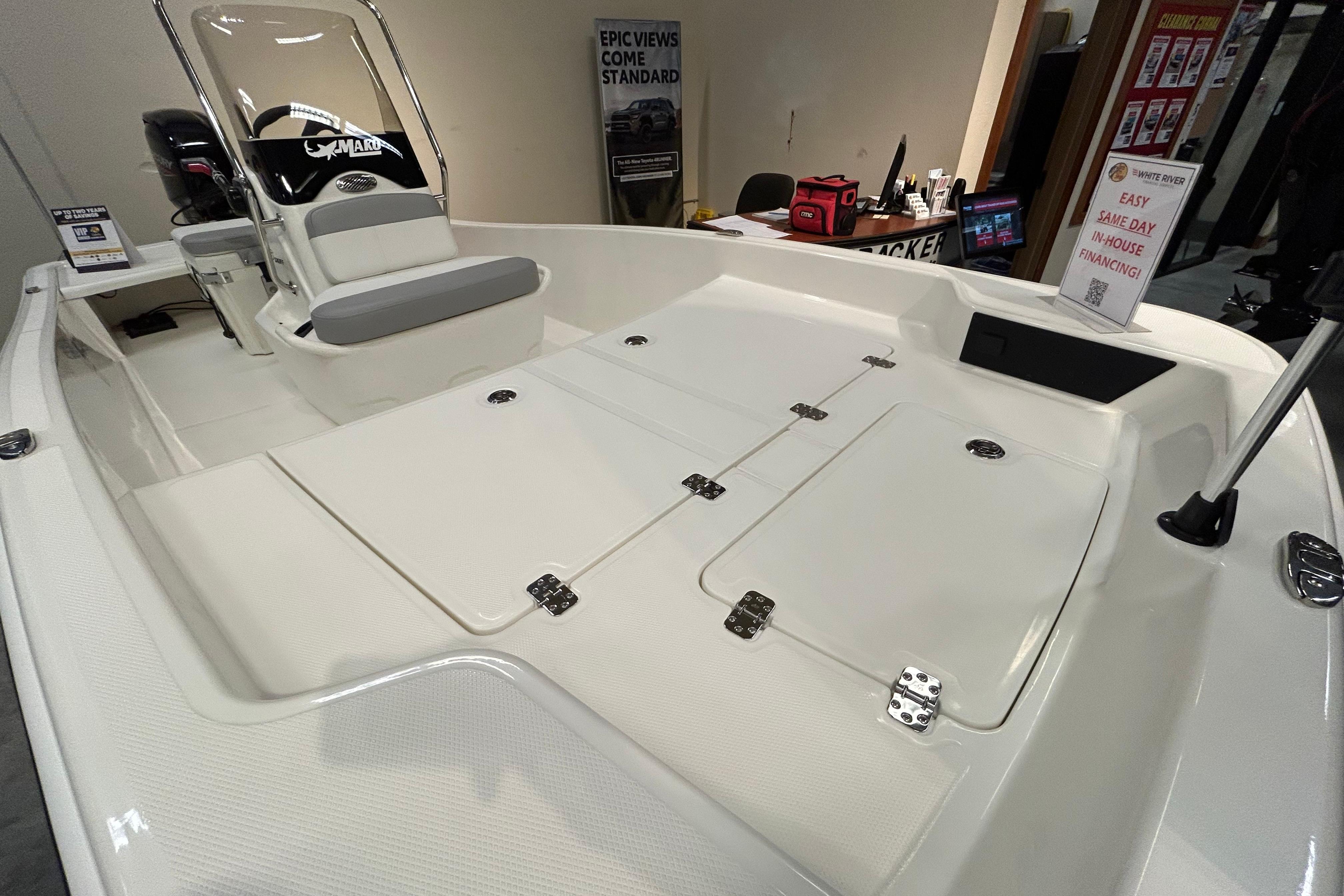 • Raised, closed-molded aft fishing platform w/patterned non-skid surface & open storage space below