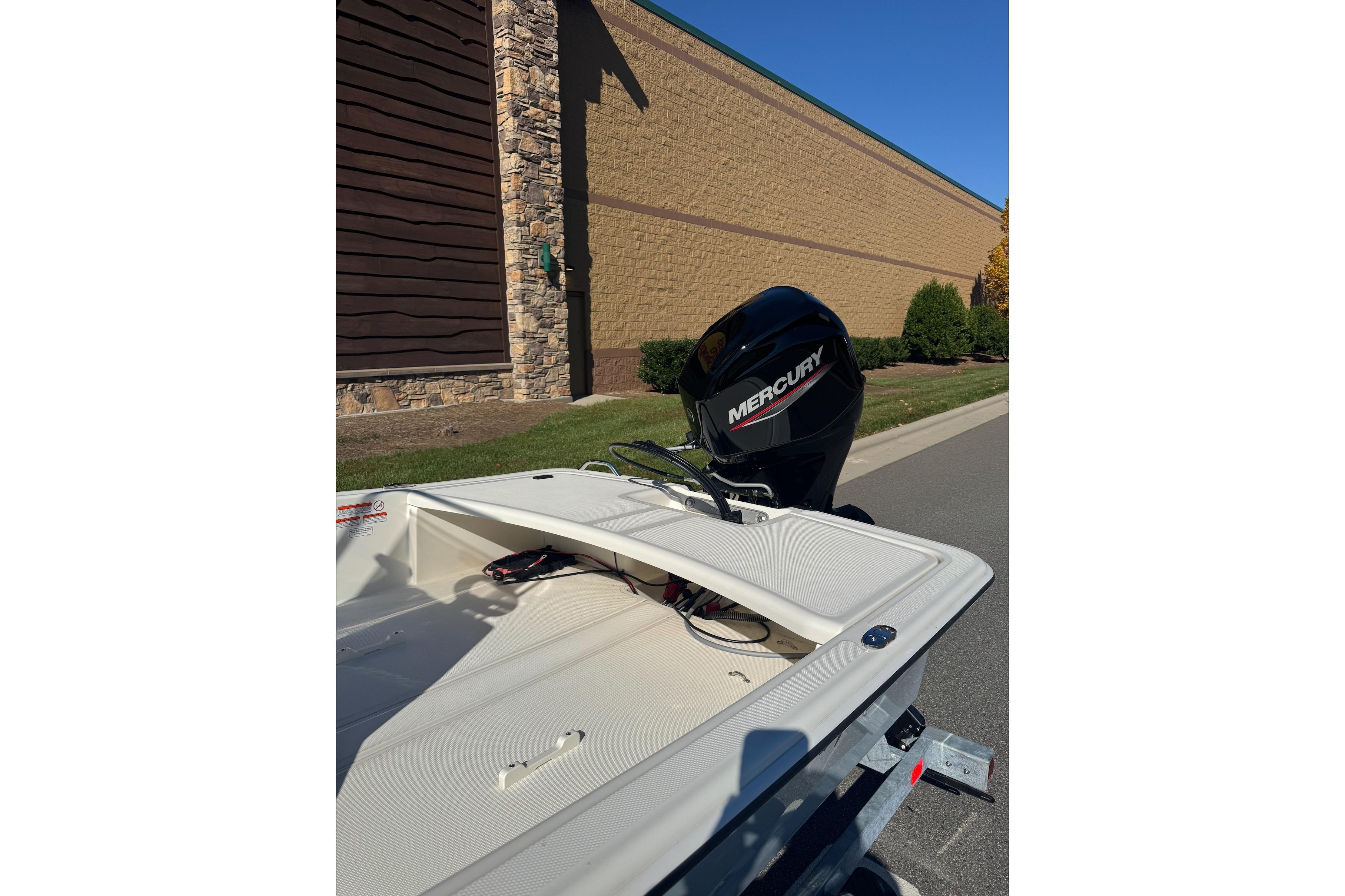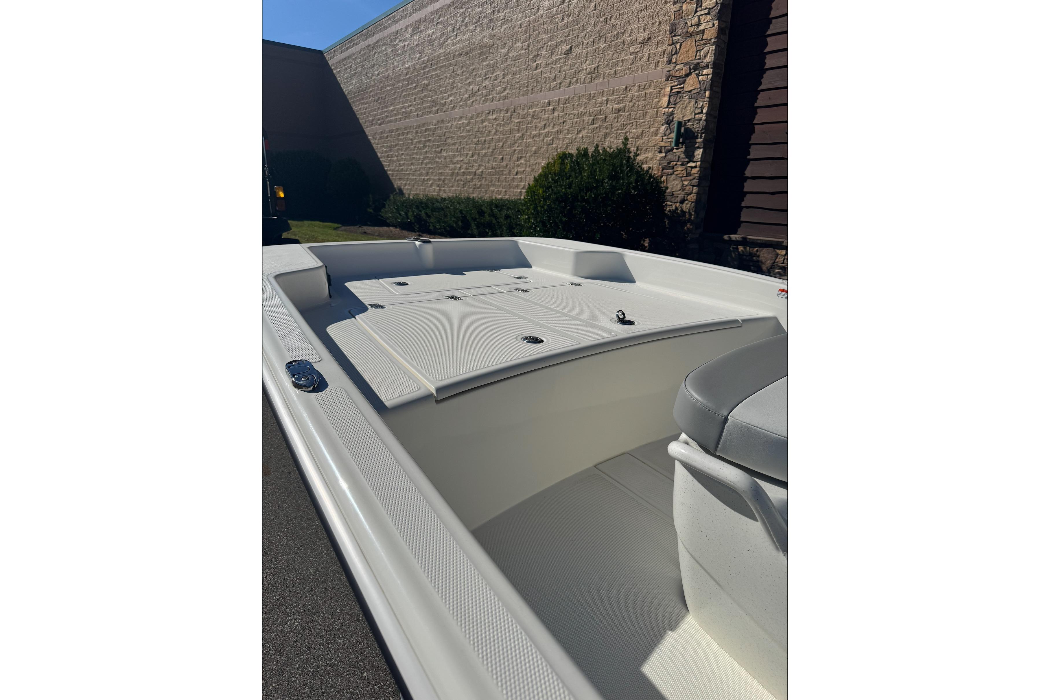 • Raised, closed-molded aft fishing platform w/patterned non-skid surface & open storage space below