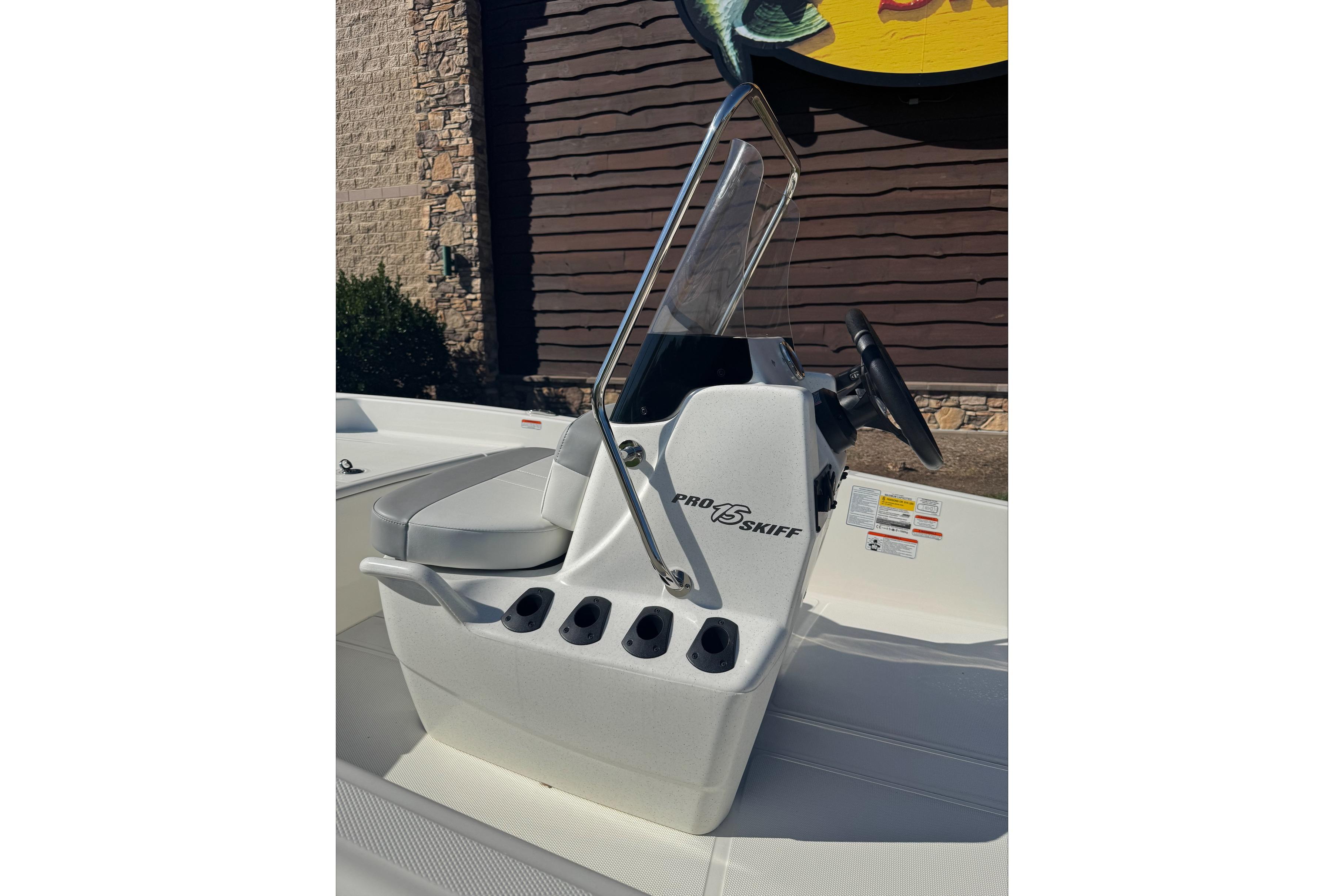 Stout construction, solid feel, and all-out fishability define the MAKO Pro Skiff 15 CC. The center console design offers maximum fishing space, and the purposefully designed hull was crafted for a smooth, dry ride, stability, and a shallow draft. Inside the Pro Skiff 15 CC is a helm seat with a 65-quart Orion® cooler underneath, a baitwell under the front seat, and rod holders and storage for a full day’s worth of gear.