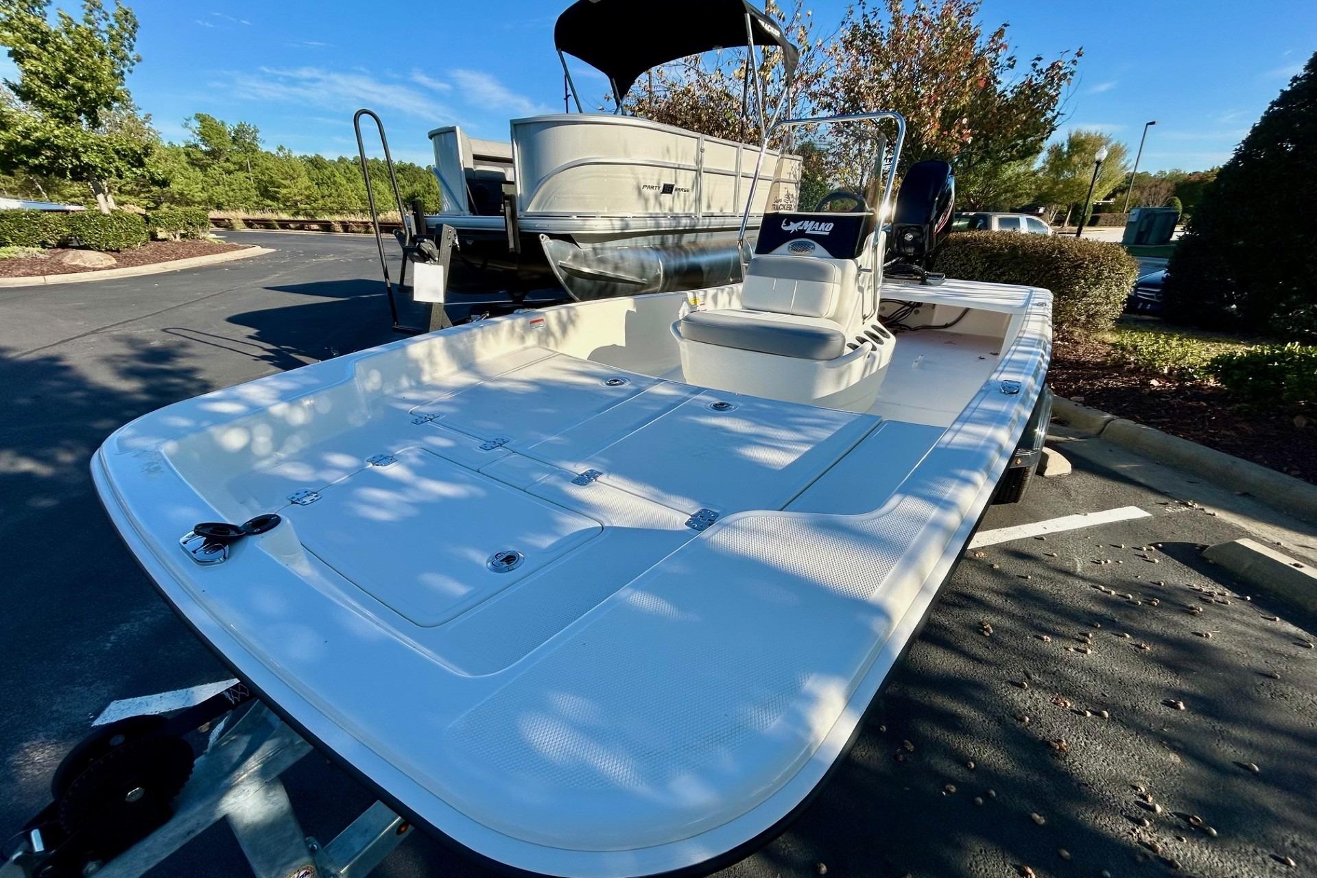 • Raised, closed-molded aft fishing platform w/patterned non-skid surface & open storage space below