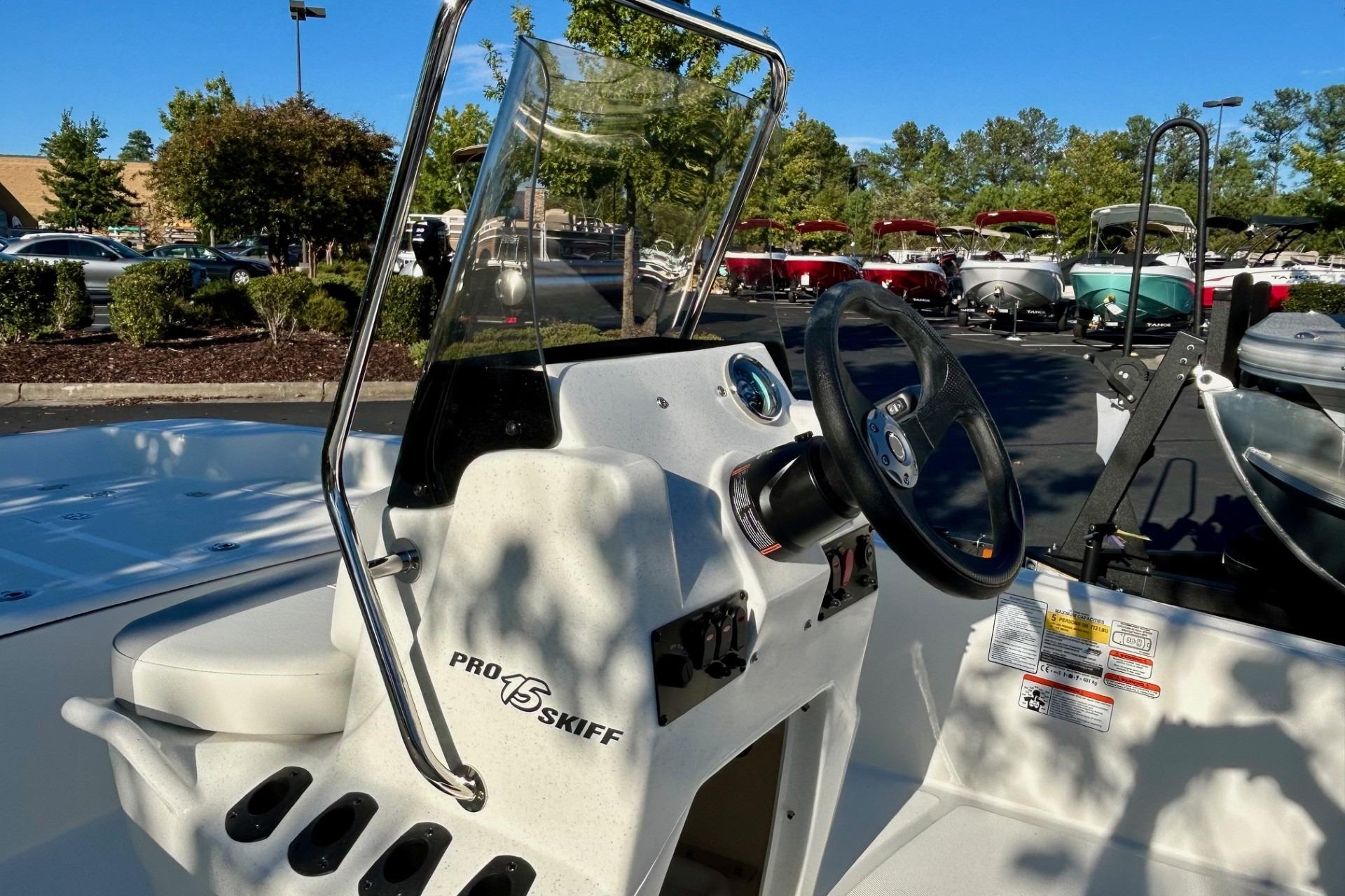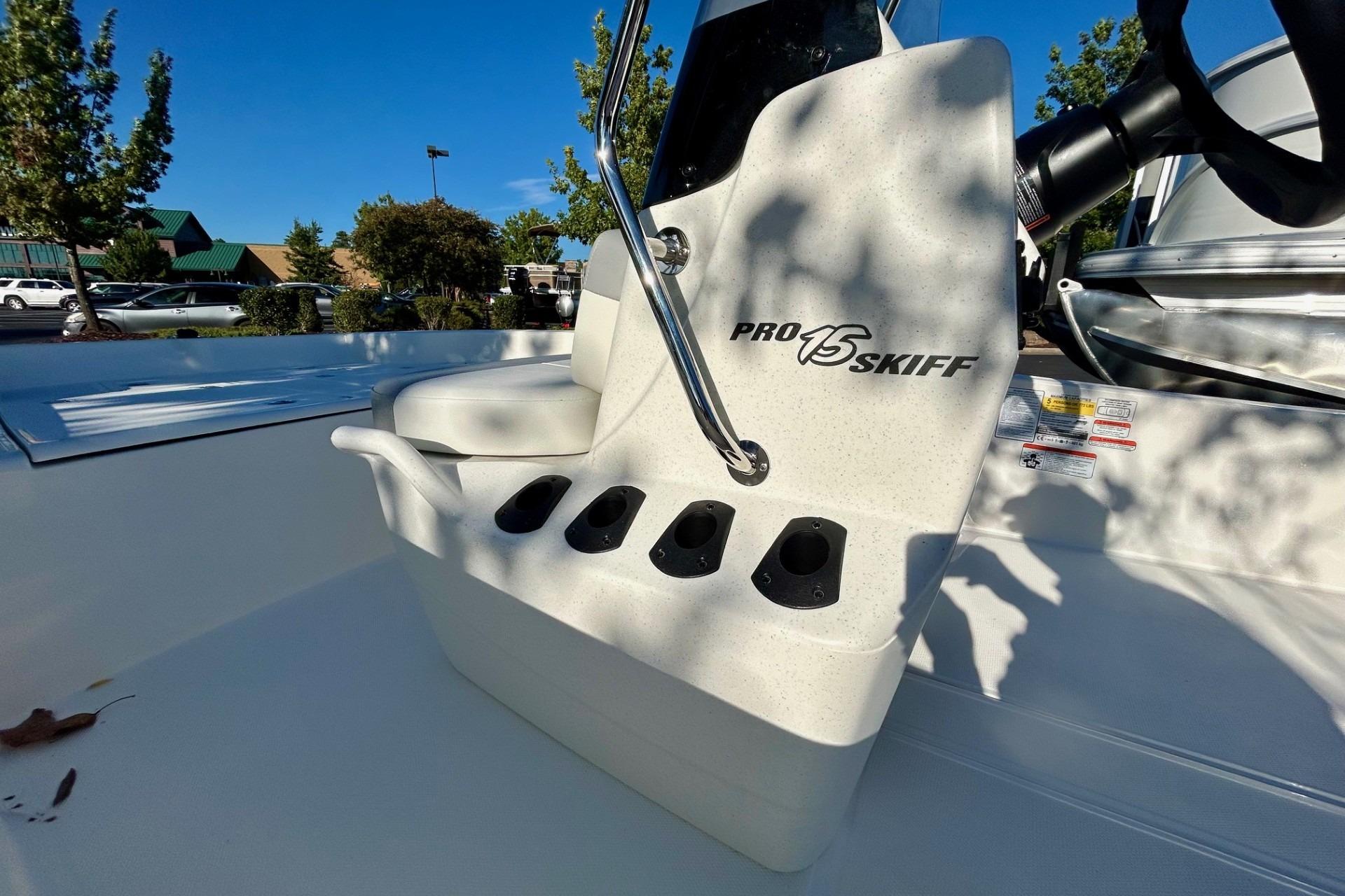 Construction of the Pro Skiff 15 CC follows our legendary chemical bonding process that unitizes the hull and deck, and fills every void with flotation foam for maximum buoyancy, insulation from shock and waves, and a solid feel. Complementing stellar on-water performance is a custom-fitter trailer that’s made just for the hull riding on it, for years of easy towing and on-road peace of mind. With up to 60 horses on tap, adventure is just a stab of the throttle away.