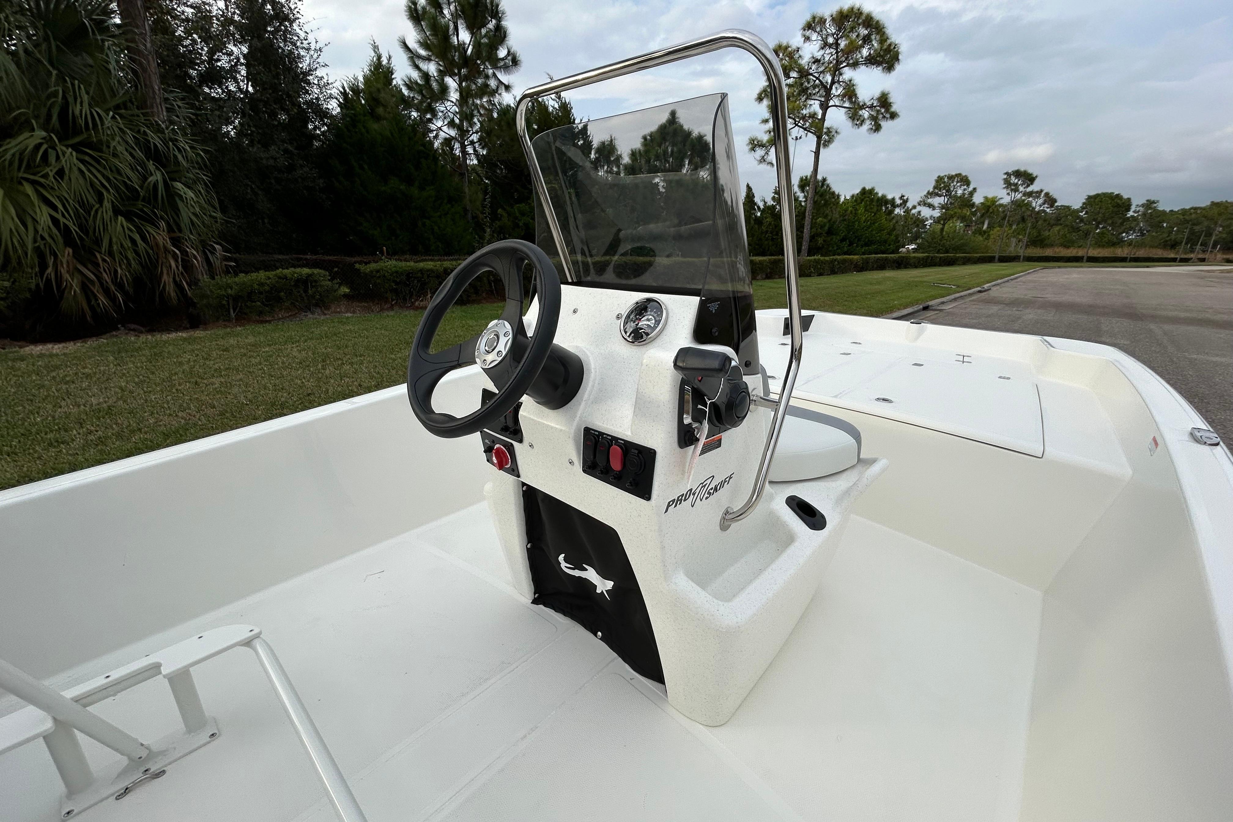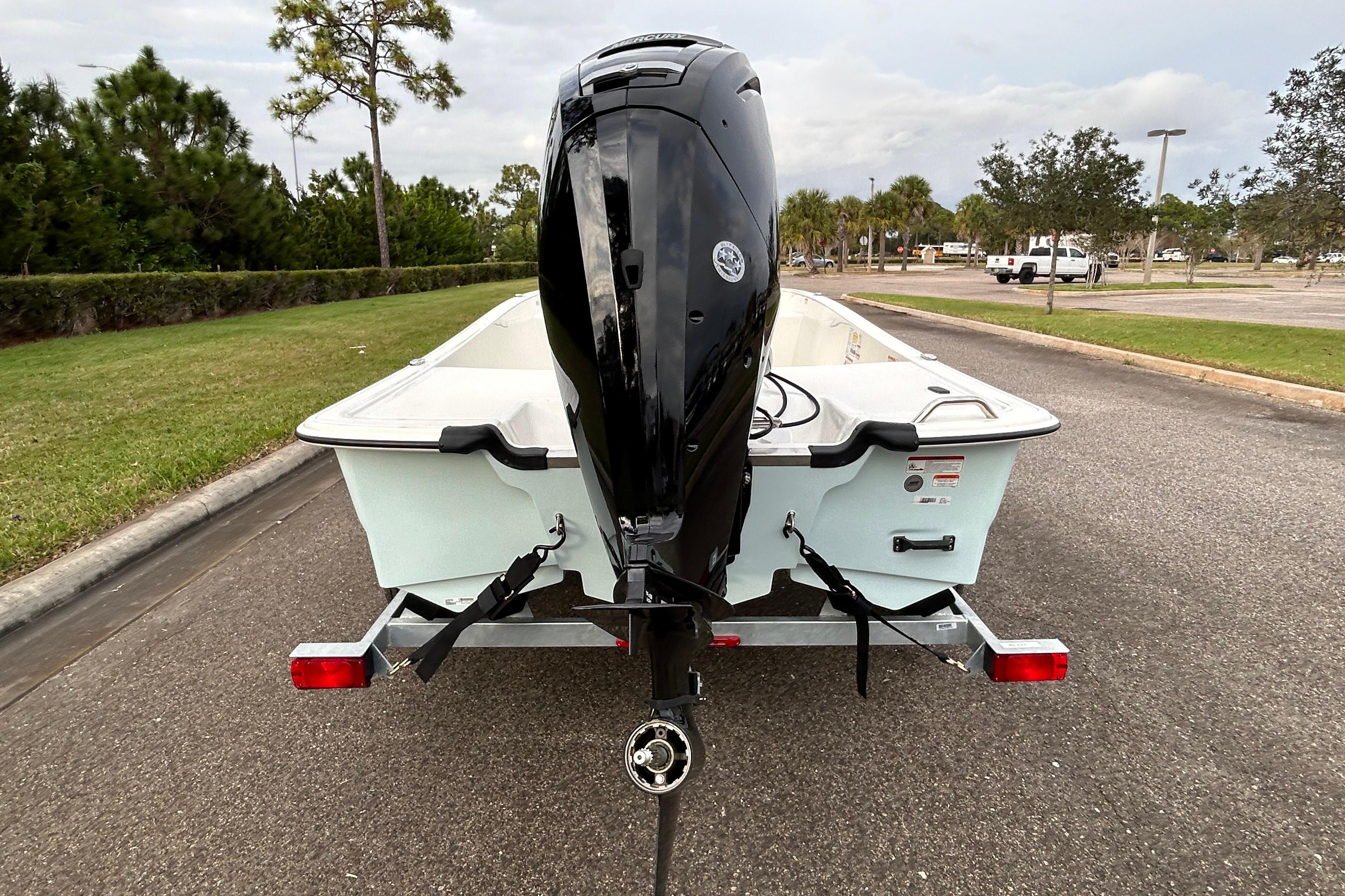 The Pro Skiff 17 CC is a hardcore fishing machine with refined manners for all-day comfort. Five rod holders, a bow anchor stow, huge lockable in-deck storage box, and twin baitwell/livewells let you carry everything you need for a day of casting or cruising. An optional rugged trolling motor and fishfinding electronics lead the way to the day’s catch, while the standard FourStroke Mercury® outboard delivers reliable power in all conditions. Rounding out this capable inshore performer is a saltwater-ready trailer that’s tailor-made for this hull that delivers safe and solid on-road performance mile after mile.