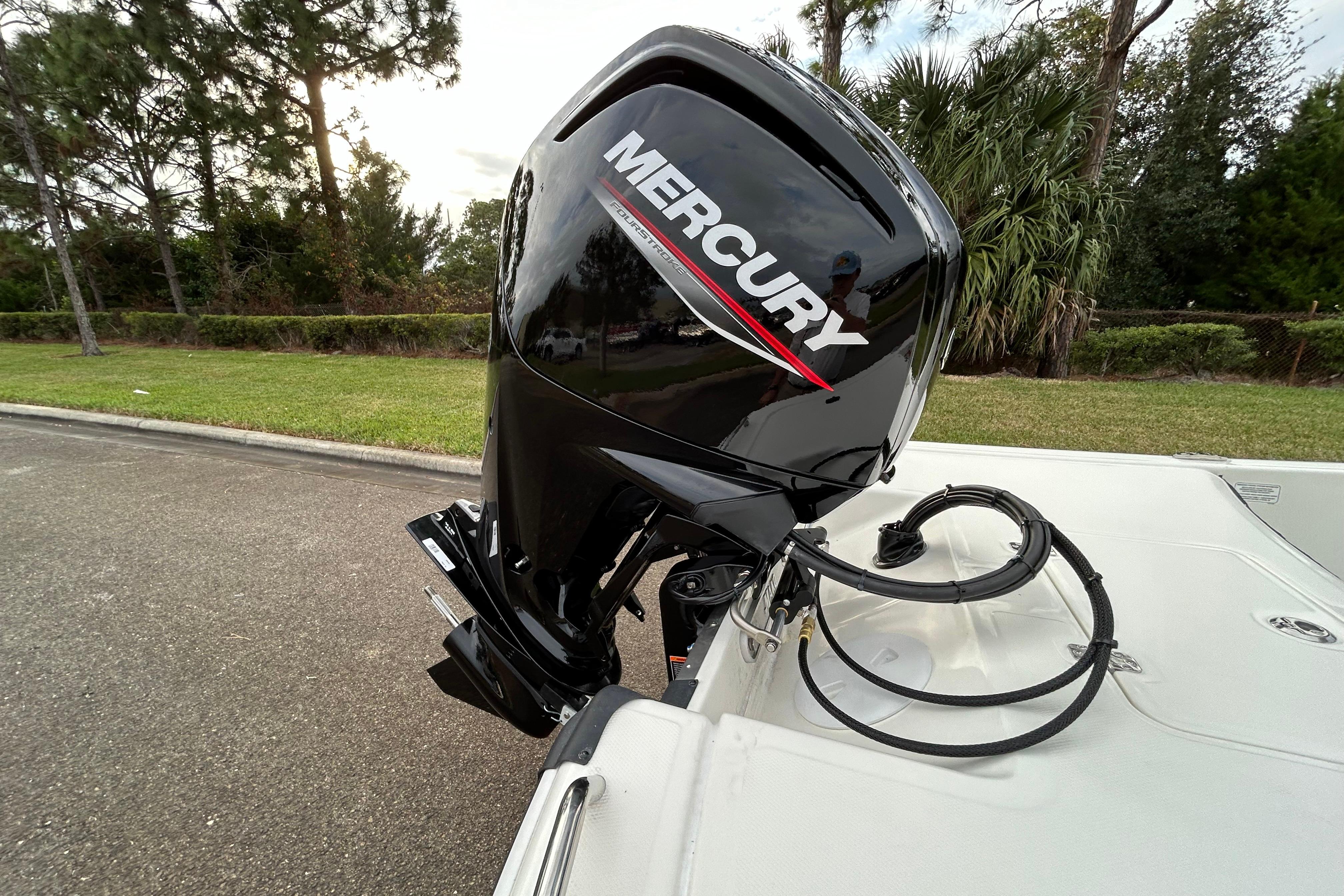 • Encapsulated, fiberglass-infused transom w/high-density composite core