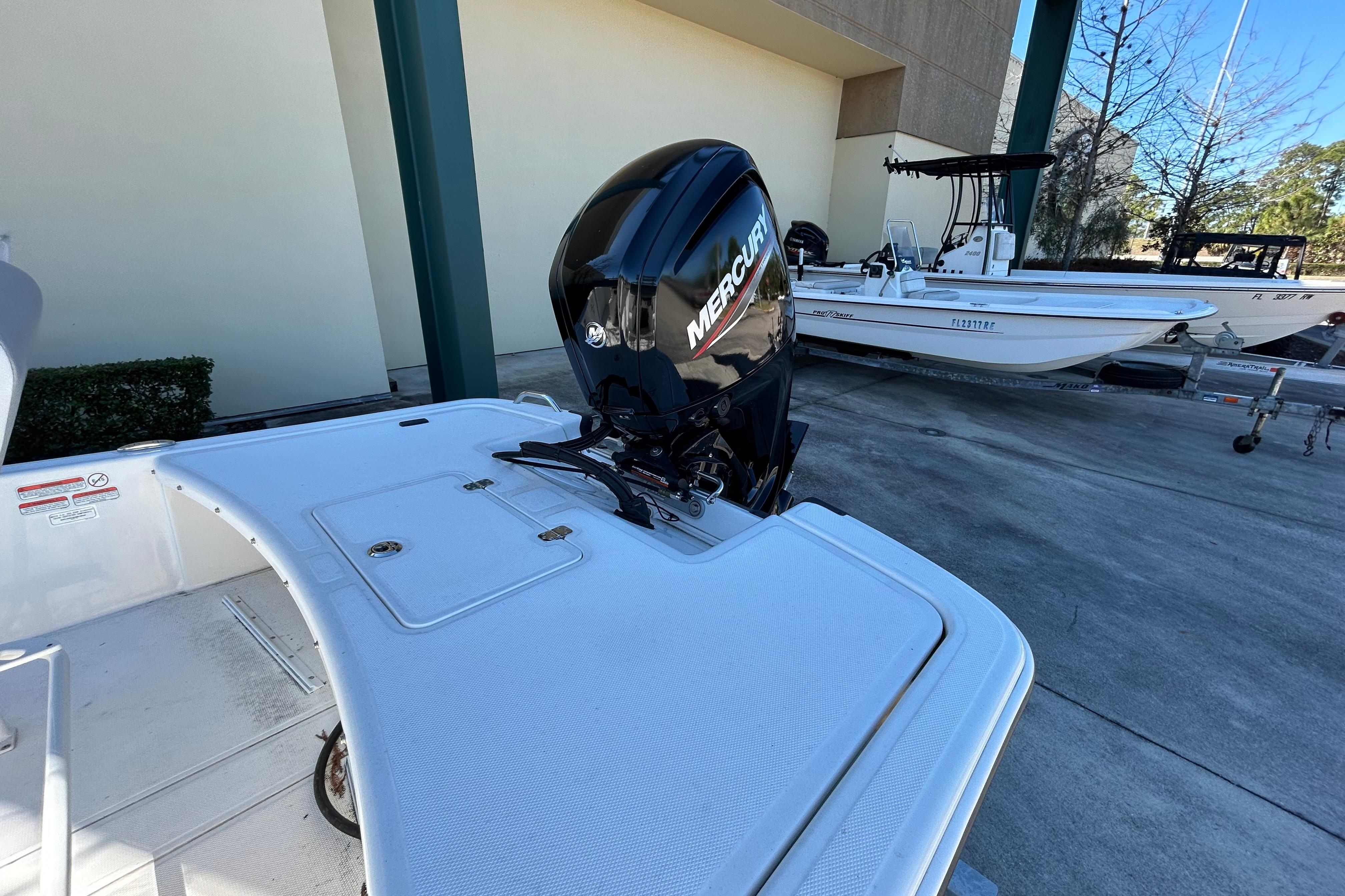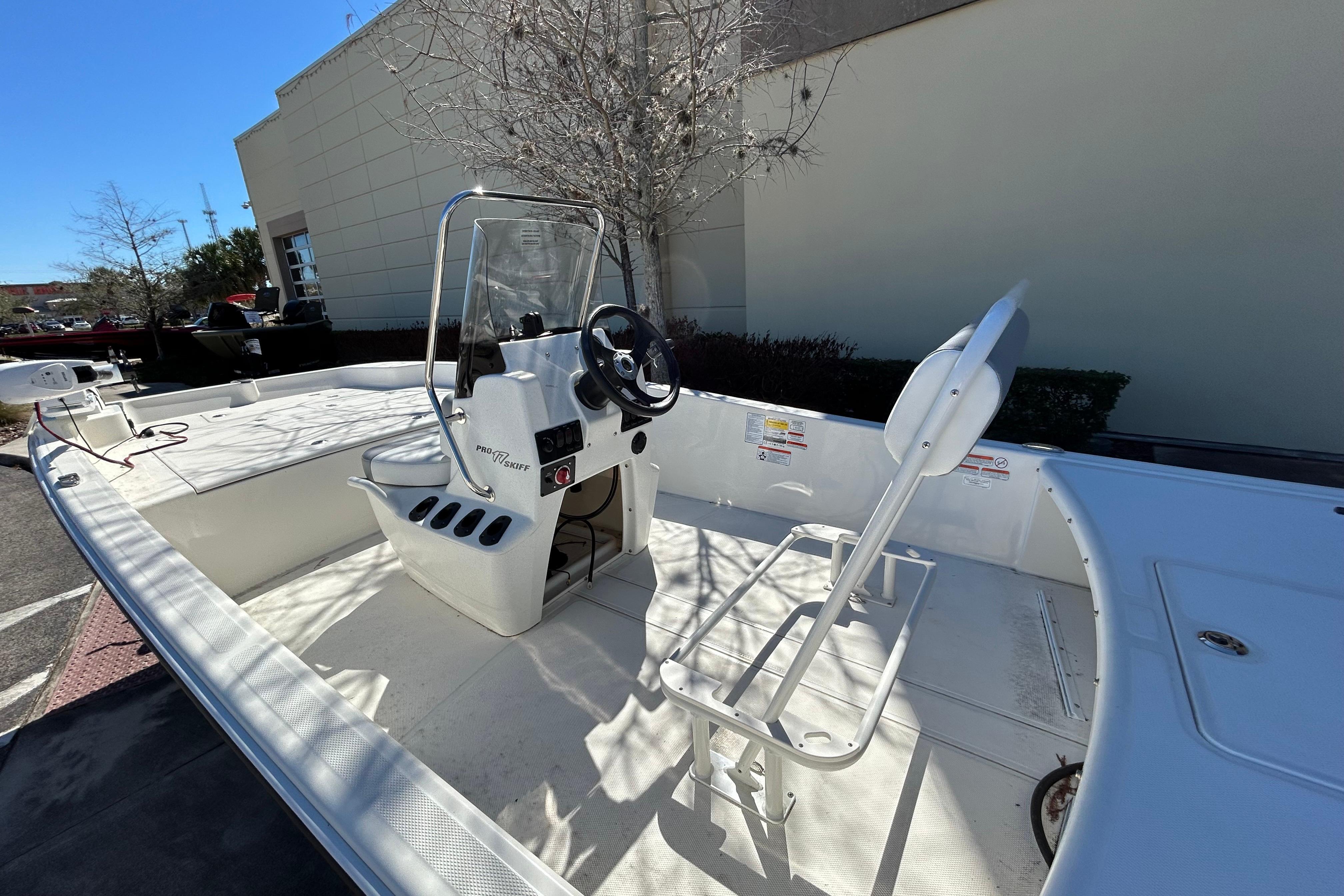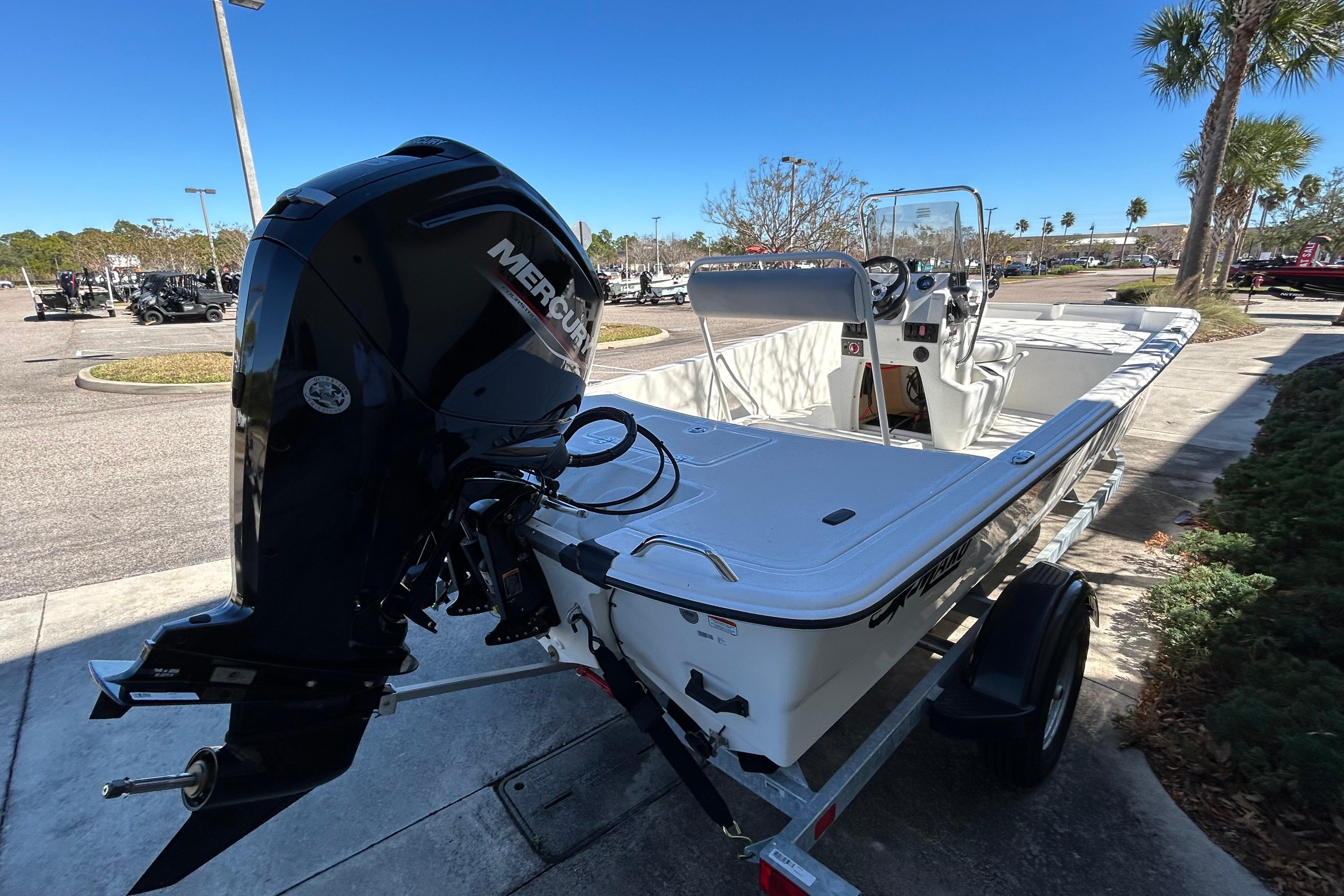 The Pro Skiff 17 CC is a hardcore fishing machine with refined manners for all-day comfort. Five rod holders, a bow anchor stow, huge lockable in-deck storage box, and twin baitwell/livewells let you carry everything you need for a day of casting or cruising. An optional rugged trolling motor and fishfinding electronics lead the way to the day’s catch, while the standard FourStroke Mercury® outboard delivers reliable power in all conditions. Rounding out this capable inshore performer is a saltwater-ready trailer that’s tailor-made for this hull that delivers safe and solid on-road performance mile after mile.