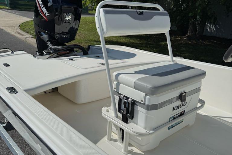 • Molded center console w/integrated 8-gal. (30.28 L) baitwell, molded-in grab handles & hinged padded seat cushion & back