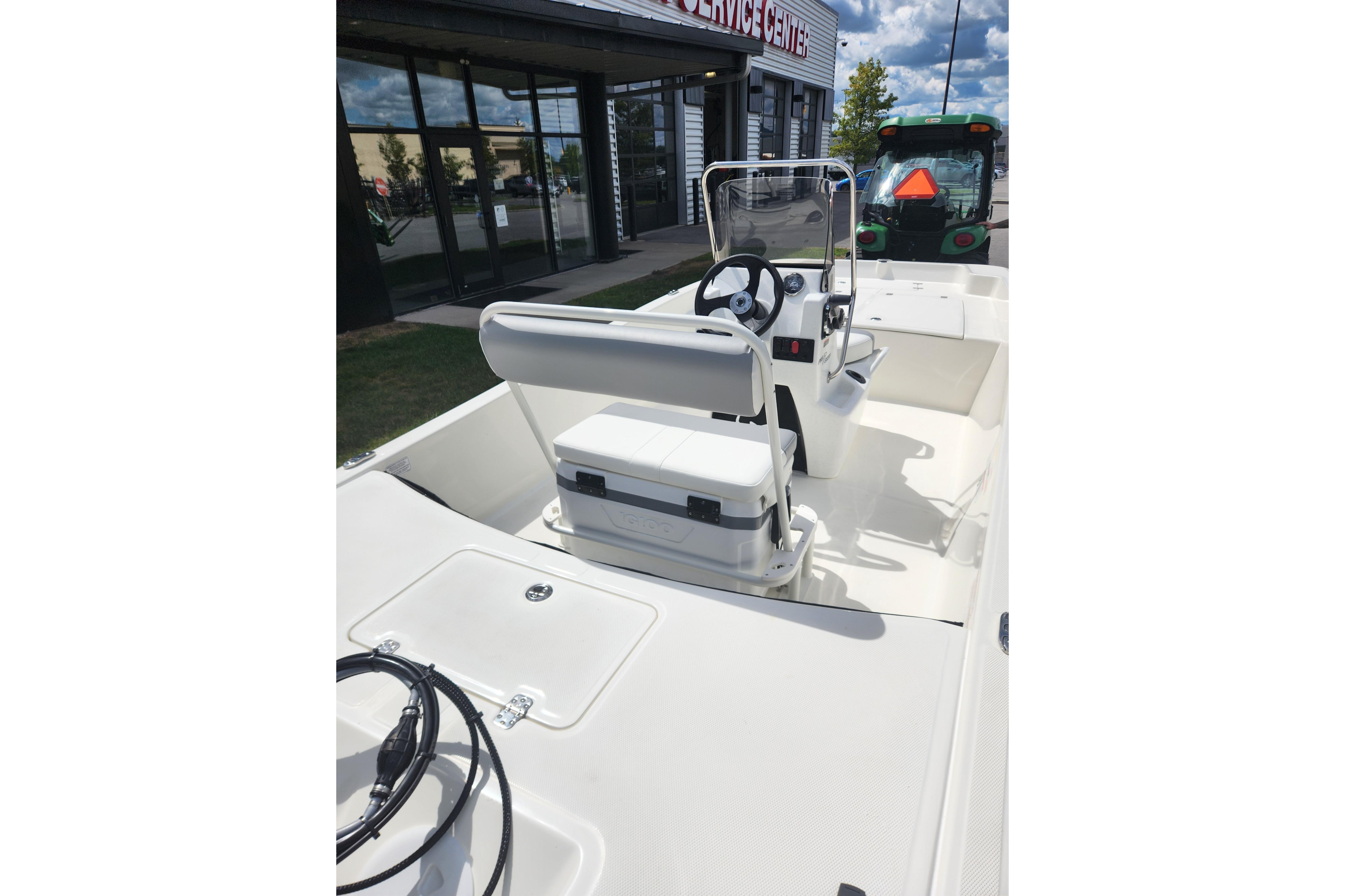 • Molded center console w/integrated 8-gal. (30.28 L) baitwell, molded-in grab handles & hinged padded seat cushion & back
