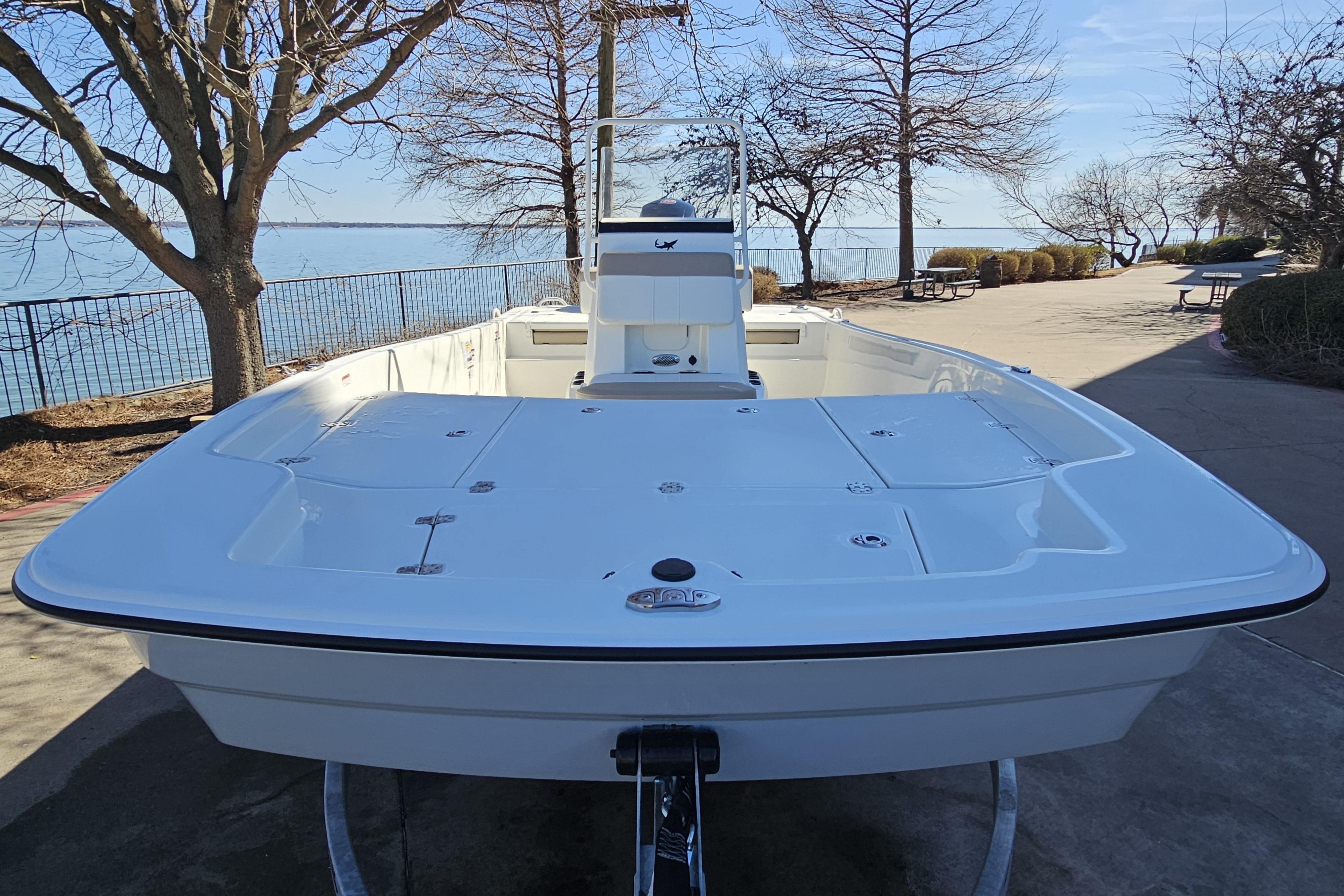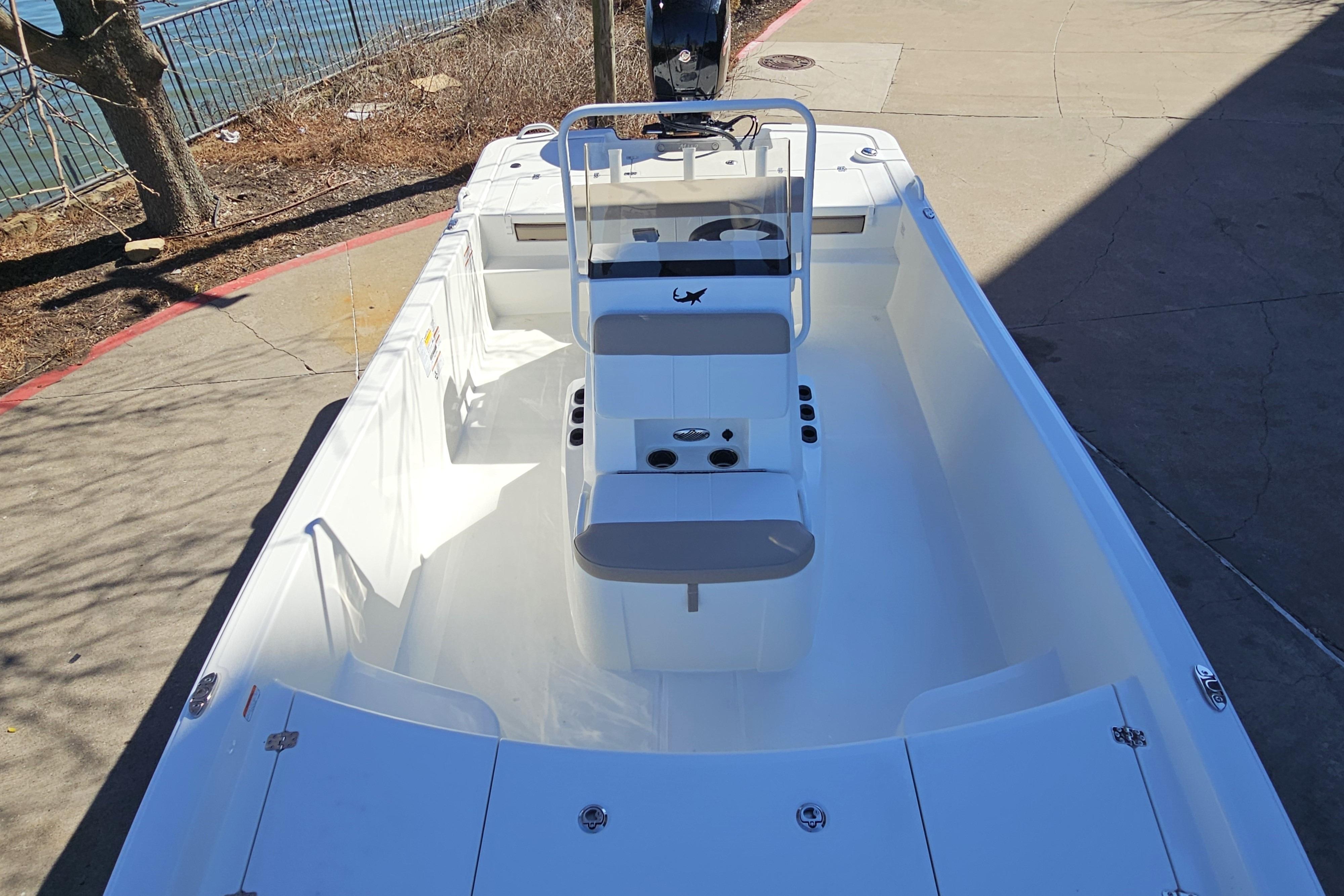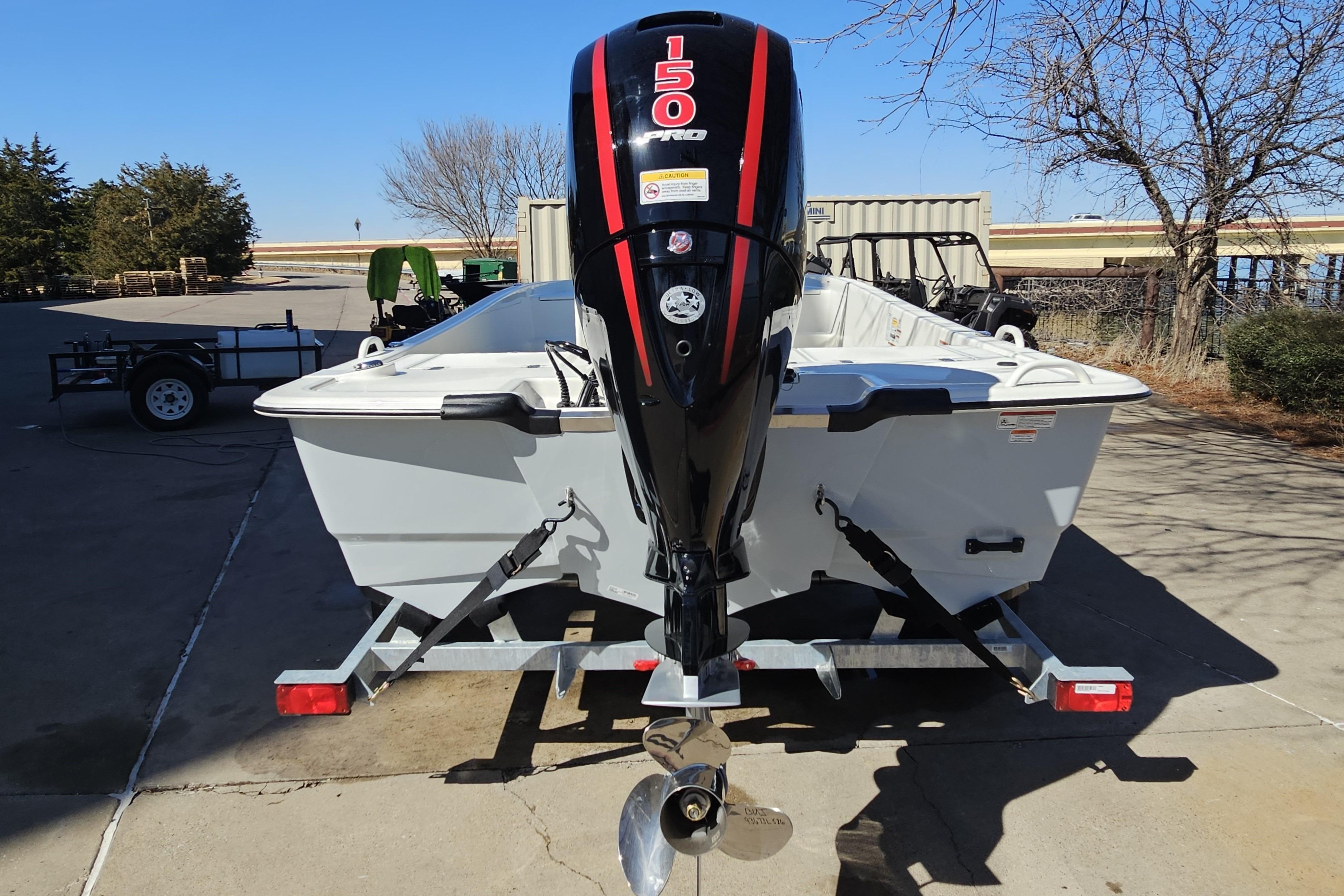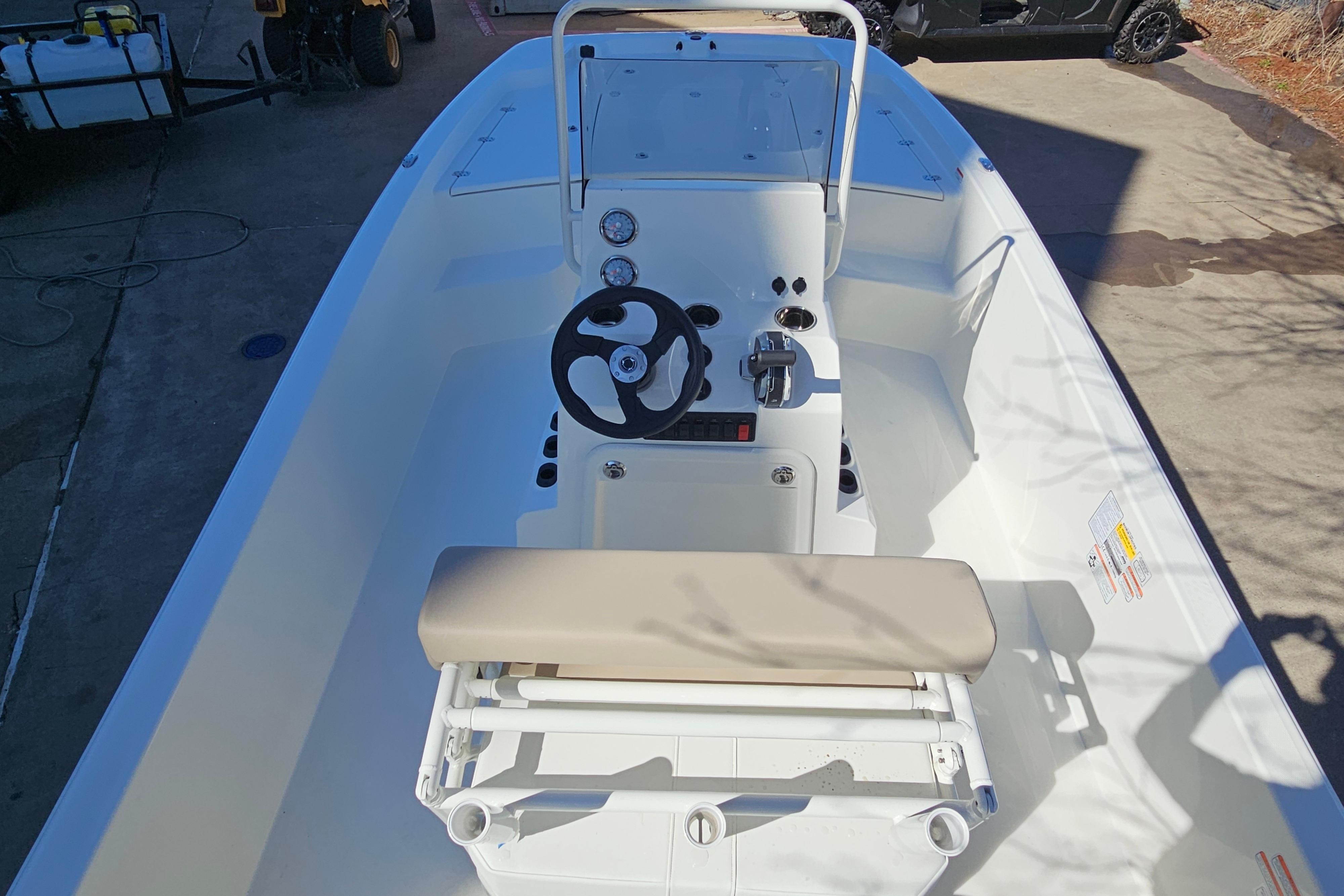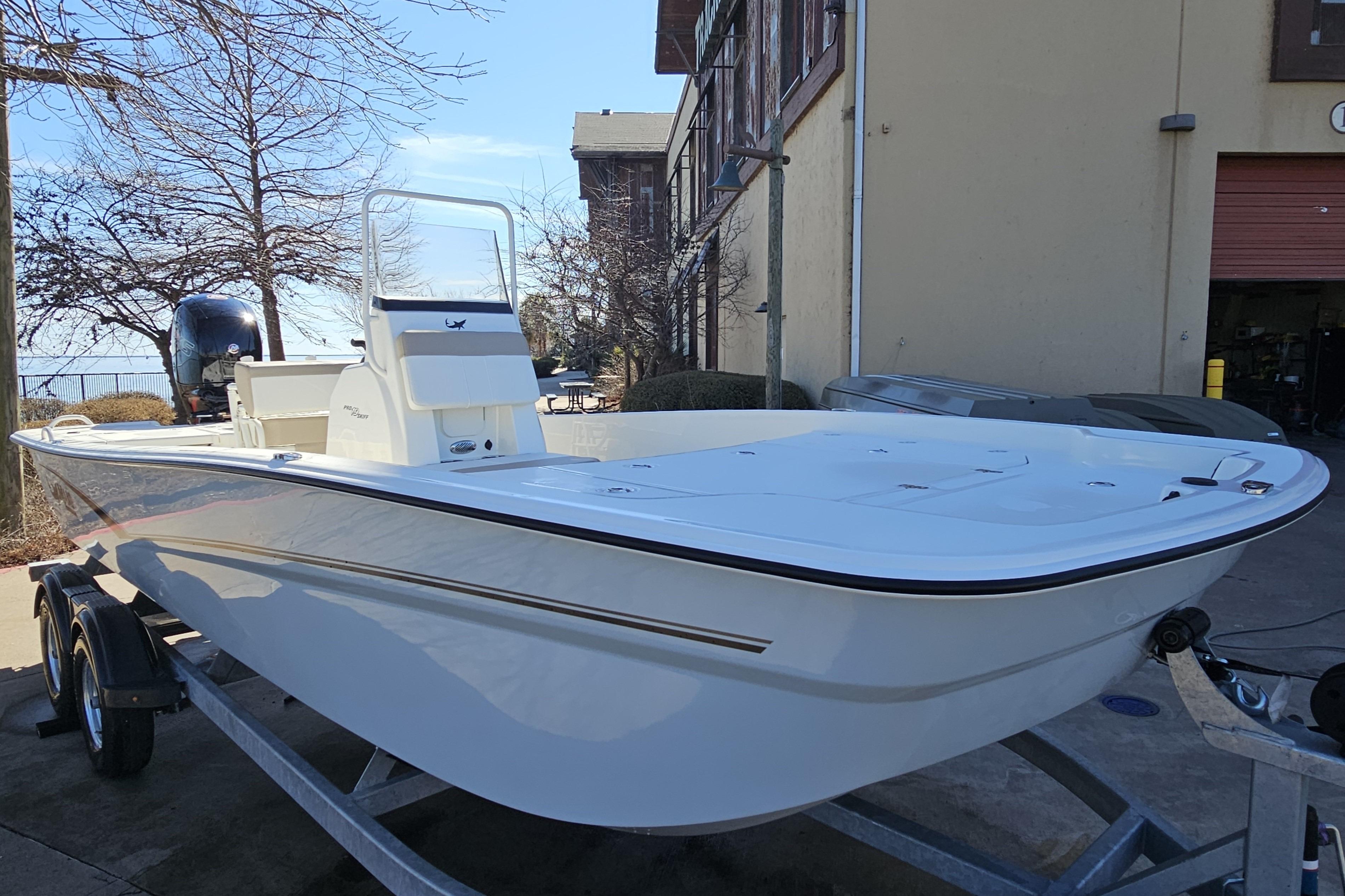 The biggest Pro Skiff in our lineup boasts a best-of-the best features set for all-out inshore and nearshore domination. A 150HP rating and 30-gallon fuel capacity give you extra range to go farther and hit more spots, while the finely tuned Advanced Invited V (AIV) hull delivers a smooth, dry ride and a superior draft. The massive front deck includes three lockable storage compartments equipped with gas-assist lift struts, stainless hardware, and a bow anchor locker/storage compartment.