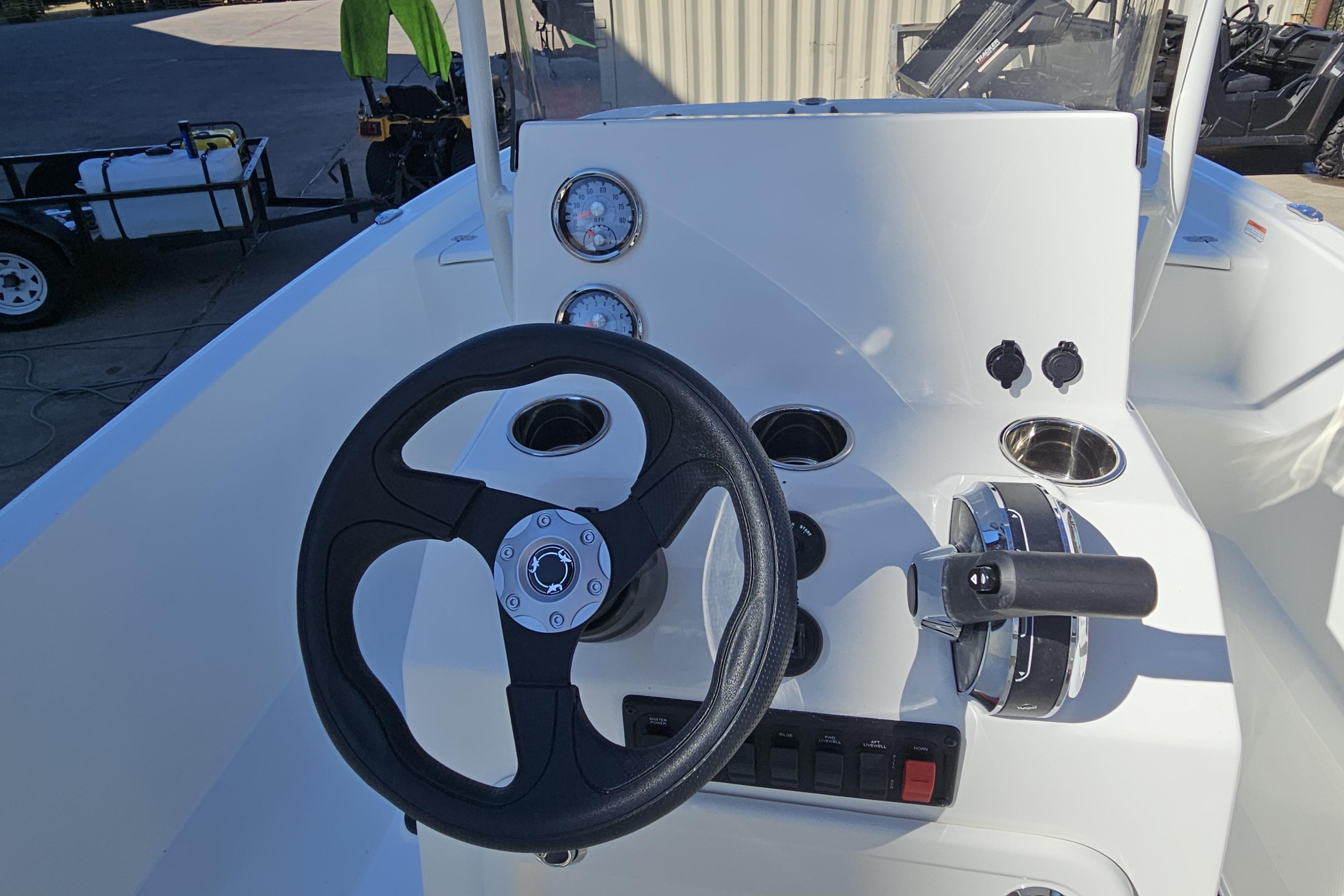 Deep gunnels in the cockpit deliver peace of mind and safety and the center console carries everything you need for a successful day on the water: responsive steering, fishfinding electronics, six rod holders, storage within, and a throttle connected to a powerful Mercury® outboard that delivers exhilarating performance on command. Dual baitwell/livewells carry tons of bait for a full day of fishing, and you can stash your catch (or beverages) in the 65-quart Orion® cooler at the helm. The Pro Skiff 19 CC is engineered to deliver peak inshore performance with huge value and unmistakable quality.