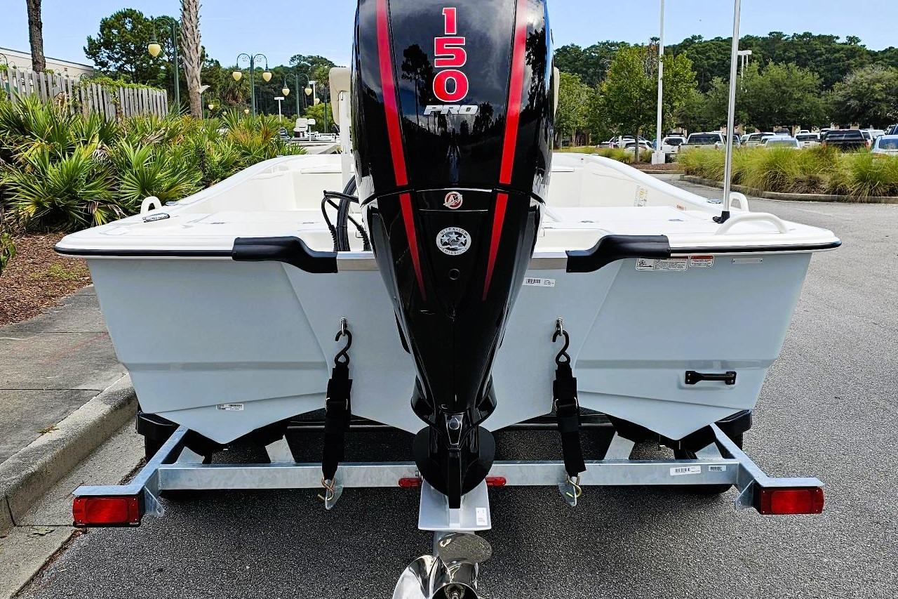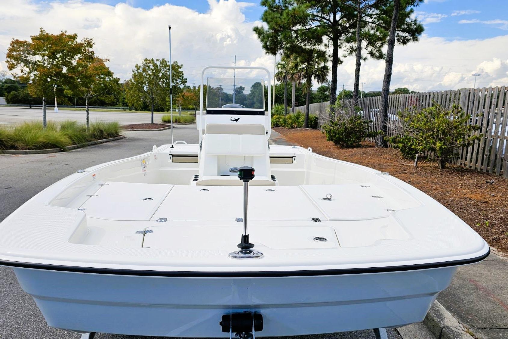 The biggest Pro Skiff in our lineup boasts a best-of-the best features set for all-out inshore and nearshore domination. A 150HP rating and 30-gallon fuel capacity give you extra range to go farther and hit more spots, while the finely tuned Advanced Invited V (AIV) hull delivers a smooth, dry ride and a superior draft. The massive front deck includes three lockable storage compartments equipped with gas-assist lift struts, stainless hardware, and a bow anchor locker/storage compartment.