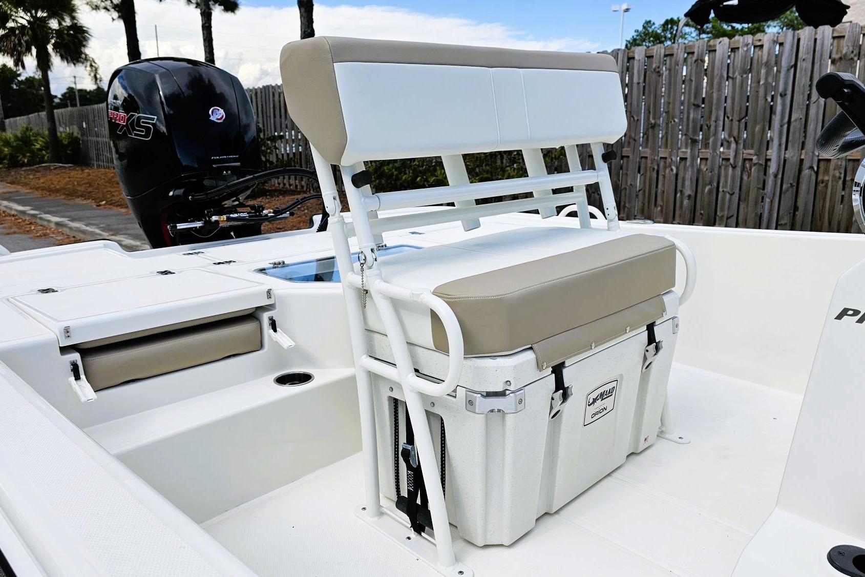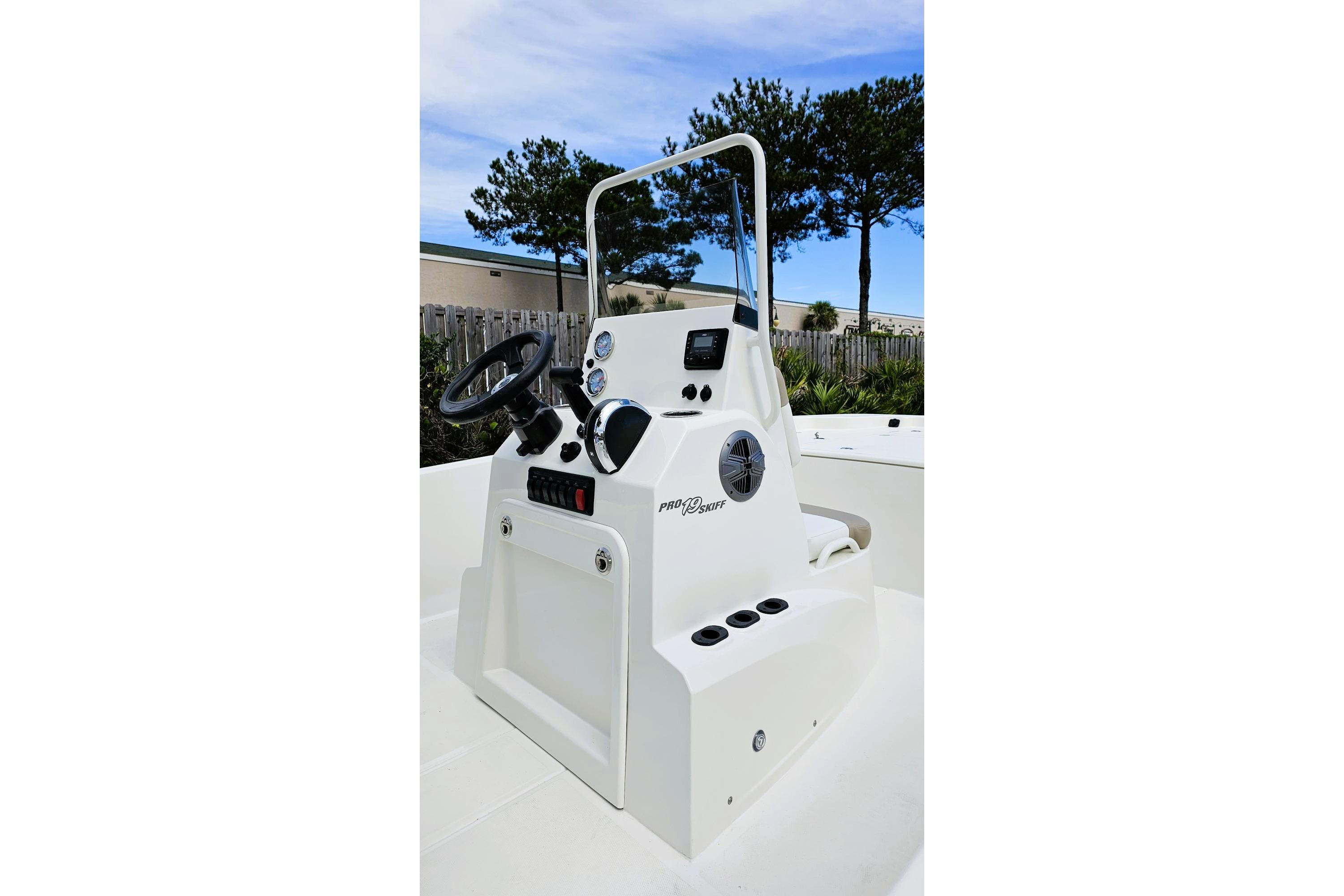 Deep gunnels in the cockpit deliver peace of mind and safety and the center console carries everything you need for a successful day on the water: responsive steering, fishfinding electronics, six rod holders, storage within, and a throttle connected to a powerful Mercury® outboard that delivers exhilarating performance on command. Dual baitwell/livewells carry tons of bait for a full day of fishing, and you can stash your catch (or beverages) in the 65-quart Orion® cooler at the helm. The Pro Skiff 19 CC is engineered to deliver peak inshore performance with huge value and unmistakable quality.