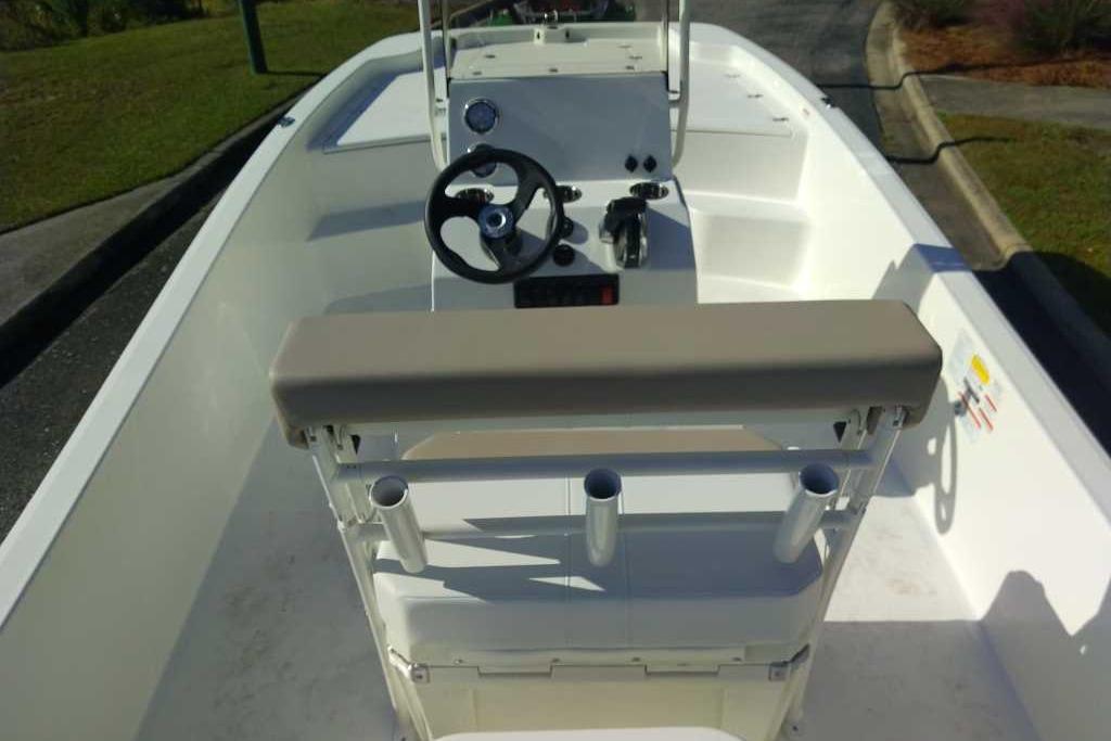 • Fiberglass forward-console seat w/13-gal. (49.21 L) insulated baitwell & padded seat cushion