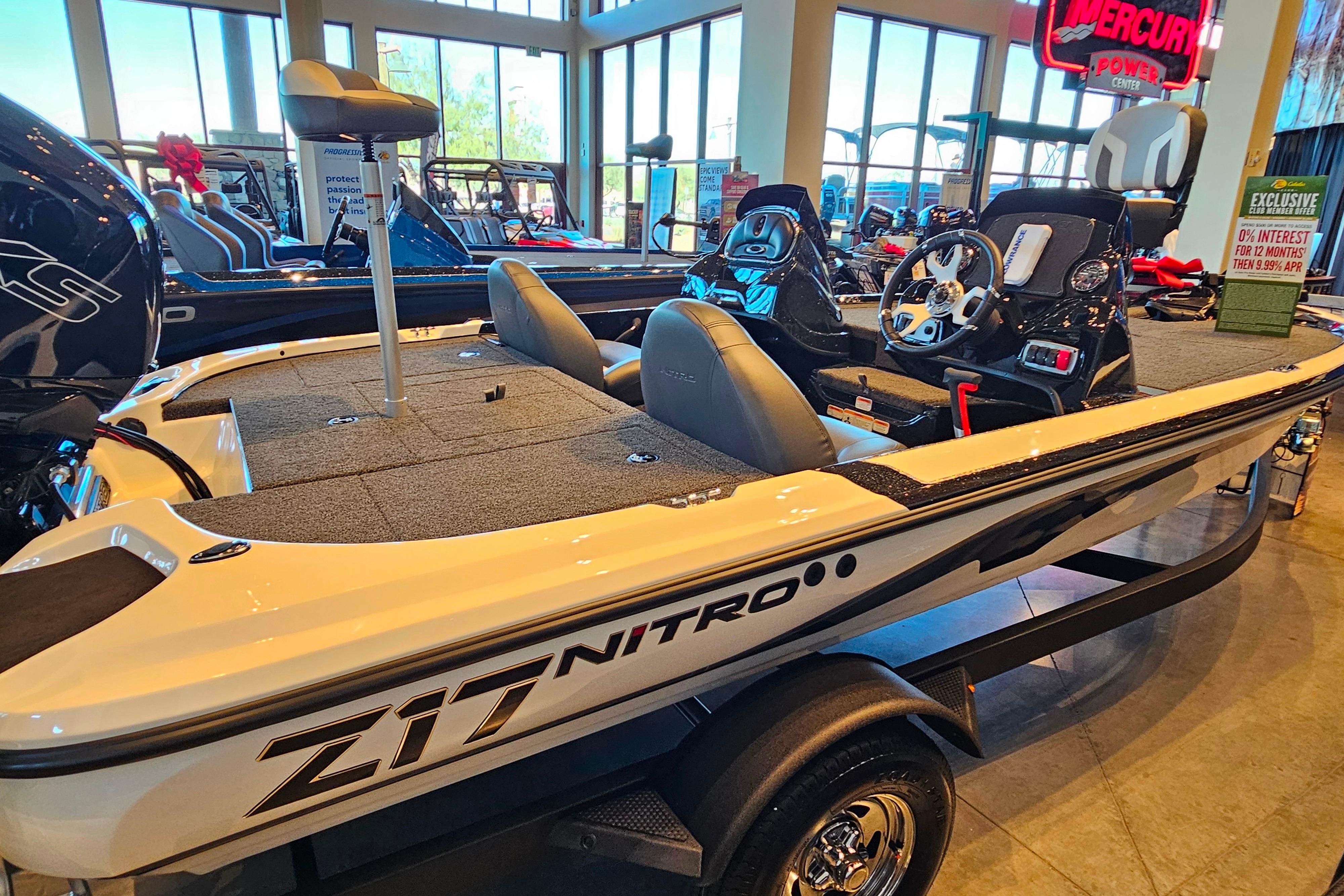 The NITRO® Z17 offers smooth, economical performance in a nimble size that's easy to tow, stow, and own. Reliable power from a FourStroke Mercury® outboard stands by to ramp up the fun with the jab of the throttle, while the NITRO® NVT™ hull offers quick planing and acceleration with on-rails handling at speed. The wide beam offers room for multiple anglers, stability in all conditions, and a world of storage beneath the decks. Lockable rod lockers carry sticks up to 7'6", while dedicated tackle stows in the rear deck keep boxes organized, dry, and readily accessible. The helm features a standard Lowrance® fishfinder, a full gauge set, and reliable switching for maximum convenience. Underneath the Z17 is a custom-fitted trailer made just for the hull it's carrying that promises years of smooth and hassle-free trailering. The Z17 is the perfect value- and feature-packed package that won't break the bank, but help you put checks in it.