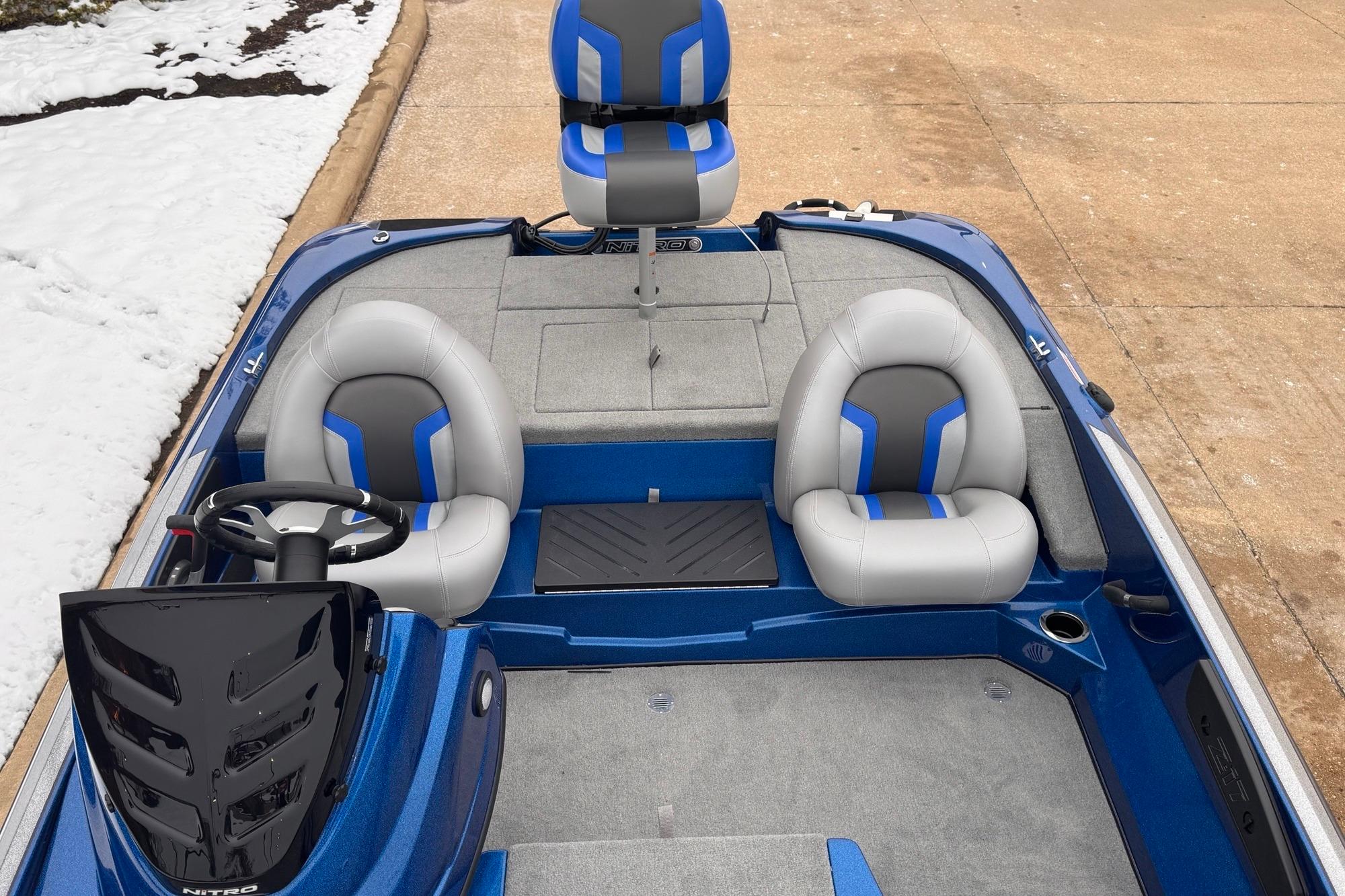 The NITRO® Z17 offers smooth, economical performance in a nimble size that's easy to tow, stow, and own. Reliable power from a FourStroke Mercury® outboard stands by to ramp up the fun with the jab of the throttle, while the NITRO® NVT™ hull offers quick planing and acceleration with on-rails handling at speed. The wide beam offers room for multiple anglers, stability in all conditions, and a world of storage beneath the decks. Lockable rod lockers carry sticks up to 7'6", while dedicated tackle stows in the rear deck keep boxes organized, dry, and readily accessible. The helm features a standard Lowrance® fishfinder, a full gauge set, and reliable switching for maximum convenience. Underneath the Z17 is a custom-fitted trailer made just for the hull it's carrying that promises years of smooth and hassle-free trailering. The Z17 is the perfect value- and feature-packed package that won't break the bank, but help you put checks in it.