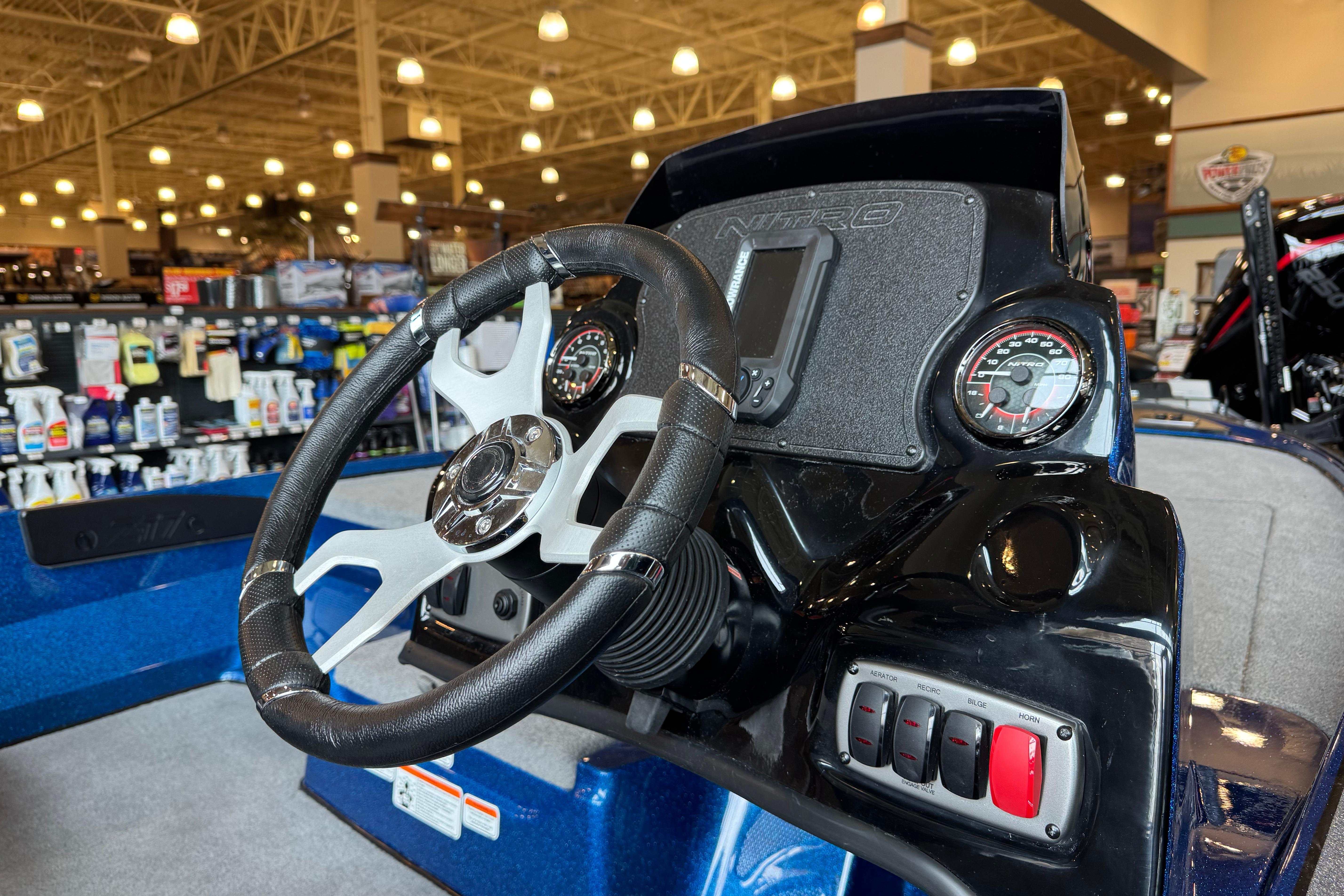 The NITRO® Z17 offers smooth, economical performance in a nimble size that's easy to tow, stow, and own. Reliable power from a FourStroke Mercury® outboard stands by to ramp up the fun with the jab of the throttle, while the NITRO® NVT™ hull offers quick planing and acceleration with on-rails handling at speed. The wide beam offers room for multiple anglers, stability in all conditions, and a world of storage beneath the decks. Lockable rod lockers carry sticks up to 7'6", while dedicated tackle stows in the rear deck keep boxes organized, dry, and readily accessible. The helm features a standard Lowrance® fishfinder, a full gauge set, and reliable switching for maximum convenience. Underneath the Z17 is a custom-fitted trailer made just for the hull it's carrying that promises years of smooth and hassle-free trailering. The Z17 is the perfect value- and feature-packed package that won't break the bank, but help you put checks in it.