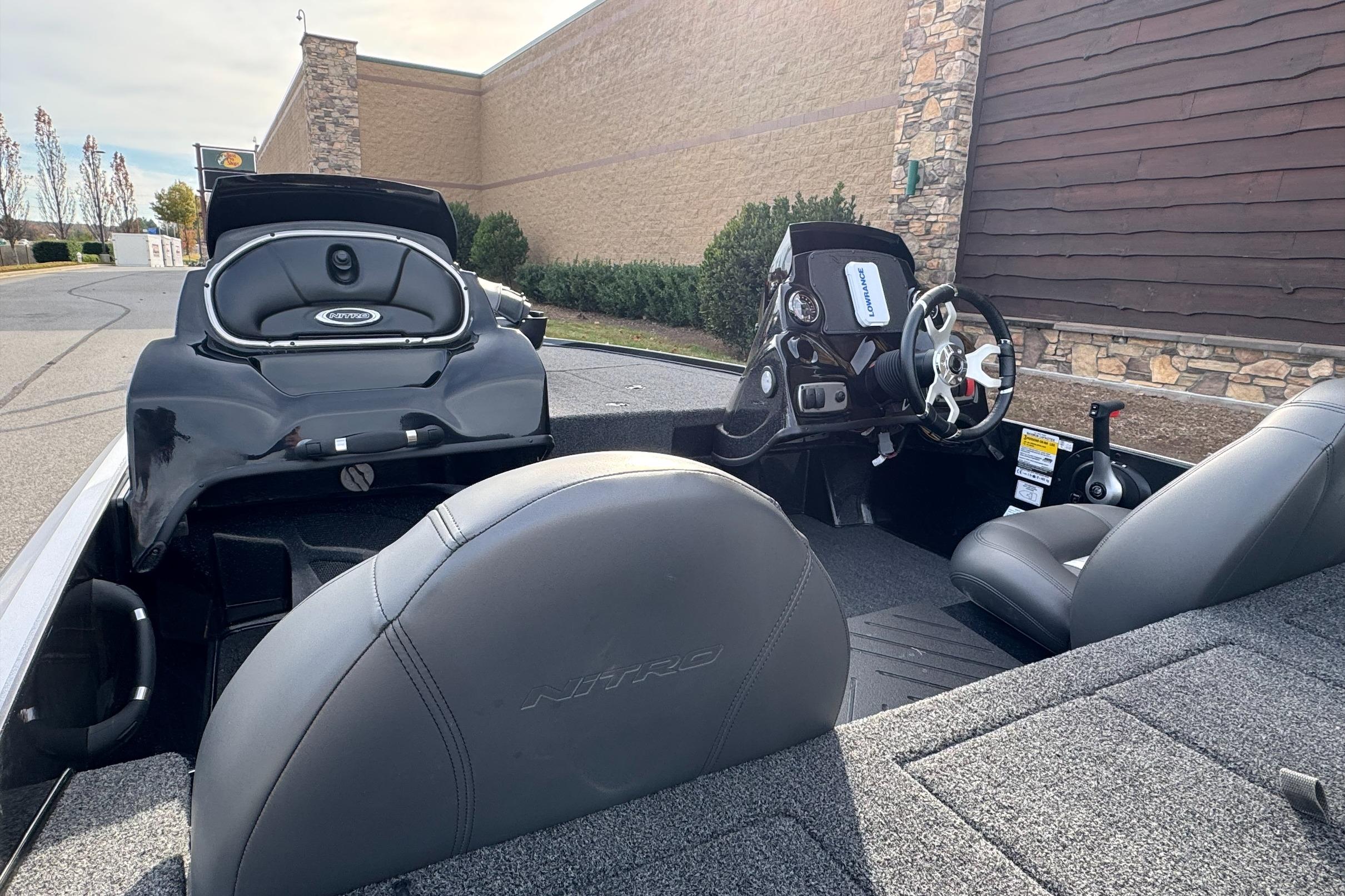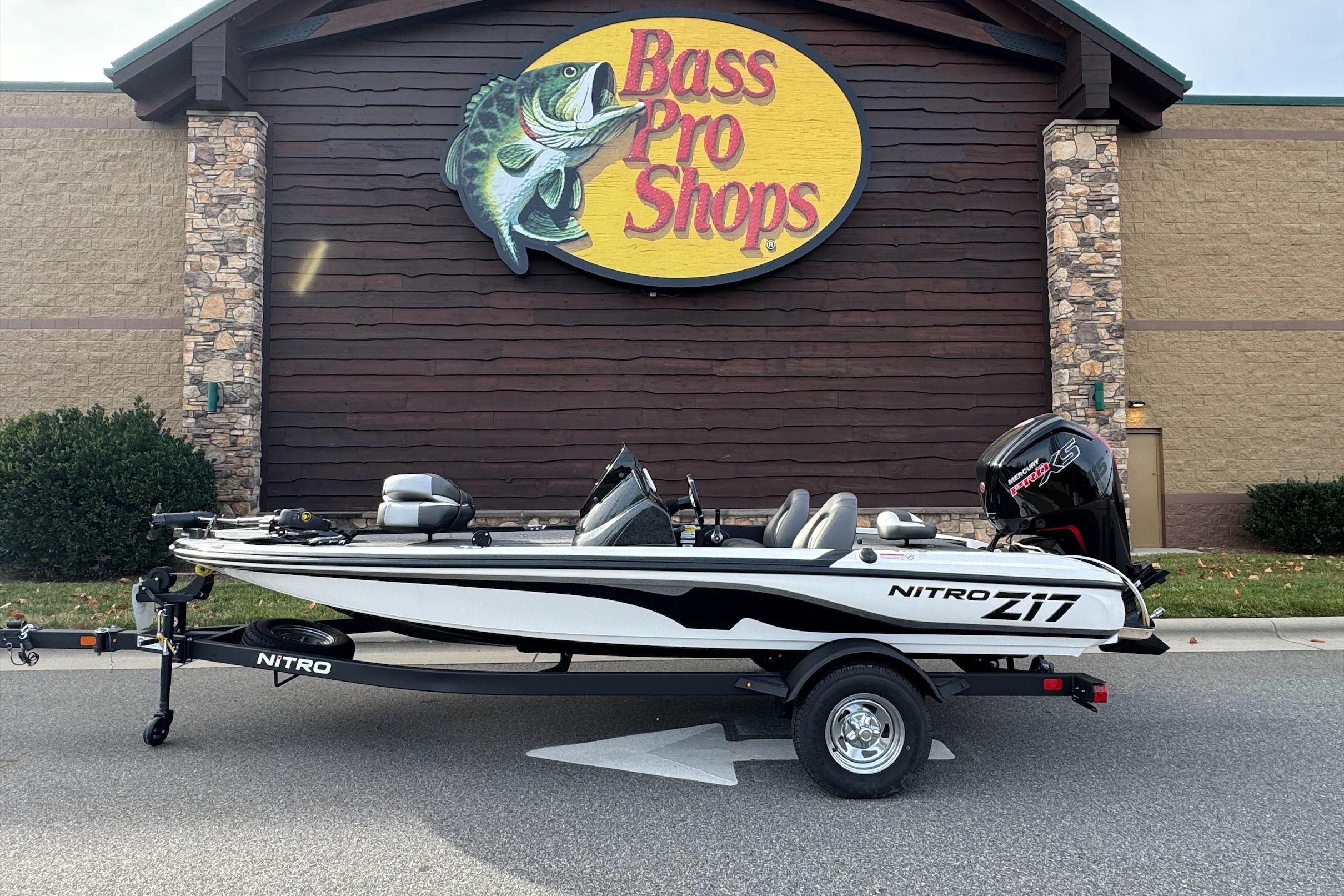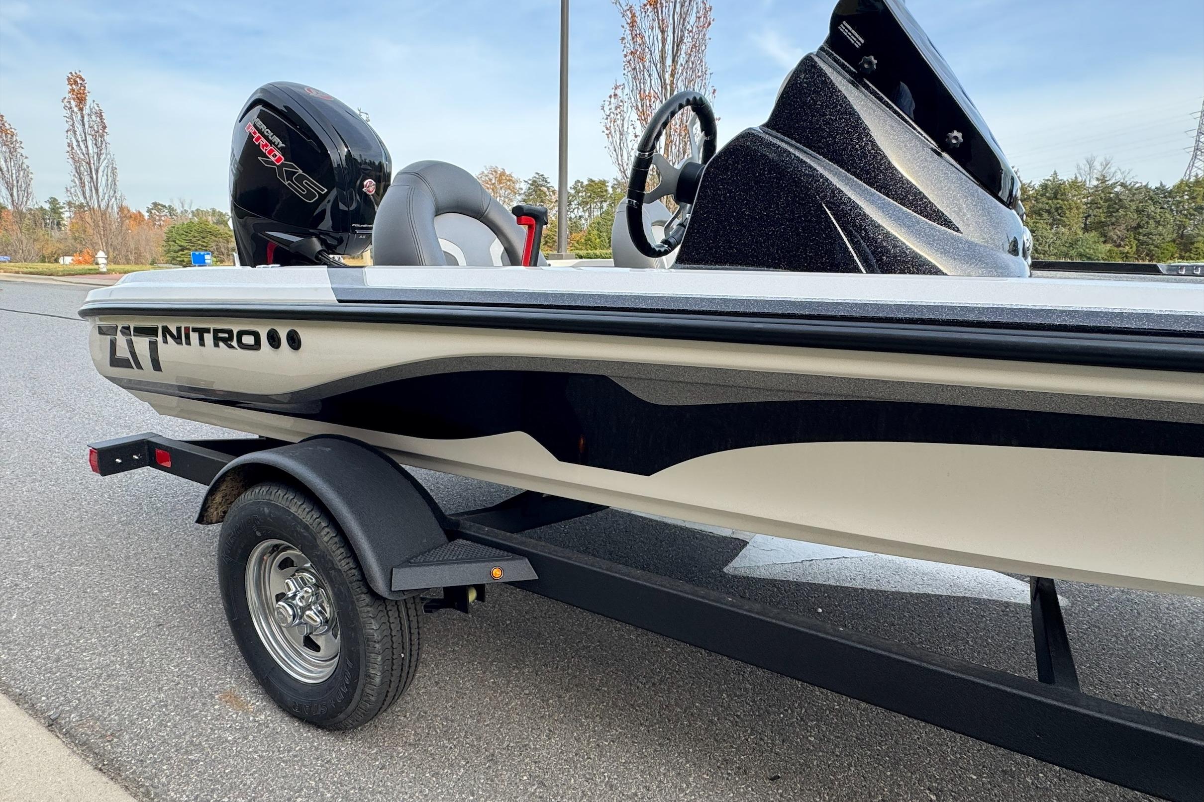 The NITRO® Z17 offers smooth, economical performance in a nimble size that's easy to tow, stow, and own. Reliable power from a FourStroke Mercury® outboard stands by to ramp up the fun with the jab of the throttle, while the NITRO® NVT™ hull offers quick planing and acceleration with on-rails handling at speed. The wide beam offers room for multiple anglers, stability in all conditions, and a world of storage beneath the decks. Lockable rod lockers carry sticks up to 7'6", while dedicated tackle stows in the rear deck keep boxes organized, dry, and readily accessible. The helm features a standard Lowrance® fishfinder, a full gauge set, and reliable switching for maximum convenience. Underneath the Z17 is a custom-fitted trailer made just for the hull it's carrying that promises years of smooth and hassle-free trailering. The Z17 is the perfect value- and feature-packed package that won't break the bank, but help you put checks in it.
