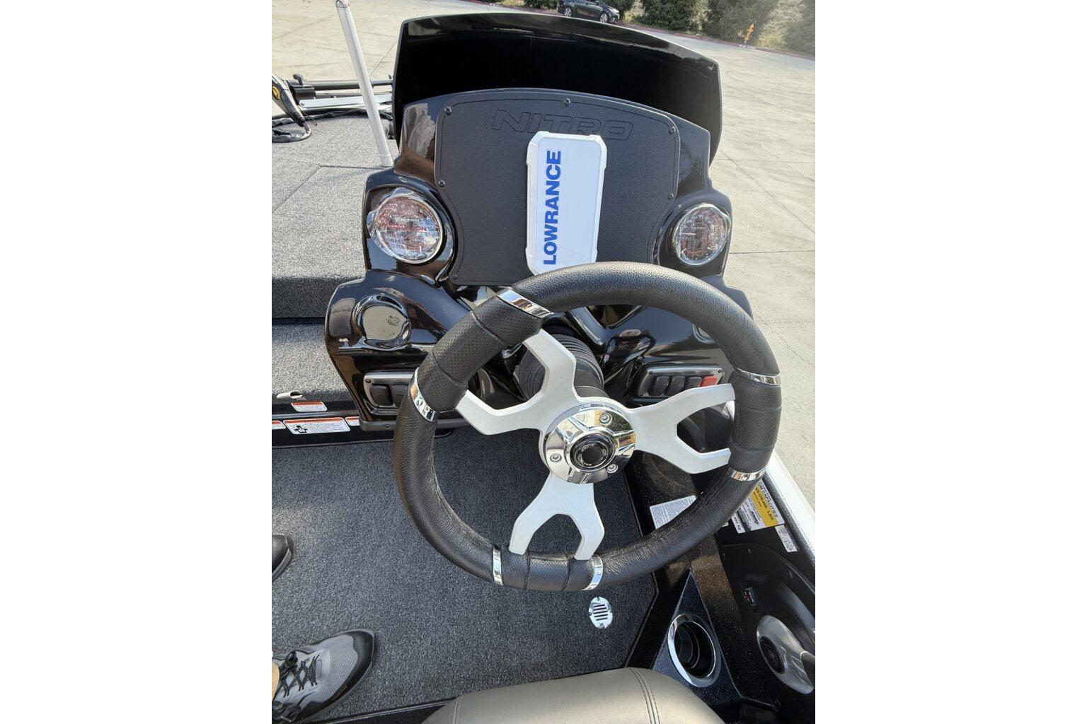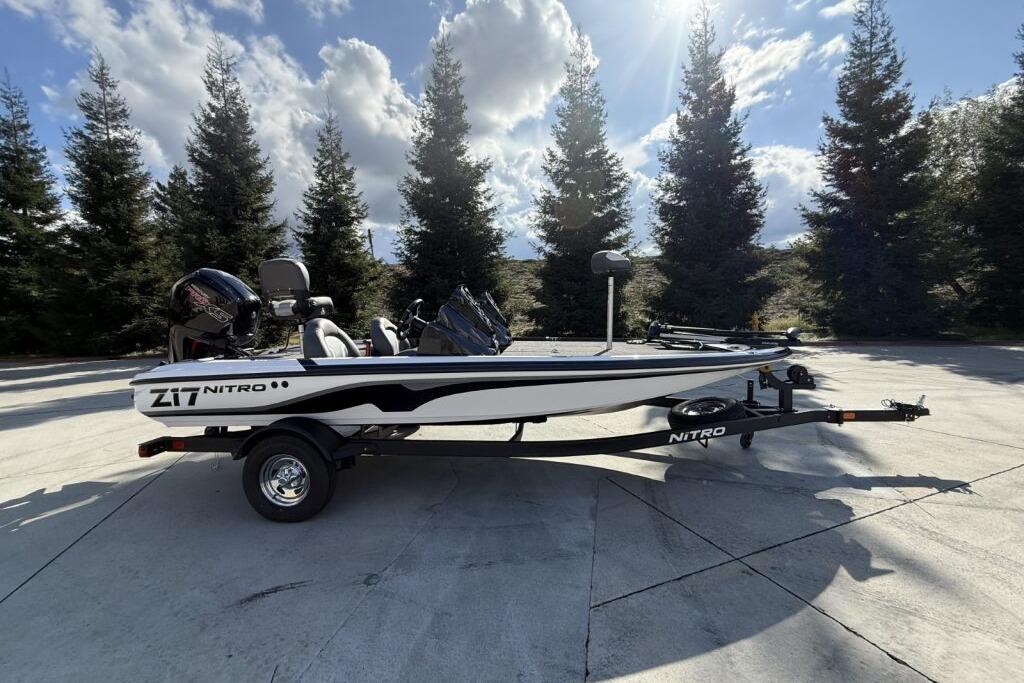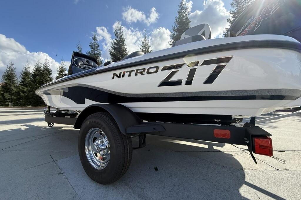The NITRO® Z17 offers smooth, economical performance in a nimble size that's easy to tow, stow, and own. Reliable power from a FourStroke Mercury® outboard stands by to ramp up the fun with the jab of the throttle, while the NITRO® NVT™ hull offers quick planing and acceleration with on-rails handling at speed. The wide beam offers room for multiple anglers, stability in all conditions, and a world of storage beneath the decks. Lockable rod lockers carry sticks up to 7'6", while dedicated tackle stows in the rear deck keep boxes organized, dry, and readily accessible. The helm features a standard Lowrance® fishfinder, a full gauge set, and reliable switching for maximum convenience. Underneath the Z17 is a custom-fitted trailer made just for the hull it's carrying that promises years of smooth and hassle-free trailering. The Z17 is the perfect value- and feature-packed package that won't break the bank, but help you put checks in it.