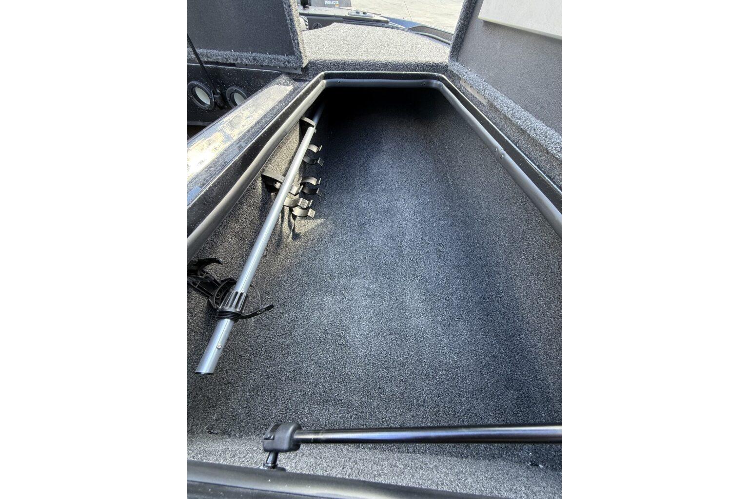 • Oversized lockable bow center storage locker w/lift assist & organizer for 4 rods up to 7' 6" (2.29 m)