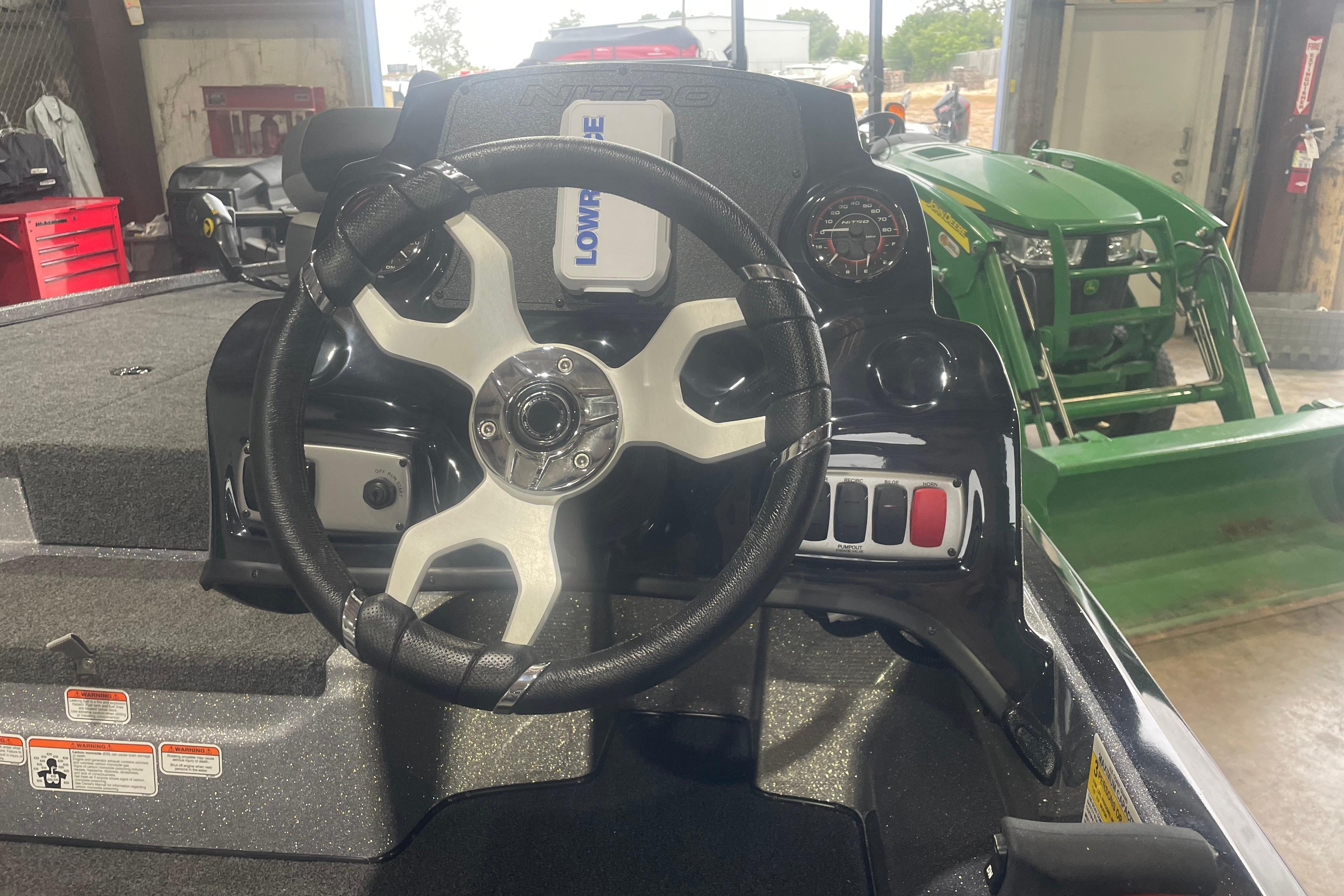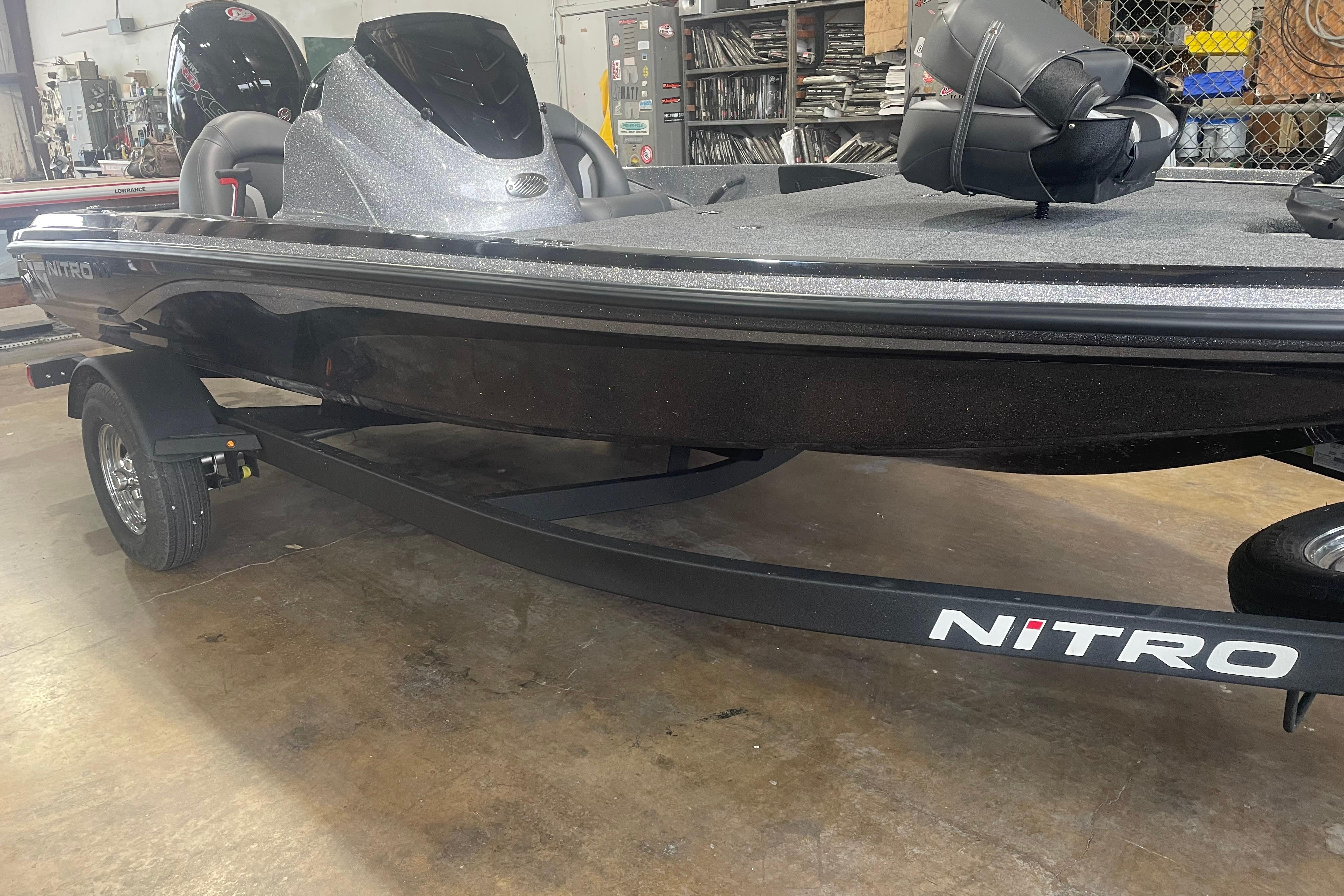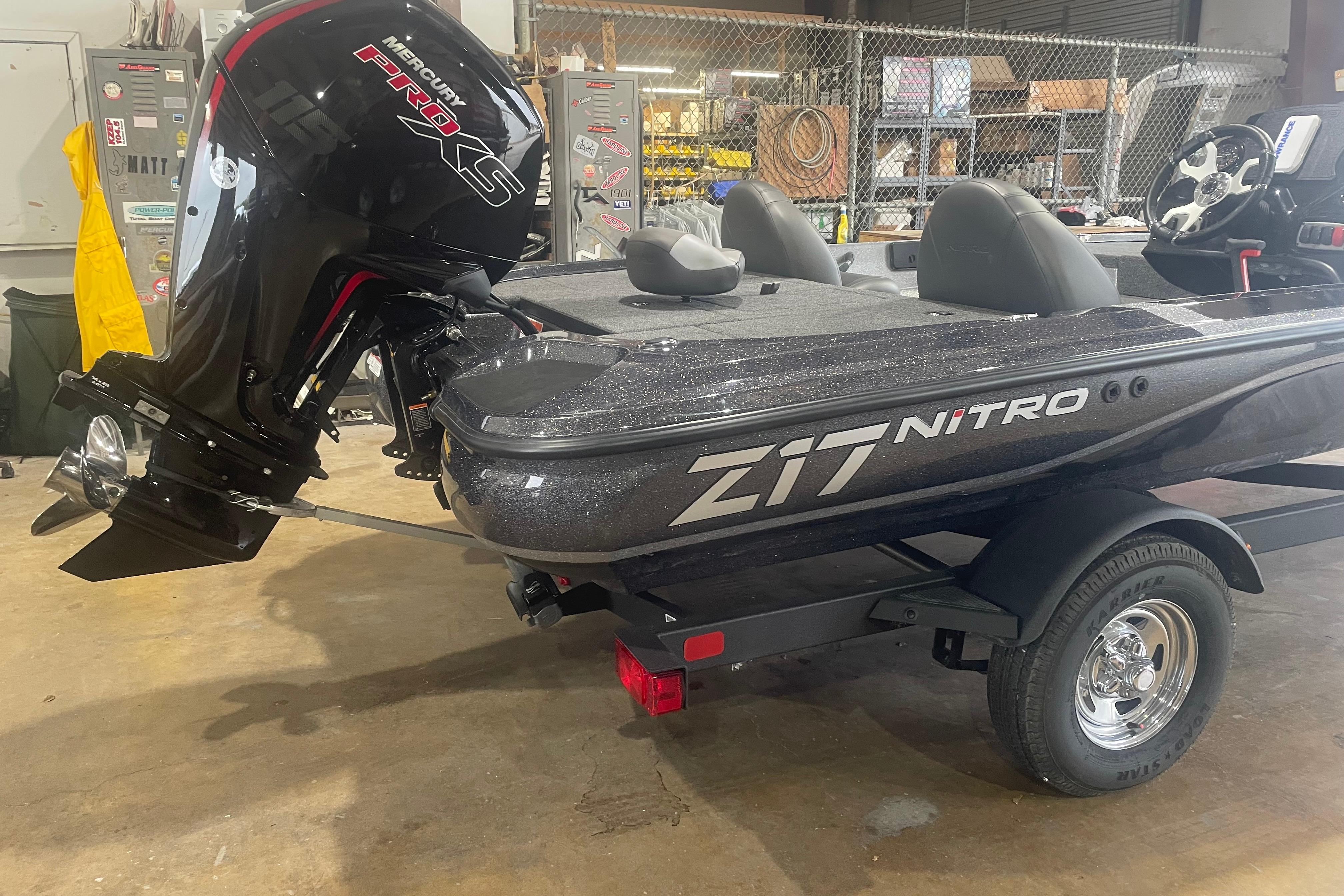 The NITRO® Z17 offers smooth, economical performance in a nimble size that's easy to tow, stow, and own. Reliable power from a FourStroke Mercury® outboard stands by to ramp up the fun with the jab of the throttle, while the NITRO® NVT™ hull offers quick planing and acceleration with on-rails handling at speed. The wide beam offers room for multiple anglers, stability in all conditions, and a world of storage beneath the decks. Lockable rod lockers carry sticks up to 7'6", while dedicated tackle stows in the rear deck keep boxes organized, dry, and readily accessible. The helm features a standard Lowrance® fishfinder, a full gauge set, and reliable switching for maximum convenience. Underneath the Z17 is a custom-fitted trailer made just for the hull it's carrying that promises years of smooth and hassle-free trailering. The Z17 is the perfect value- and feature-packed package that won't break the bank, but help you put checks in it.