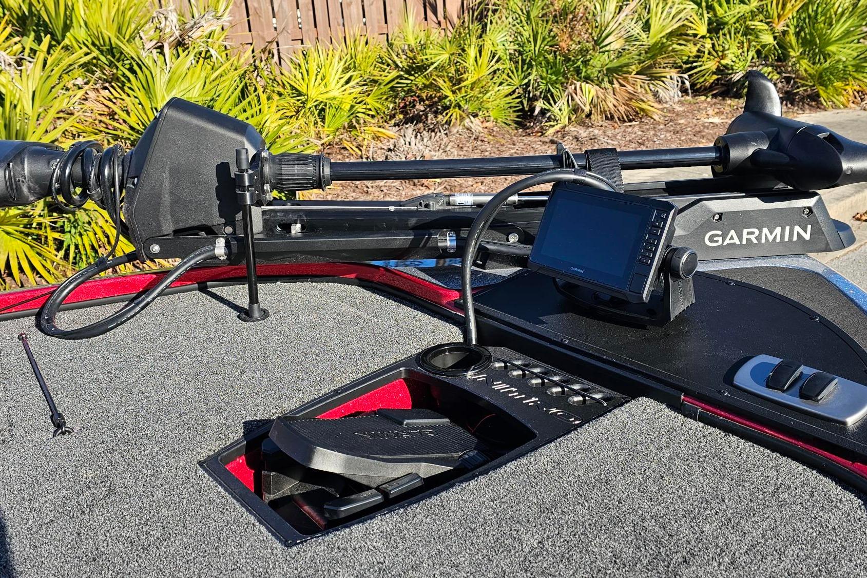 • Angled bow panel w/trolling motor receptacle, anchor/light switch, trim switch & capability to flush mount most 12" (30.5 cm) fishfinders