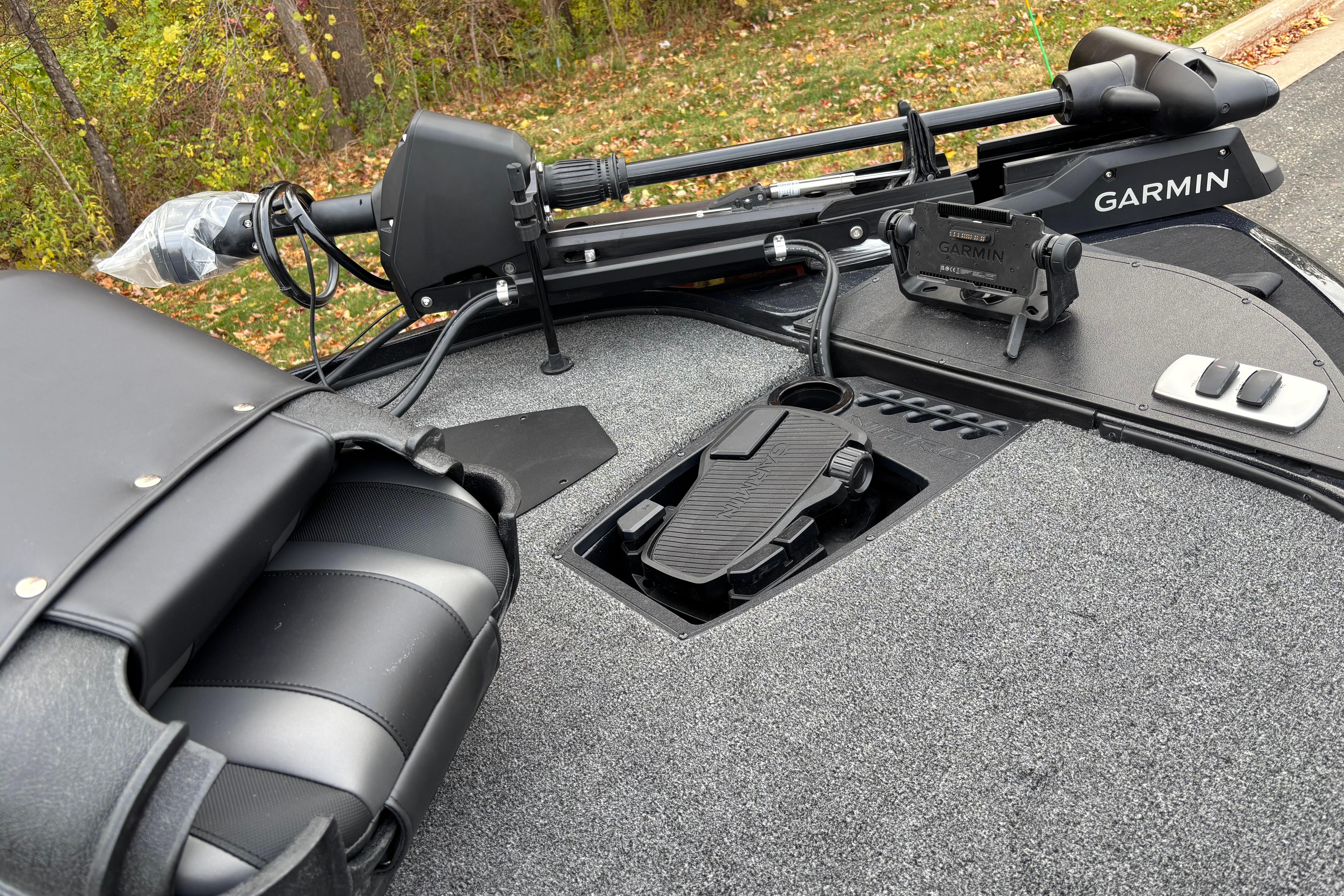 • Angled bow panel w/trolling motor receptacle, anchor/light switch, trim switch & capability to flush mount most 12" (30.5 cm) fishfinders