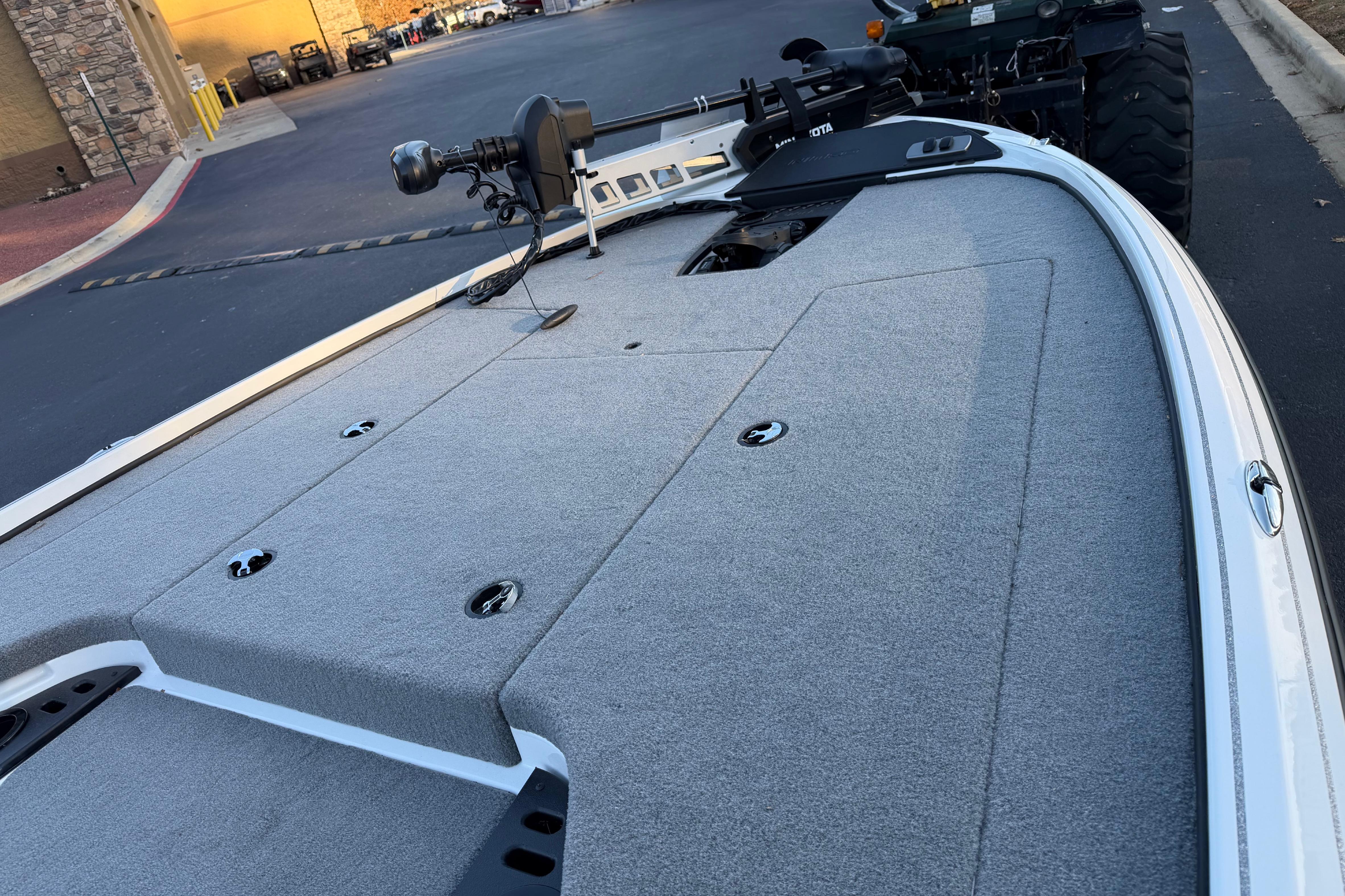 • Angled bow panel w/trolling motor receptacle, anchor/light switch, trim switch & capability to flush mount most 12" (30.5 cm) fishfinders