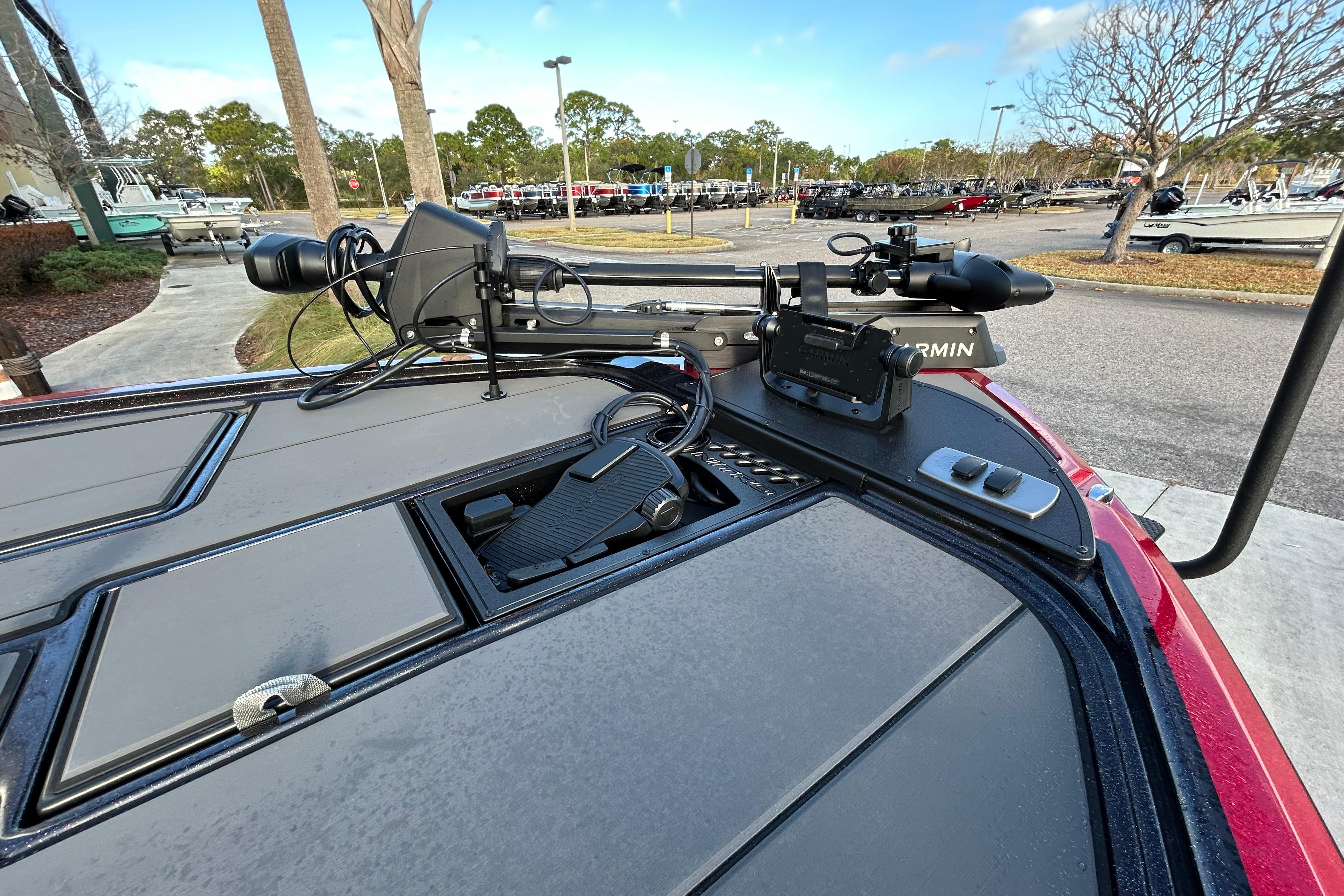 • Angled bow panel w/trolling motor receptacle, anchor/light switch, trim switch & capability to flush mount 10" (25.4 cm) fishfinder