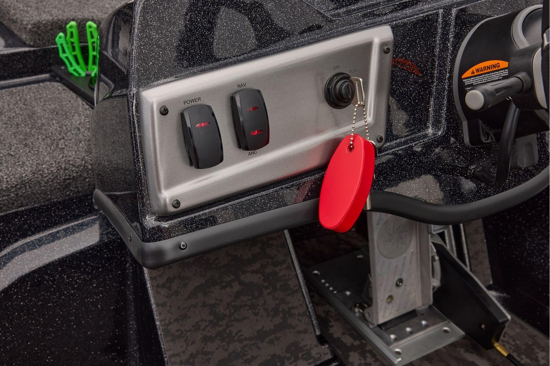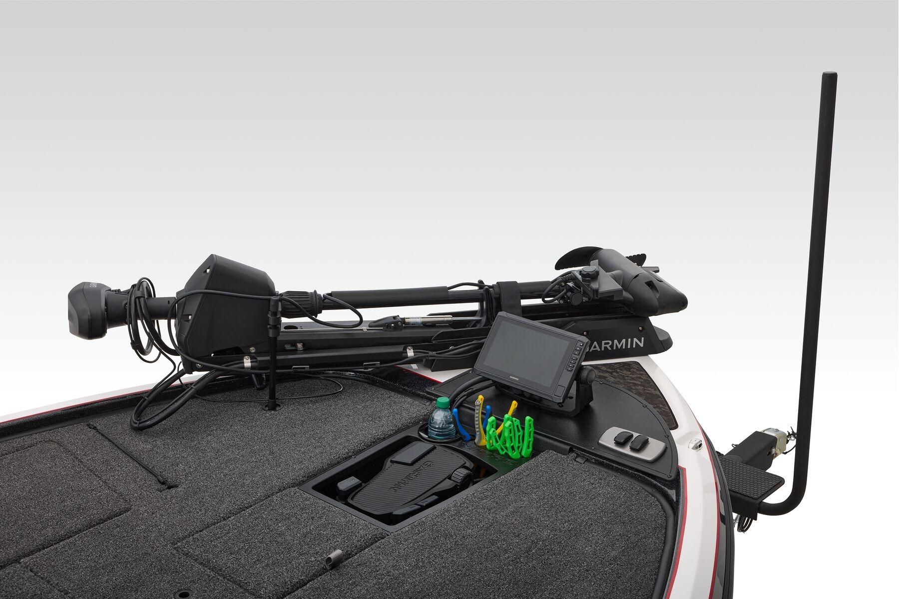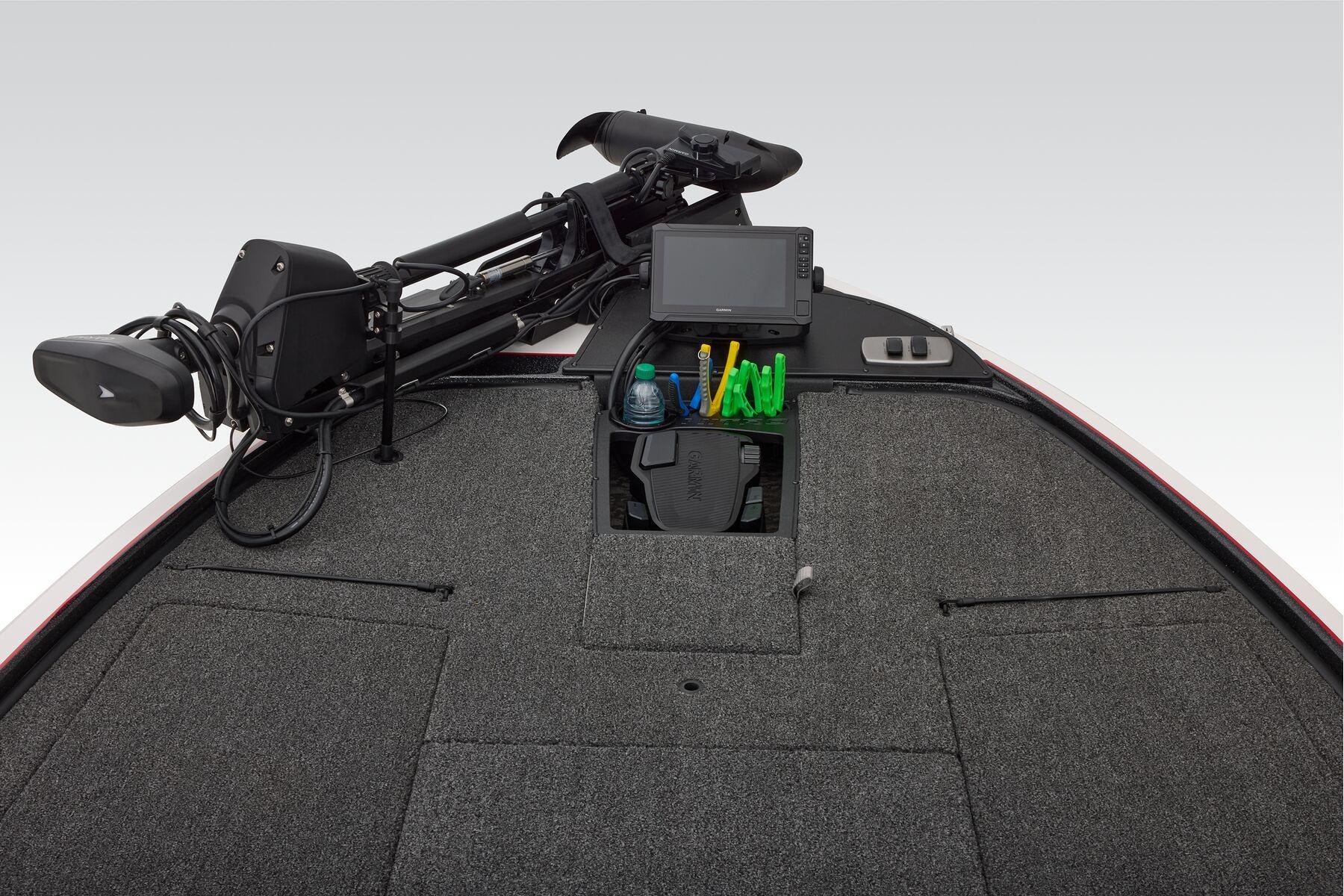 • Angled bow panel w/trolling motor receptacle, anchor/light switch, trim switch & capability to flush mount 10" (25.4 cm) fishfinder
