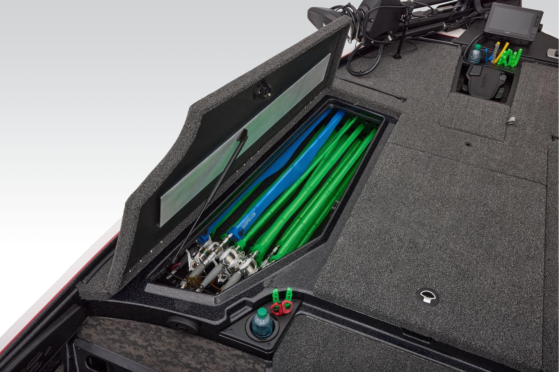 • Oversized, lockable bow port & starboard rod lockers w/lift assists for rods up to 8' (2.44 m)