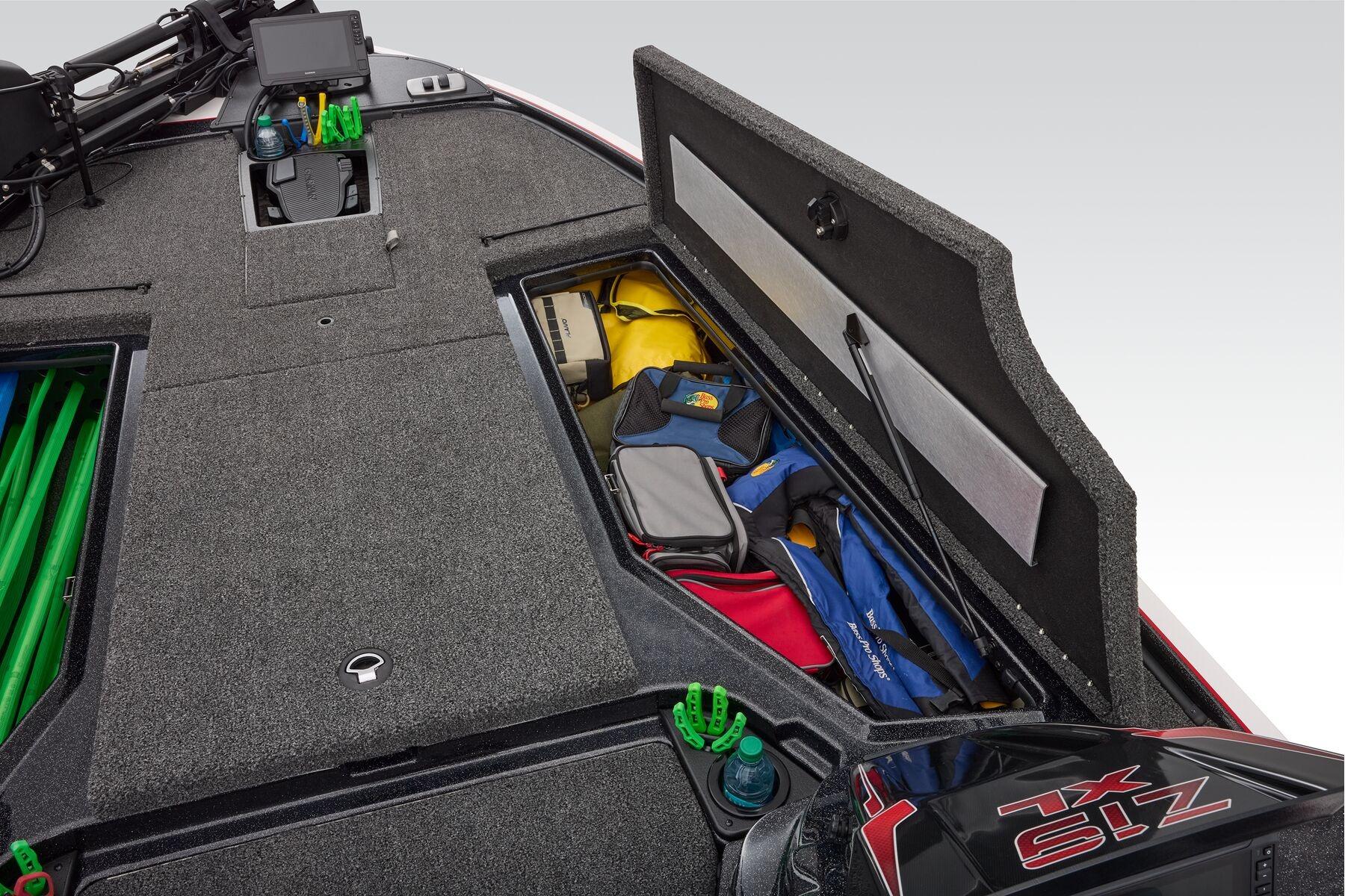 • Oversized, lockable bow center day box w/redesigned TACKLE MANAGEMENT SYSTEM™