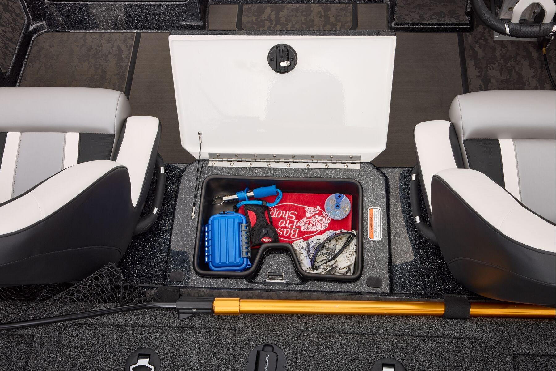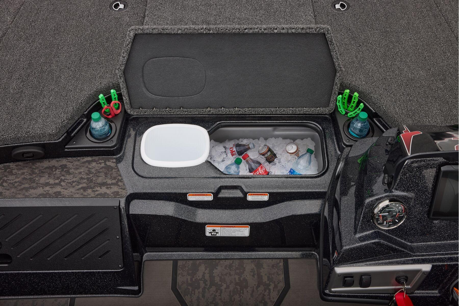 • Step to bow deck w/62-qt. (58.67 L) insulated cooler & removable trash receptacle