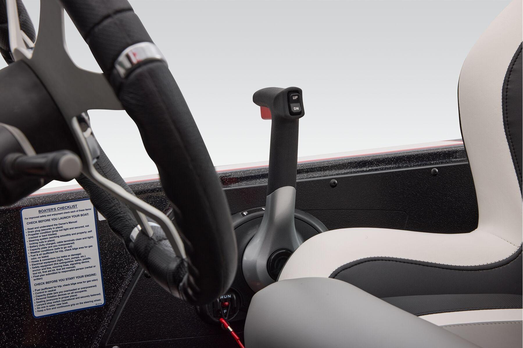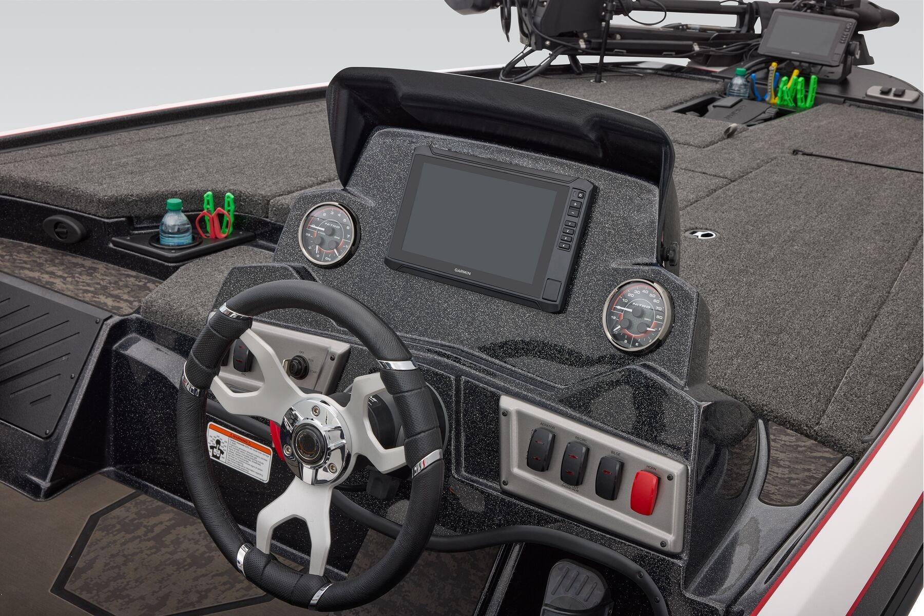 • Modular, aerodynamic console design w/expanded leg clearance & large fishfinder surface