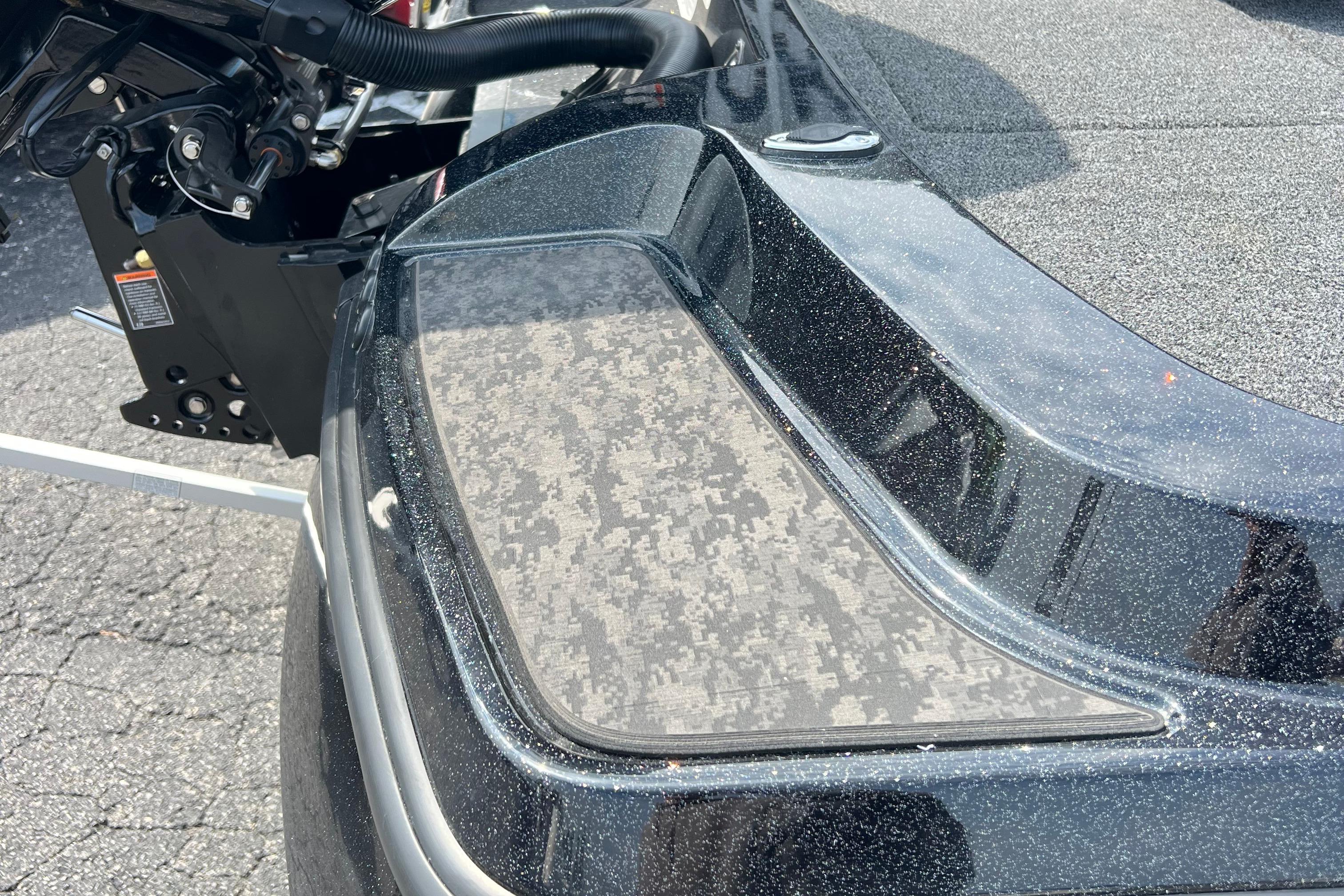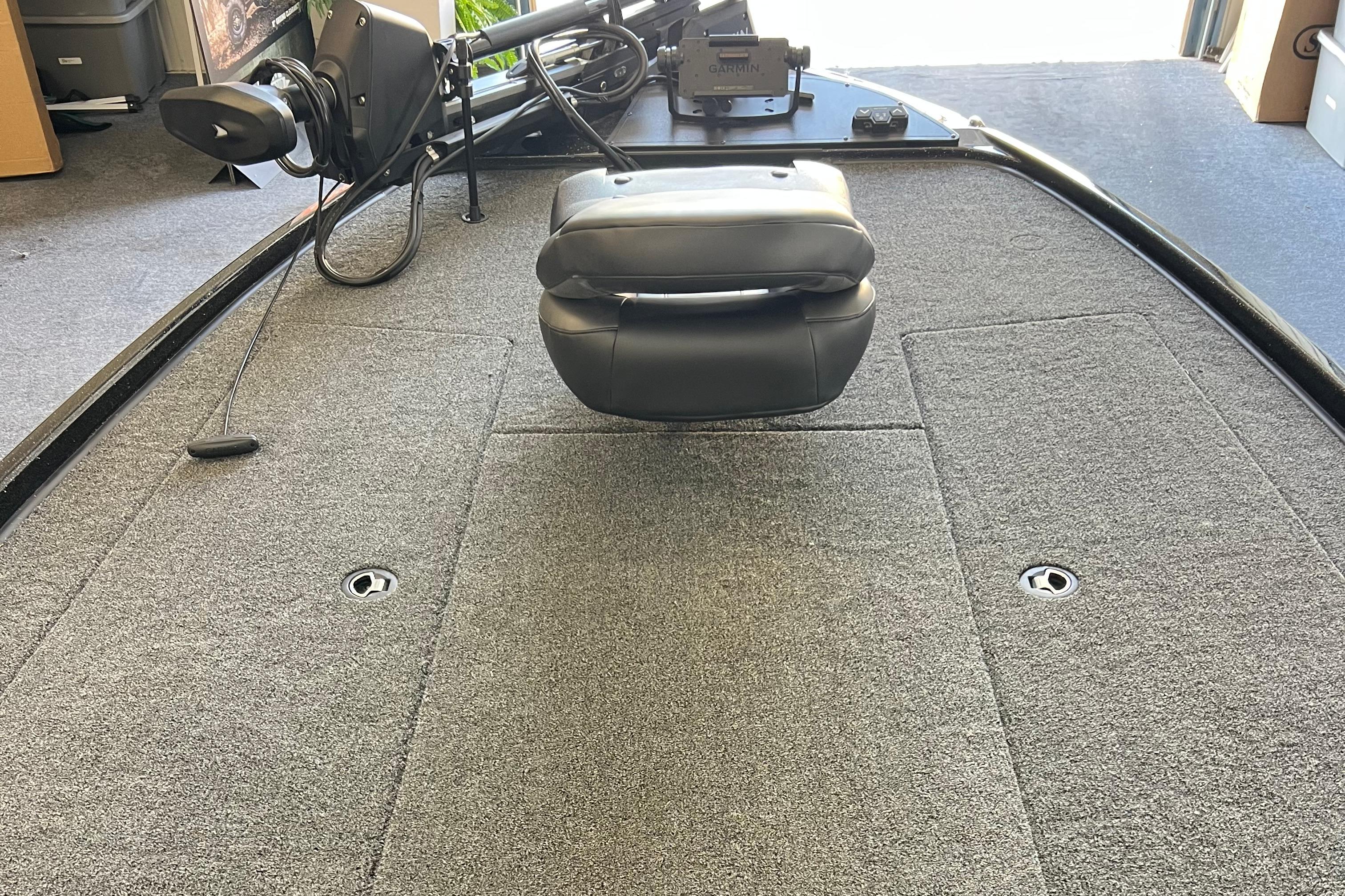 • Angled bow panel w/trolling motor receptacle, anchor/light switch, trim switch & capability to flush mount most 12" (30.5 cm) fishfinders