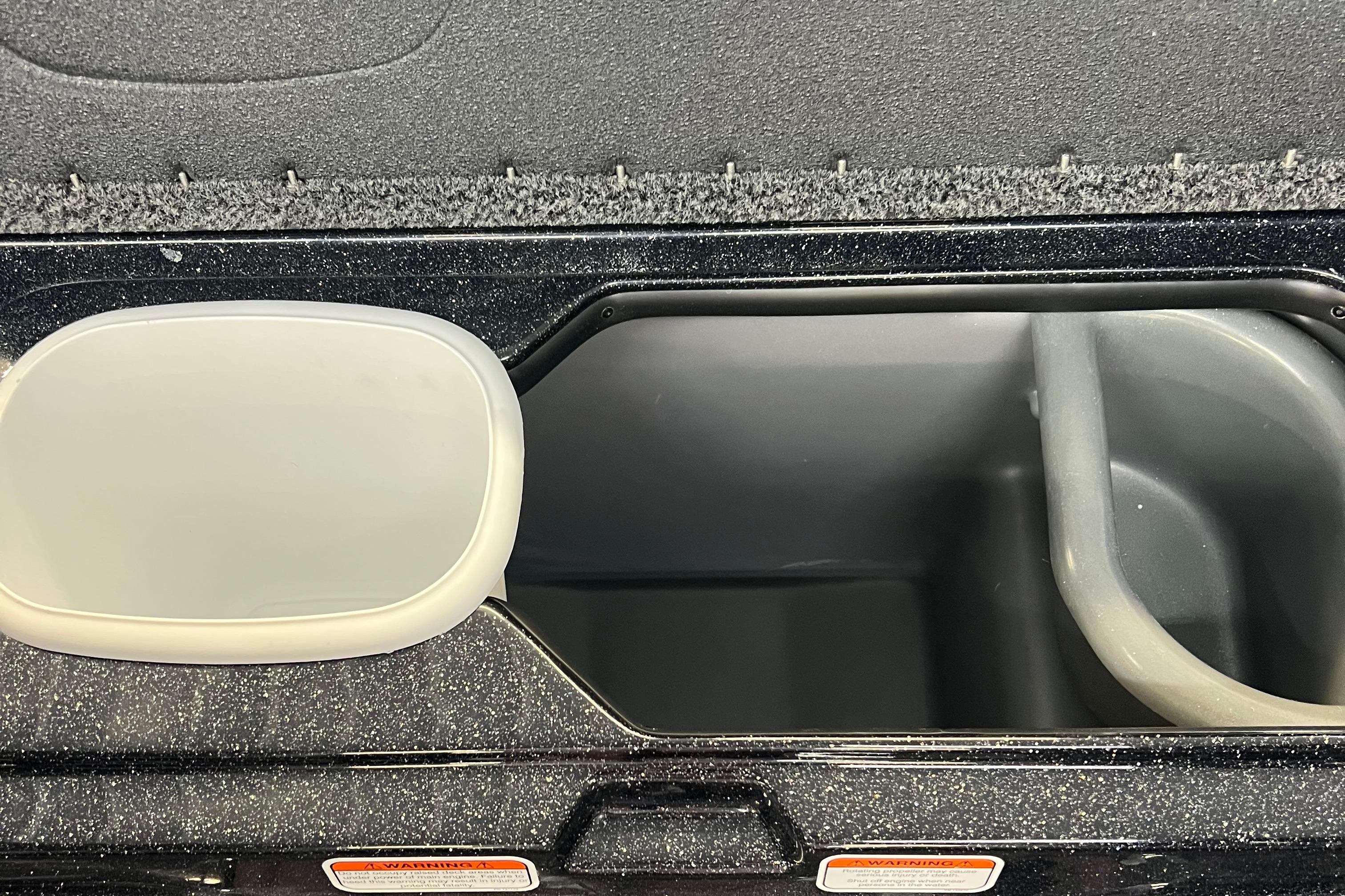• Step to bow deck w/62-qt. (58.67 L) insulated cooler, removable trash receptacle & snap-in sandwich tray